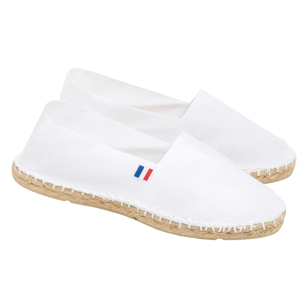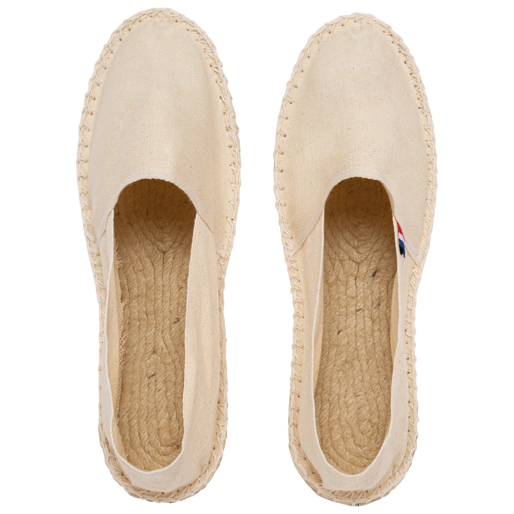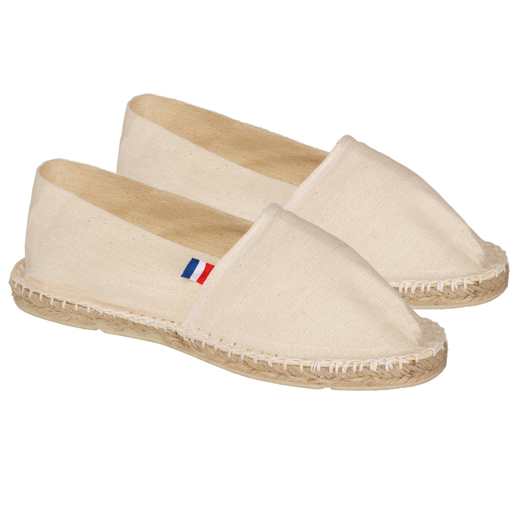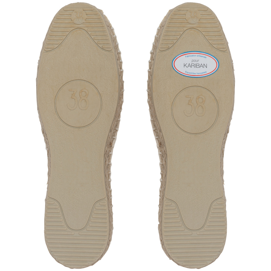 Tecido 100% algodão. Palmilhas em borracha vulcanizada e juta. Fabrico francês.