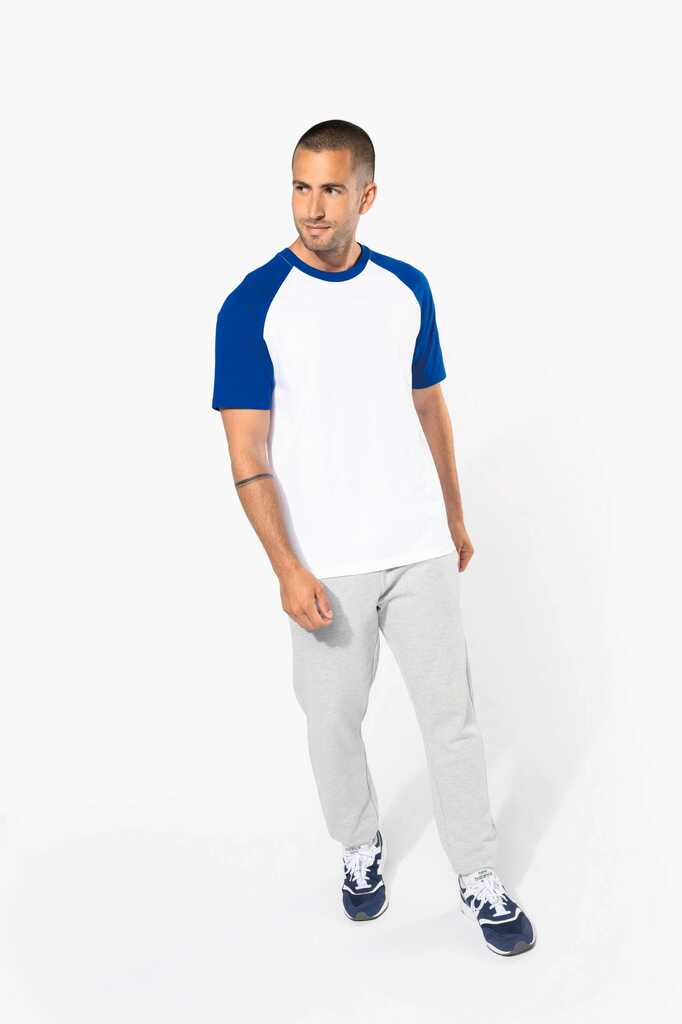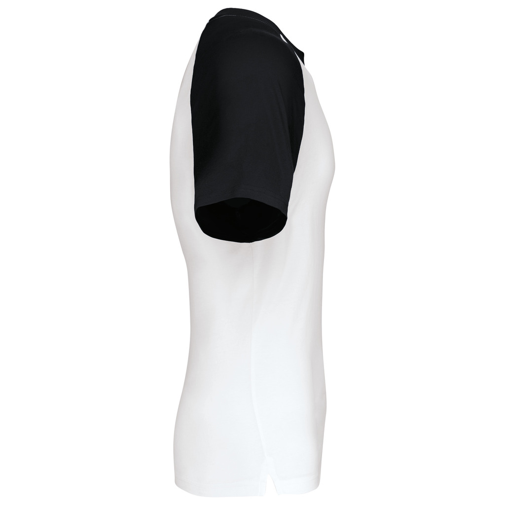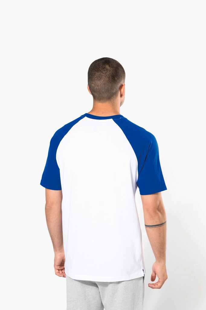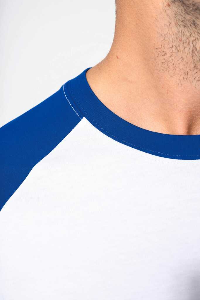 100% algodão. Manga raglan. Contraste nas mangas e no rib. Malha rib com elastano. Acabamentos com costura dupla.