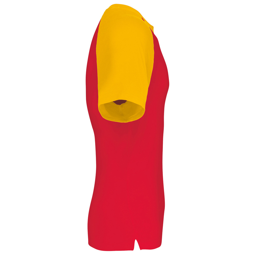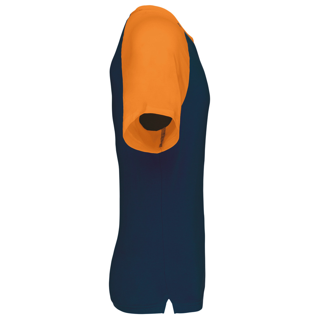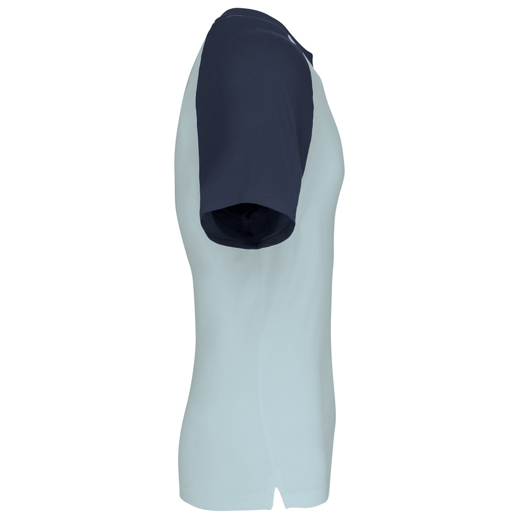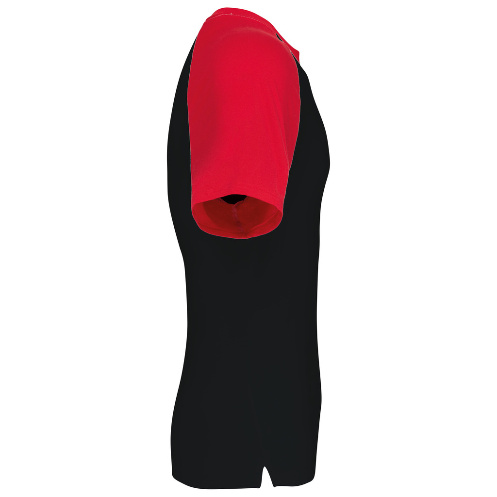 100% algodão. Manga raglan. Contraste nas mangas e no rib. Malha rib com elastano. Acabamentos com costura dupla.