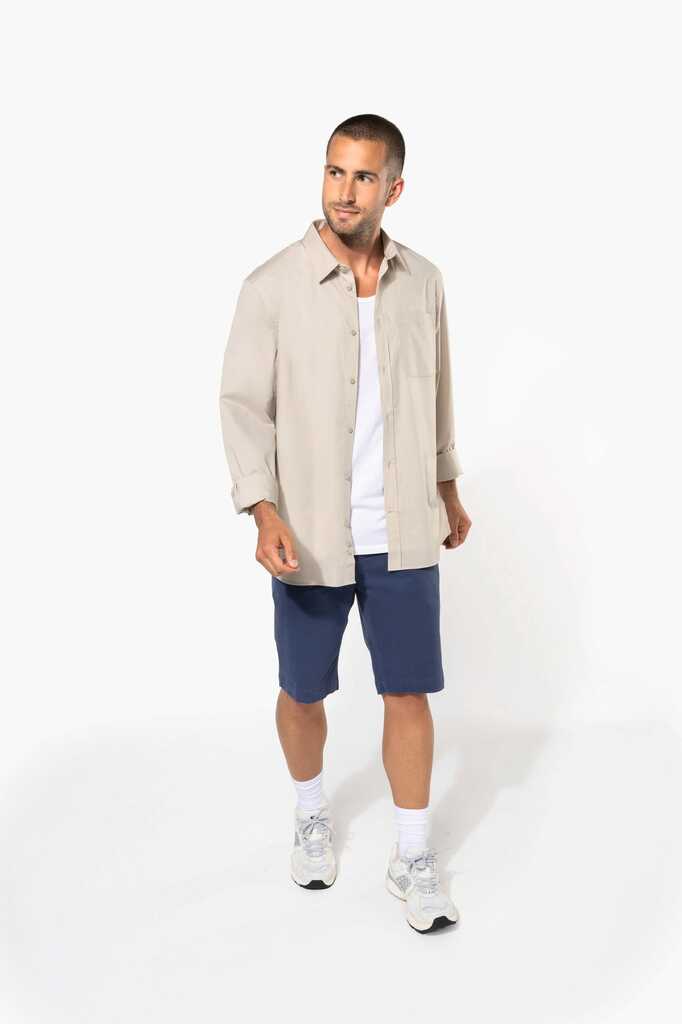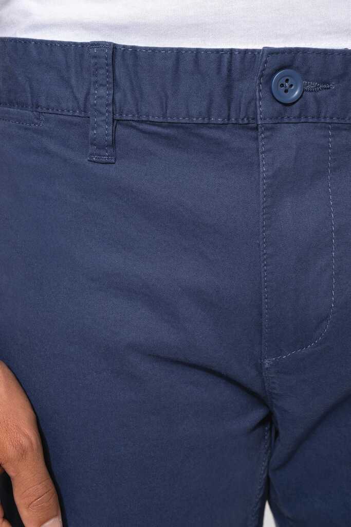 98% sarja de algodão / 2% elastano. Tecido aveludado com banho de enzimas para um conforto extra. 2 bolsos italianos laterais, um bolso pequeno e outro para moedas. 2 bolsos traseiros com pesponto de reforço. Com fecho e com botões. Presilhas na cintura. Corte moderno.
