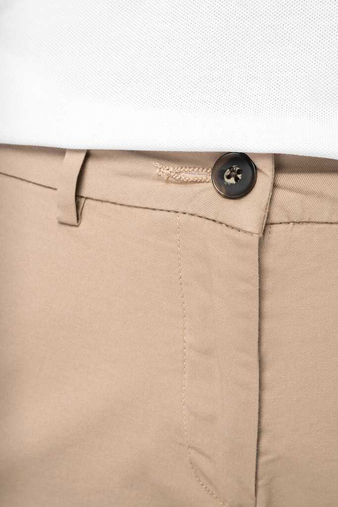 98% algodão biológico / 2% elastano. Algodão Twill. Corte direito. Com banho de enzimas. Acabamento pele de pêssego. Cintura com presilhas e presilha para fixar o cinto. Braguilha com botões em plástico reciclado e fechos em metal. Dois bolsos laterais. Dois bolsos traseiros com pesponto. Interior dos bolsos em chevron tom sobre tom e pesponto em contraste na cor Natural. Bainha invisÃvel e acabamentos laterais. Peça lavada após produção: as cores variam de produto para producto.