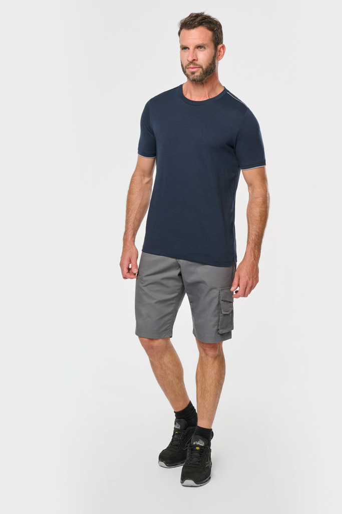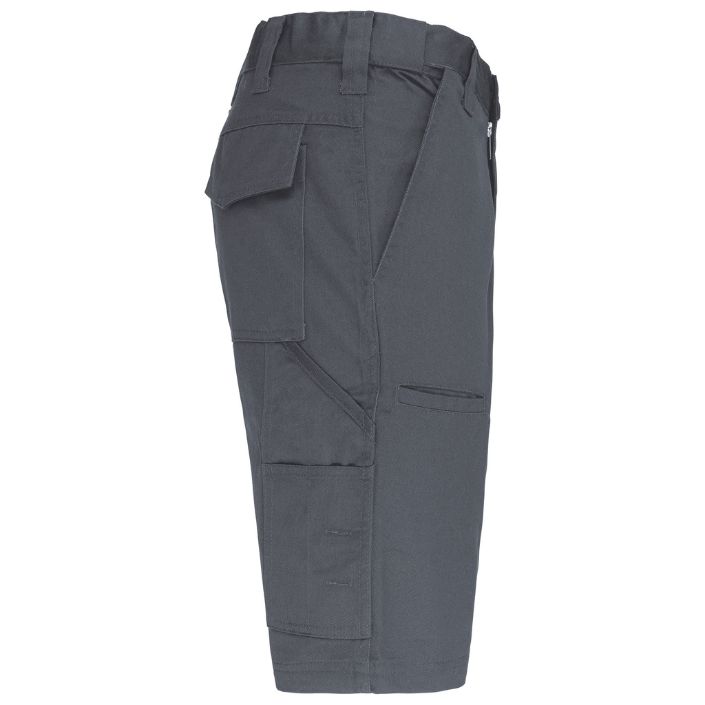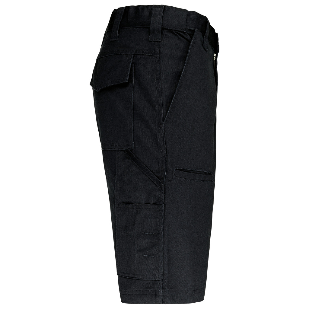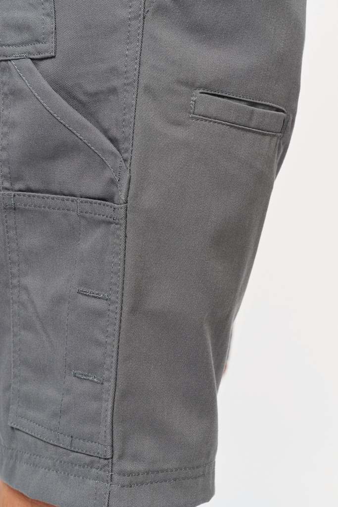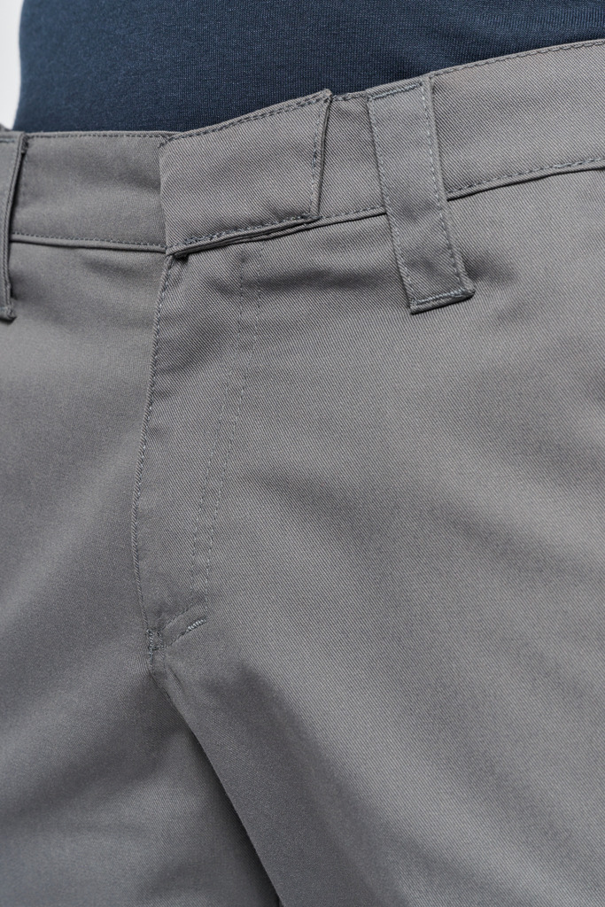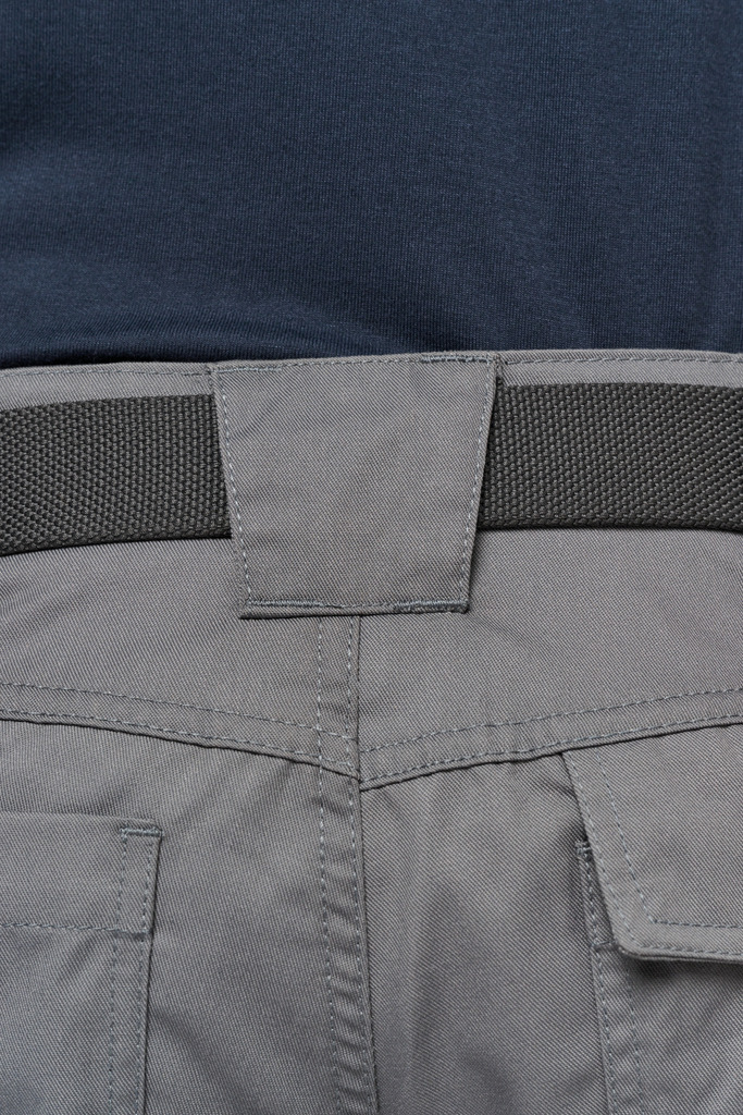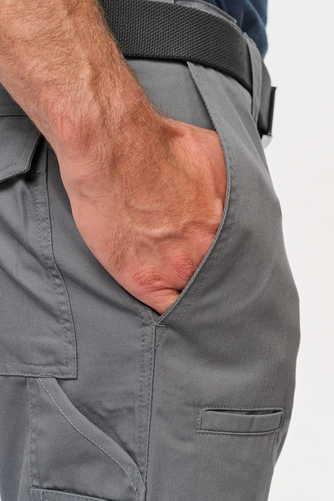 65% poliéster/35% algodão. Com fecho e com 1 botão. Cintura elástica para maior conforto. Bainha entre pernas reforçada por costura tripla. 3 bolsos frontais e traseiros e 1 bolso lateral com molas ocultas.