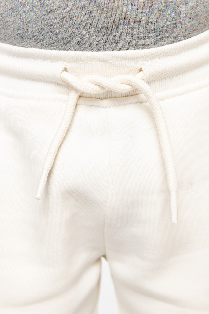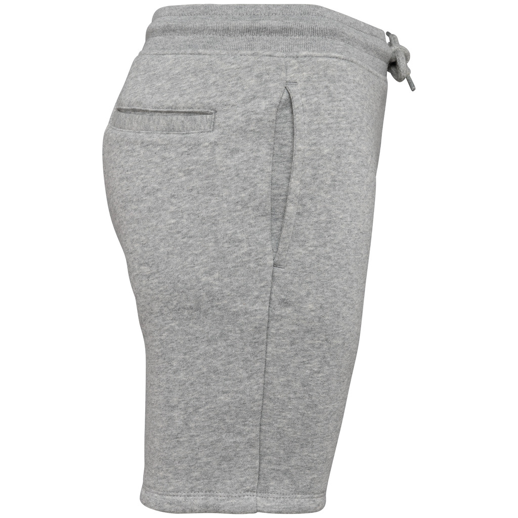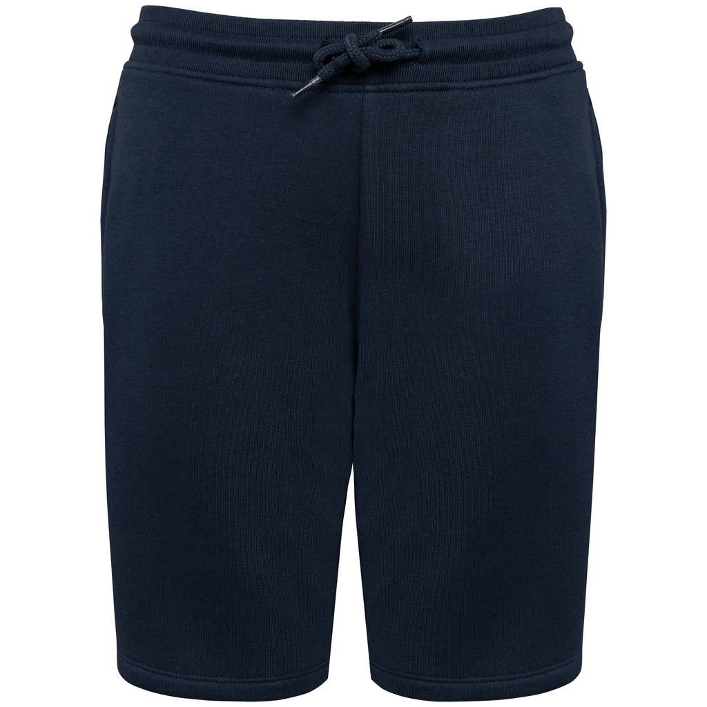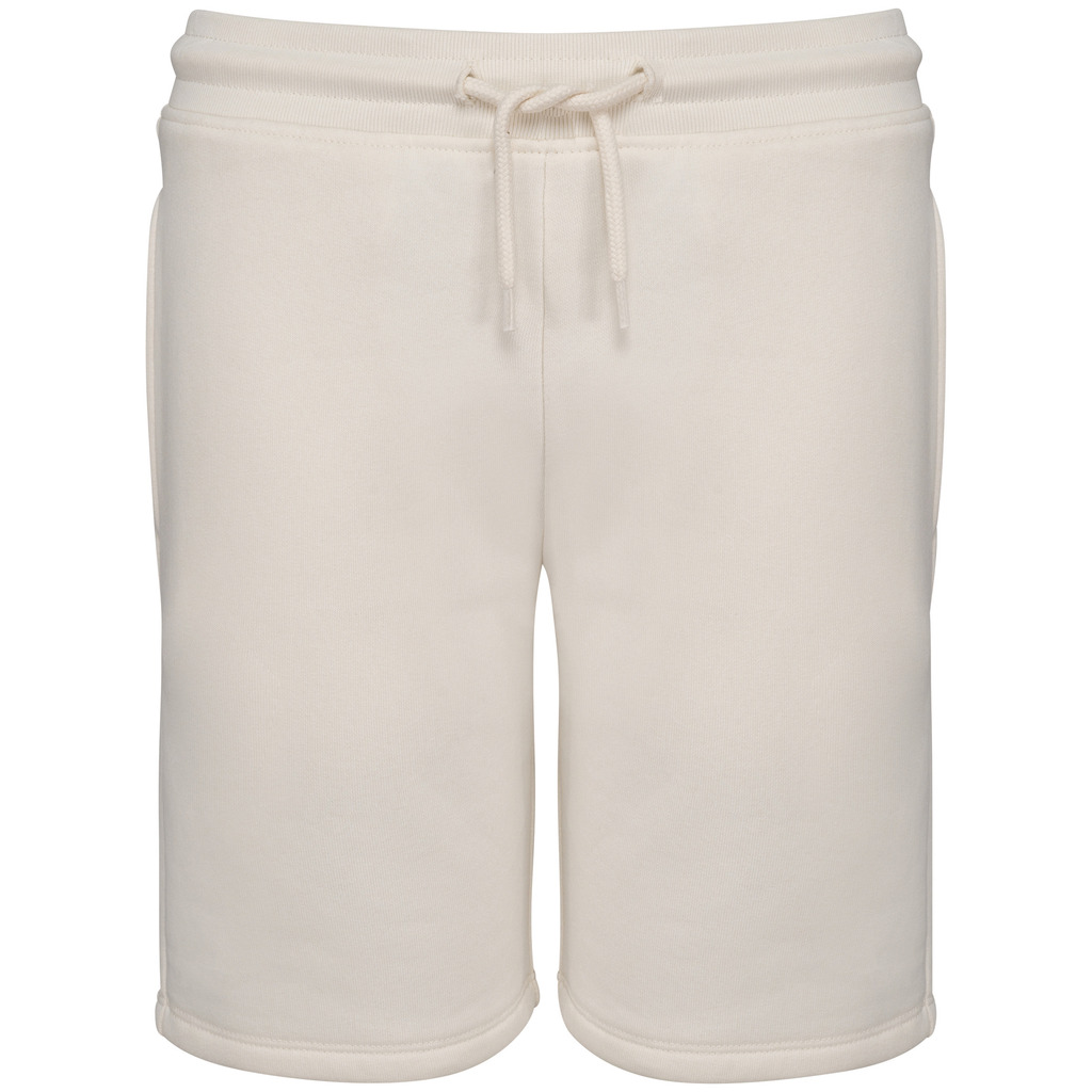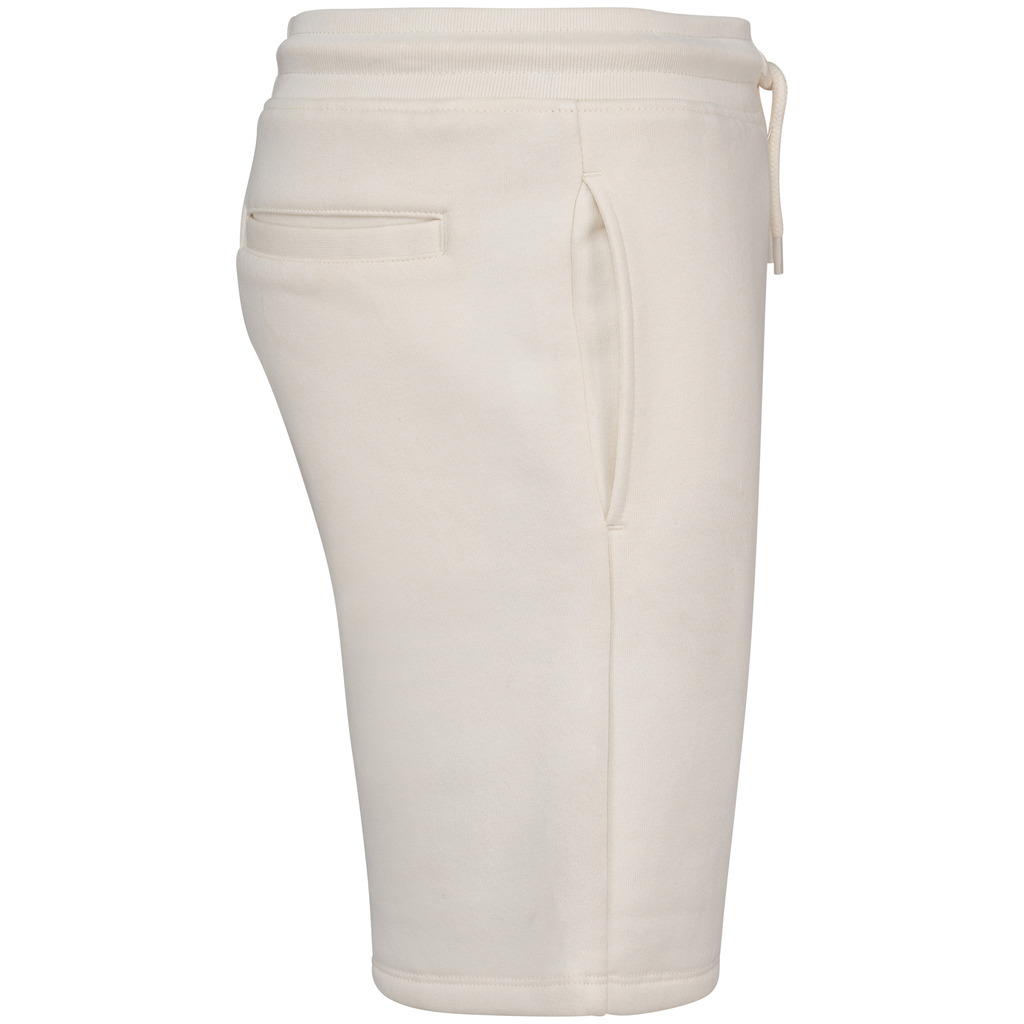 85% algodão biológico / 15% poliéster reciclado pós-consumo. Algodão penteado. Interior cardado 3 fios LSF (Low Shrinkage Fleece: interior pré-encolhido). Banho de enzimas. Cintura elástica com malha rib 1 x 1 com cordão de ajuste redondo em algodão biológico. Ilhó para cordão na cintura. Bolsos laterais e um bolso traseiro placado. Bainha das pernas com pesponto duplo.