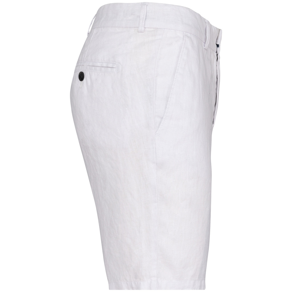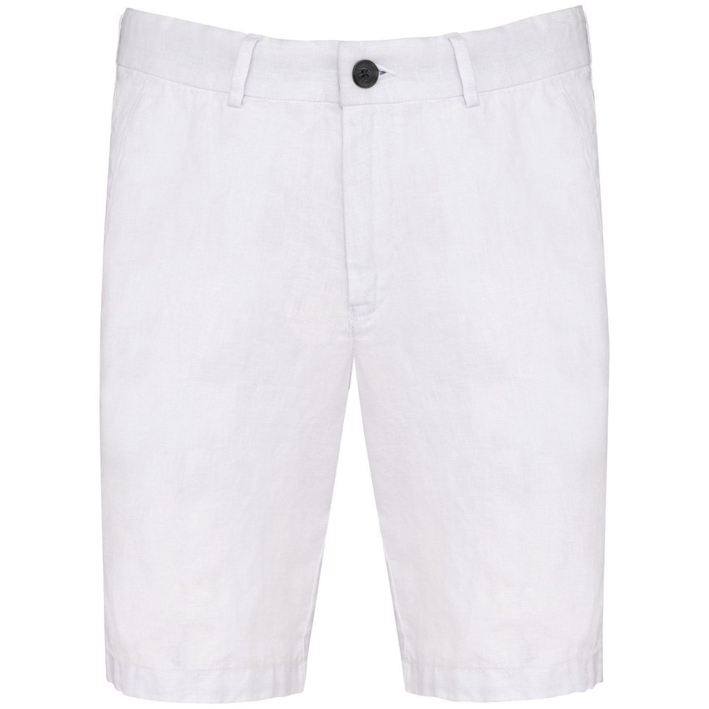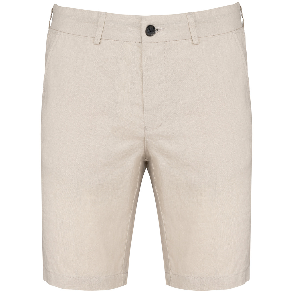 100% linho. Tecida. Cintura com presilhas e acabamento interior em contraste de cor azul marinho. Braguilha com botão em plástico reciclado com efeito marmoreado e fecho em metal reciclado. Dois bolsos frontais com pesponto. Dois bolsos traseiros com pesponto com botão em plástico reciclado com efeito marmoreado. Fundo dos bolsos frontais e traseiros em chevron tom sobre tom. Pesponto na traseira e frontal para mais reforço. Acabamento das pernas com bainha simples. Peça lavada após montagem: as cores podem variar de produto para produto.