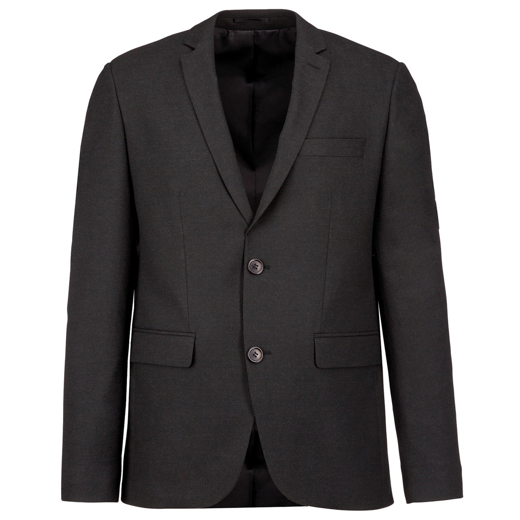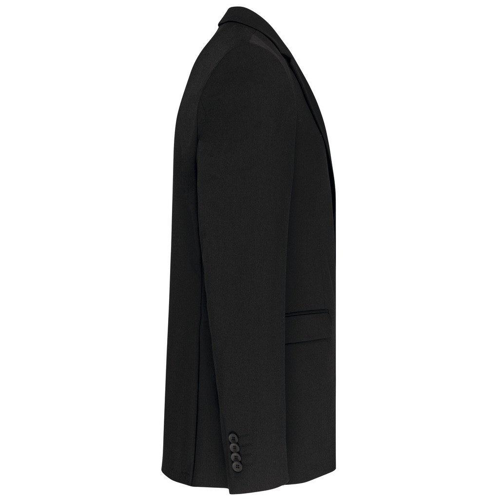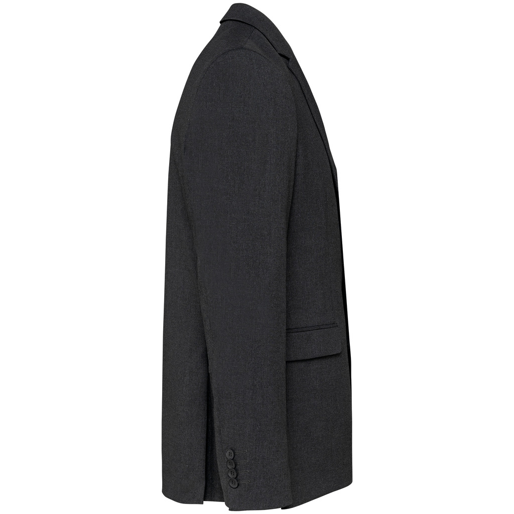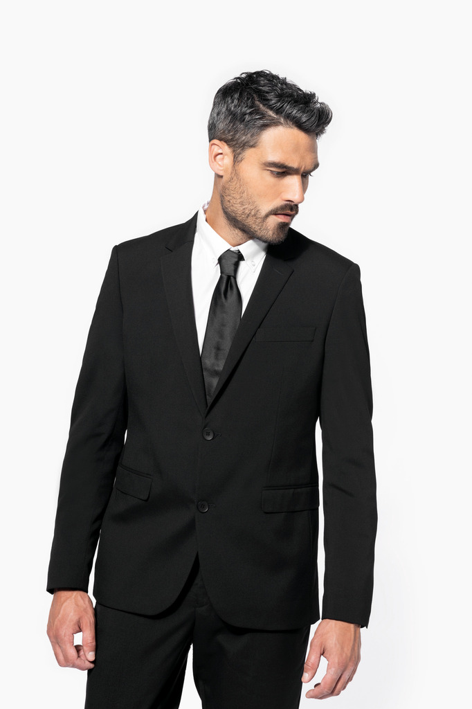 64% poliéster / 34% viscose / 2% elastano. Forro 100% poliéster taffeta. Casaco 2 botões. 2 bolsos com detalhes à frente com pala. 1 bolso no peito. 2 bolsos interiores com botão e 1 bolso para telemóvel. Acabamento da manga com 4 botões. 2 aberturas nas costas. 1 fecho invisÃvel no lado esquerdo de acesso para personalização.