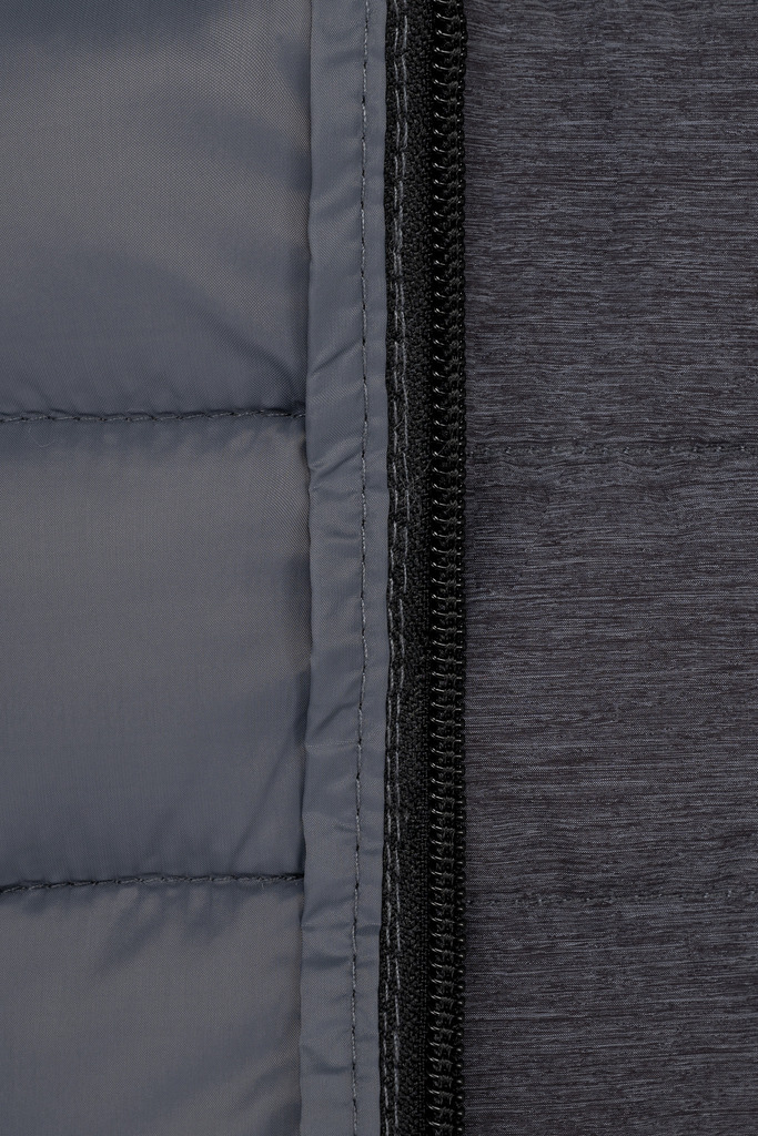 Cores lisas: 100% poliamida. Marl Silver: 70% poliéster / 30% poliamida. Marl Dark Grey: 70% poliamida / 30% poliéster. Revestimento interior de poliéster. Quente e ultraleve. Comprimível no seu saco de armazenamento. 2 bolsos frontais com fecho de correr. Contraste interior: Convoy Grey para Black, Red, Marl Dark Grey e Marl Silver; Navy para Light Royal Blue, Mineral Green, Dark Khaki e Wine; Black para Forest Green; Dark Khaki para Jungle Camo. Interiores tom sobre tom: Burnt Ochre para Burnt Ochre; Navy para Navy; White para White.