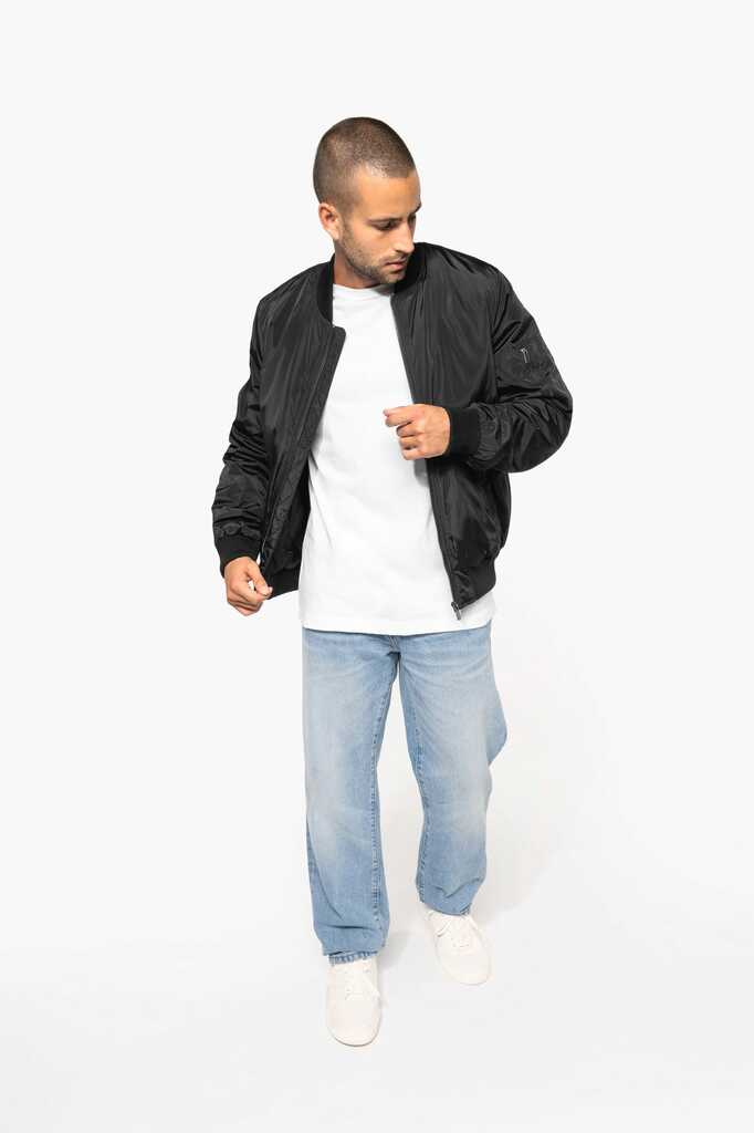 100% poliéster. Forro acolchoado 100% poliéster. Com fecho. 2 bolsos frontais com pespontos. Bolso cosido com fecho com bolso porta-caneta na manga esquerda. Bolso com debrum interior. Acabamento da gola, manga e cós em malha rib 2×2. Fecho no lado esquerdo e fecho na parte inferior de acesso para personalização.