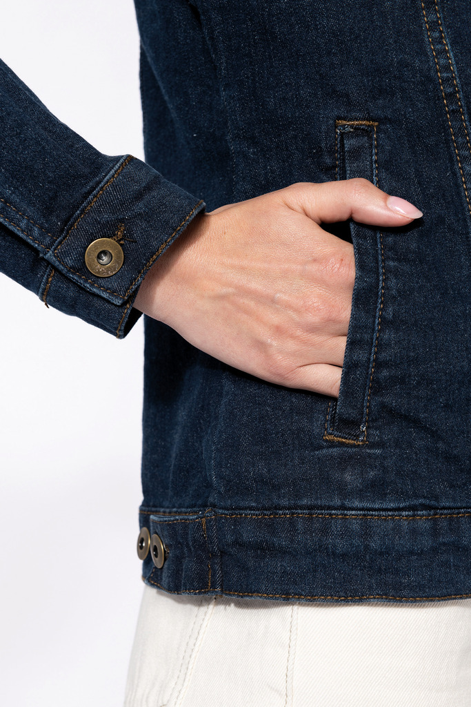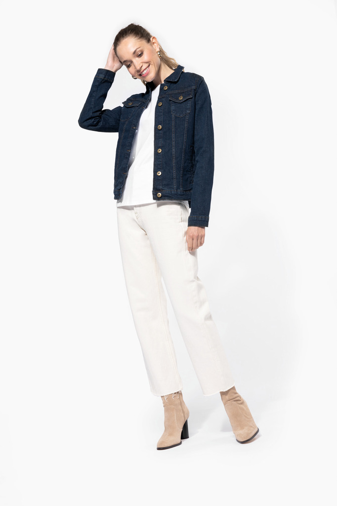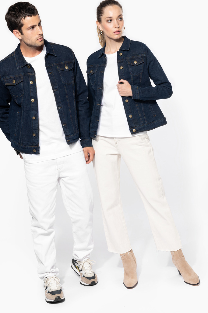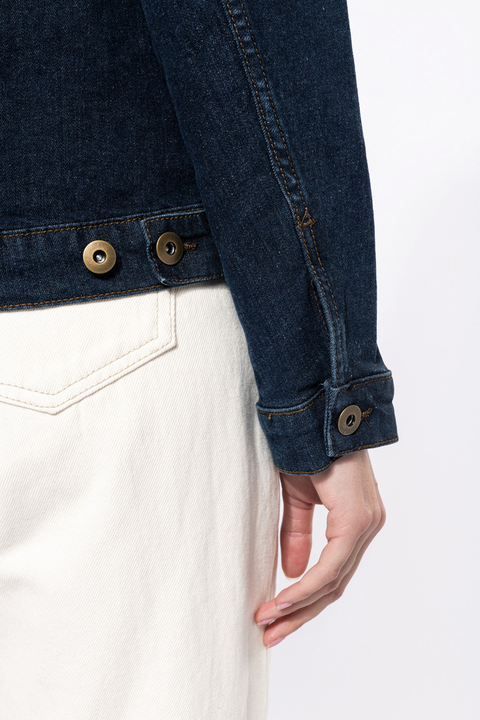 99% algodão denim (ganga) / 1% elastano. 11,50 oz. Botões de metal. 2 bolsos no peito com pala com botão e 2 bolsos com detalhes à frente. 2 bolsos interiores. Costuras em contraste. Punhos com botões. Este produto foi submetido a um tratamento especial e apresenta um aspecto intencionalmente envelhecido. Este procedimento implica variações de cor de produto para produto, o que torna cada peça única. Peça fornecida com etiqueta sem marca, contendo apenas indicação de tamanho para facilitar a personalização.