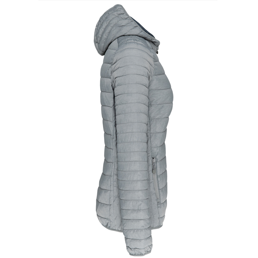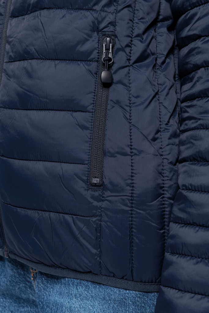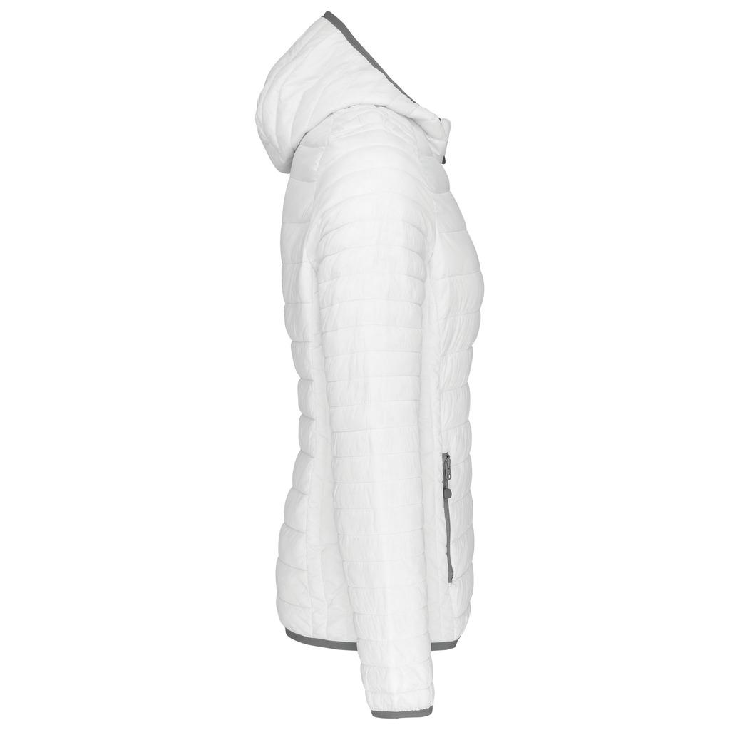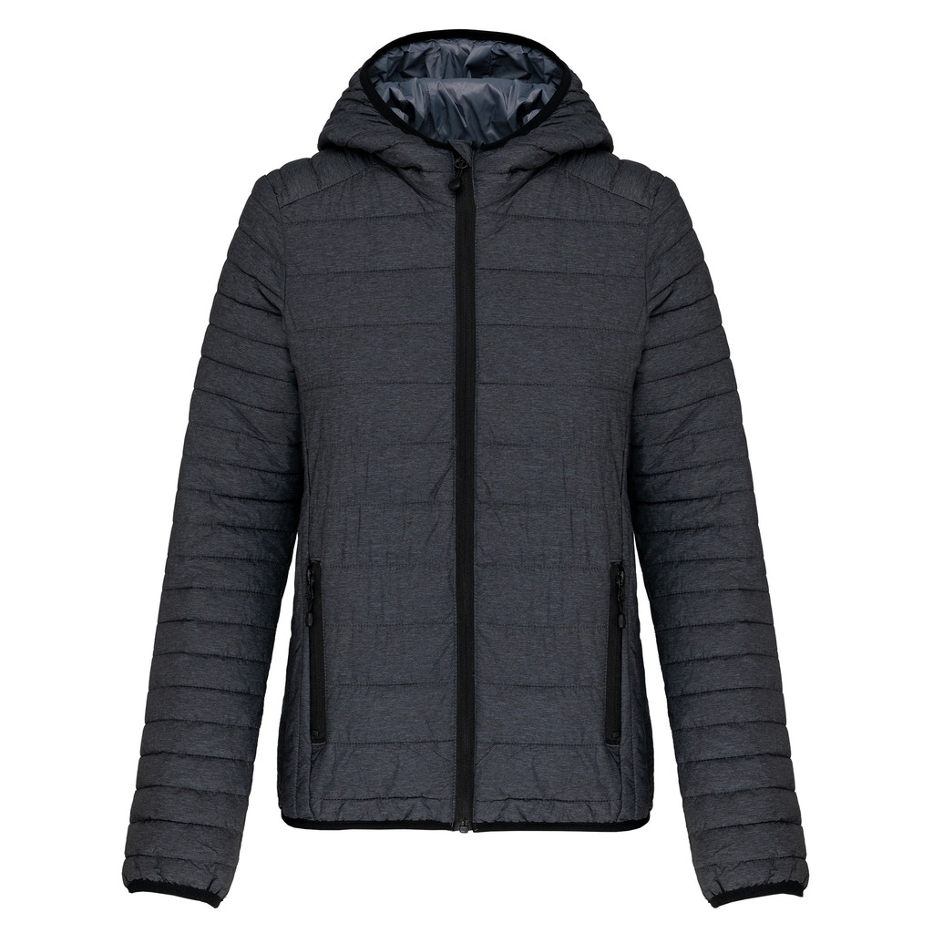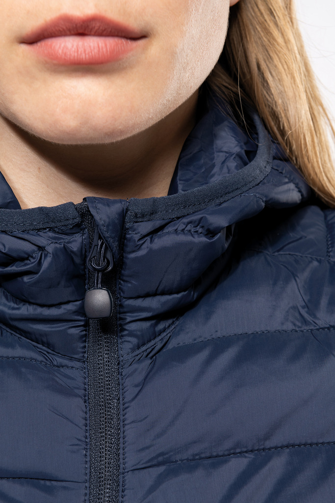 100% poliamida (Marl Silver 100% poliéster, Marl Dark Grey: 70% poliamida / 30% poliéster). Interior em poliéster. Quente e muito leve. Fácil arrumação dentro do saco de acondicionamento. 2 bolsos frontais com fecho. Interior em contraste: Convoy Grey para Black, Red, Marl Dark Grey e Marl Silver; Navy para Light Royal Blue; Black para Forest Green. Interior tom sobre tom: Navy para Navy; White para White.