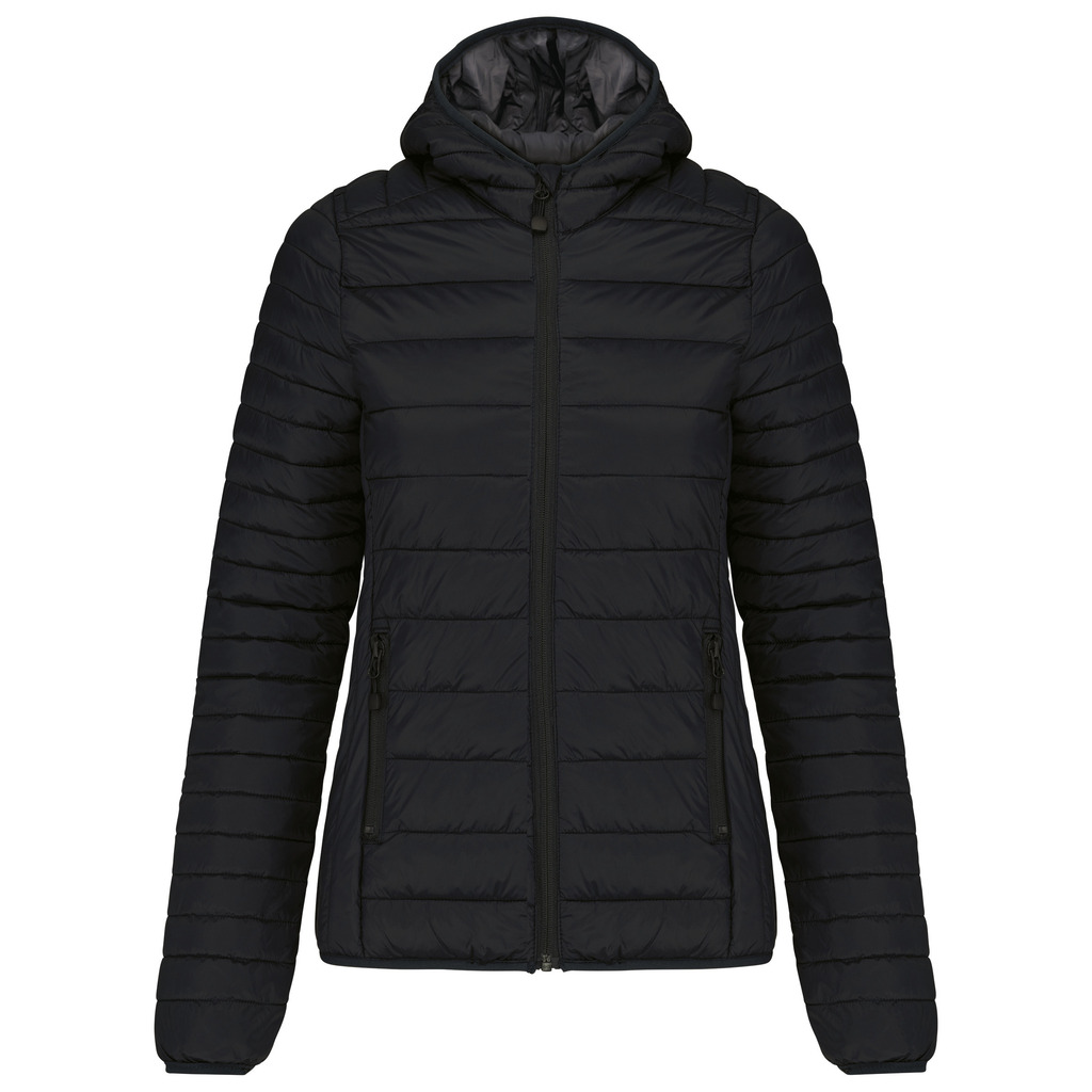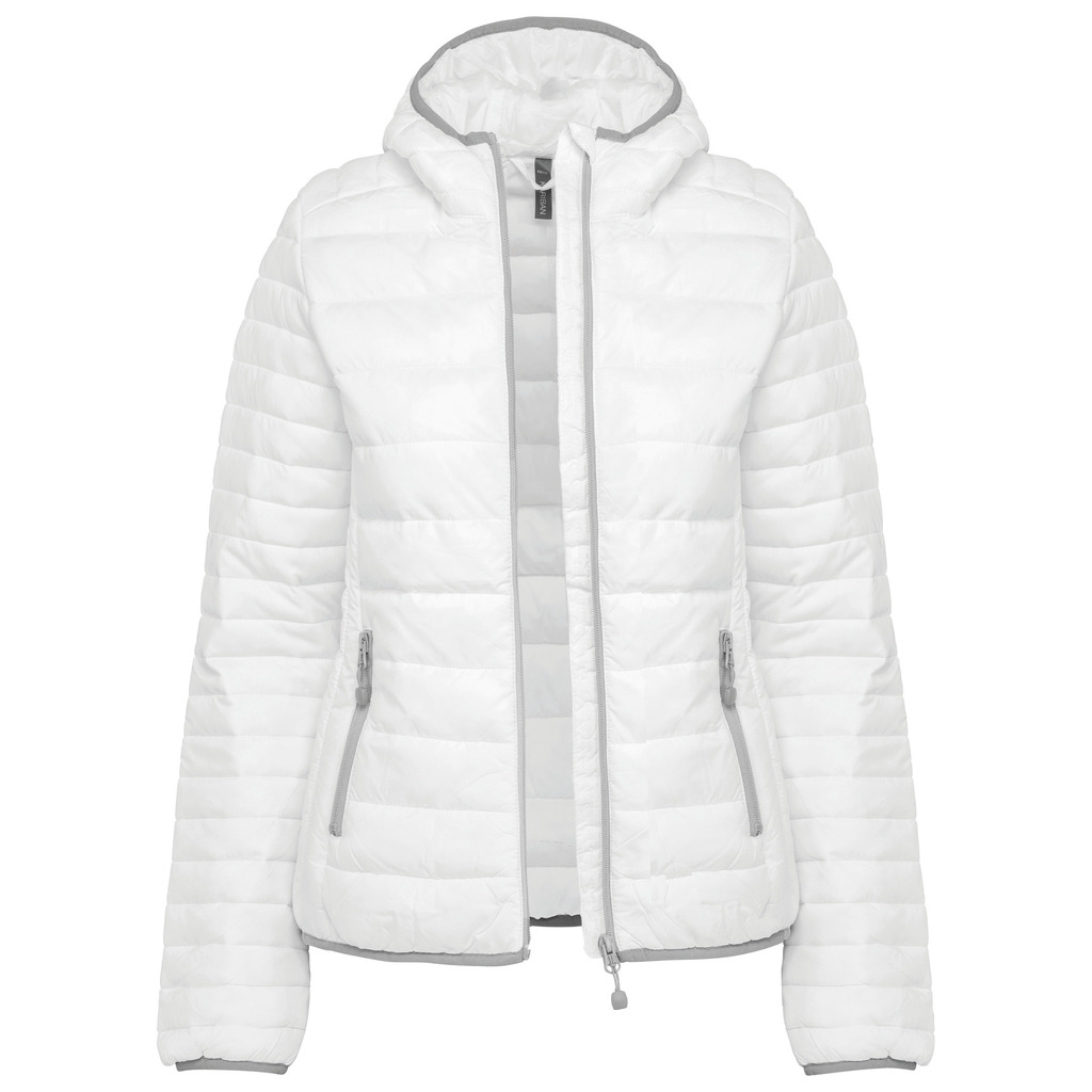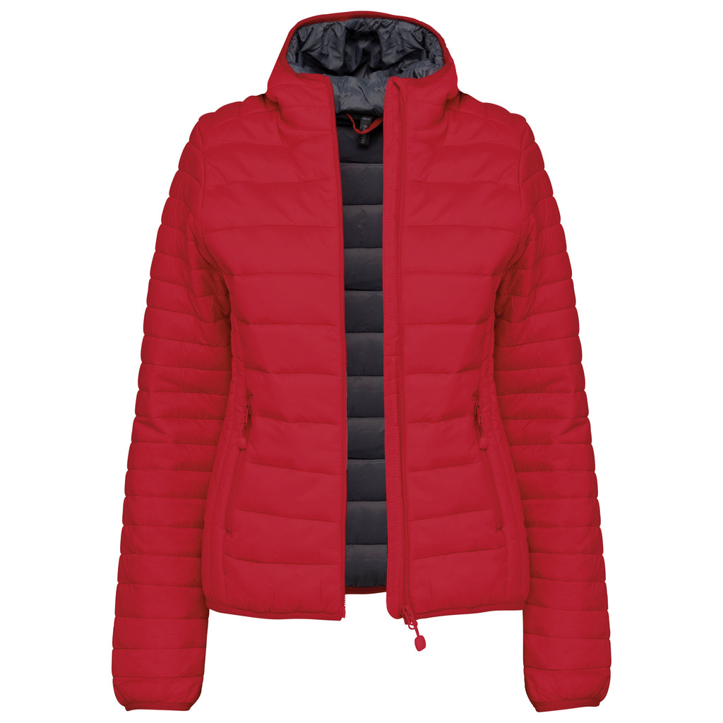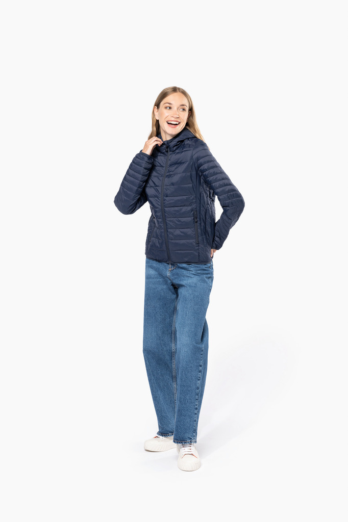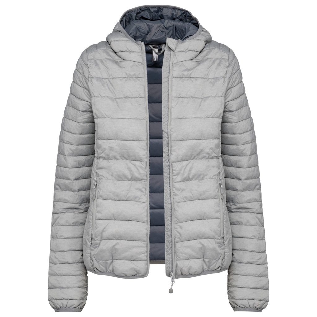 100% poliamida (Marl Silver 100% poliéster, Marl Dark Grey: 70% poliamida / 30% poliéster). Interior em poliéster. Quente e muito leve. Fácil arrumação dentro do saco de acondicionamento. 2 bolsos frontais com fecho. Interior em contraste: Convoy Grey para Black, Red, Marl Dark Grey e Marl Silver; Navy para Light Royal Blue; Black para Forest Green. Interior tom sobre tom: Navy para Navy; White para White.