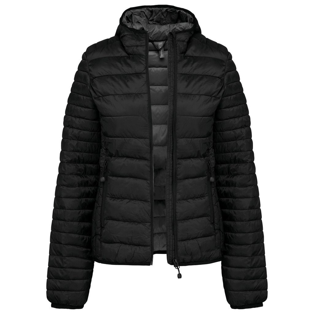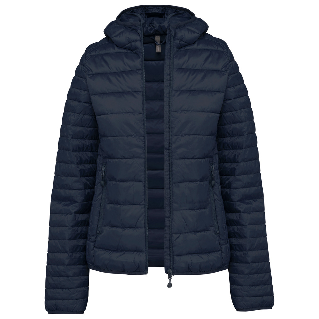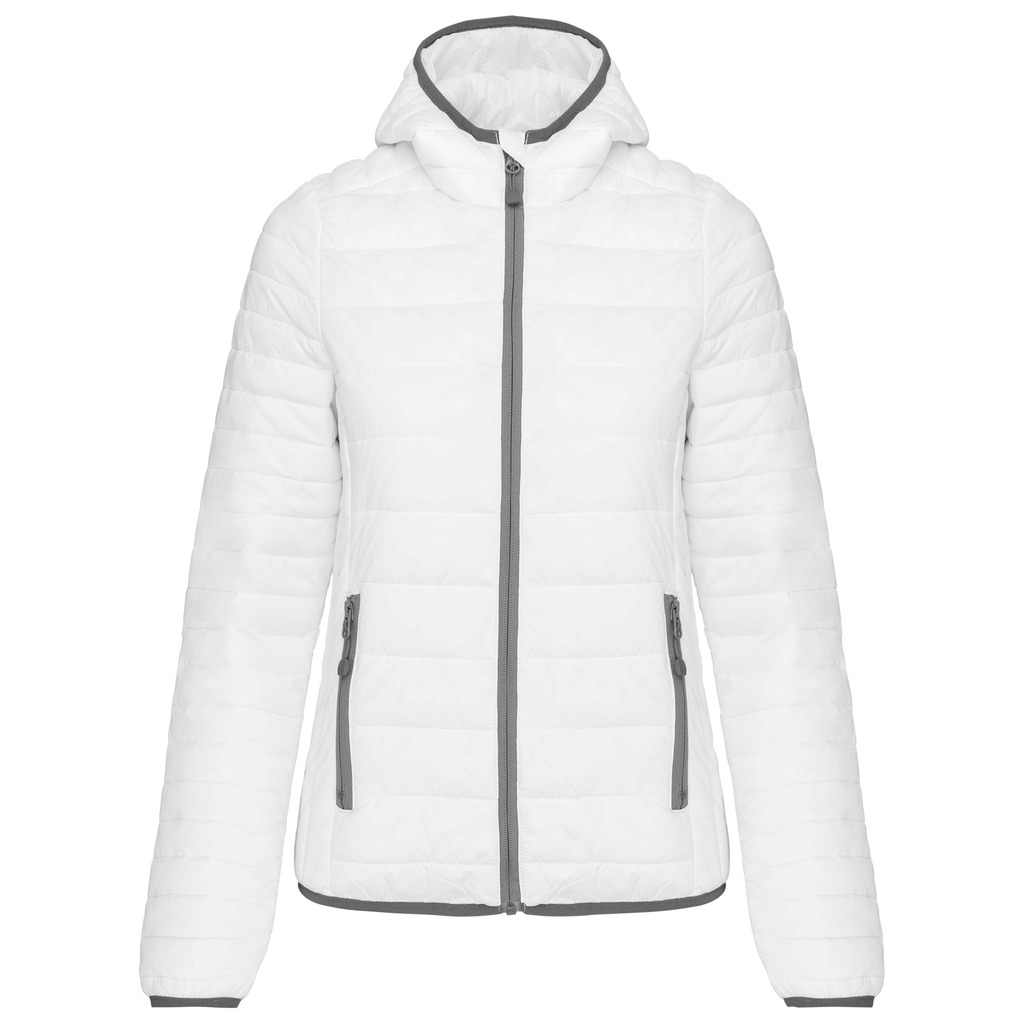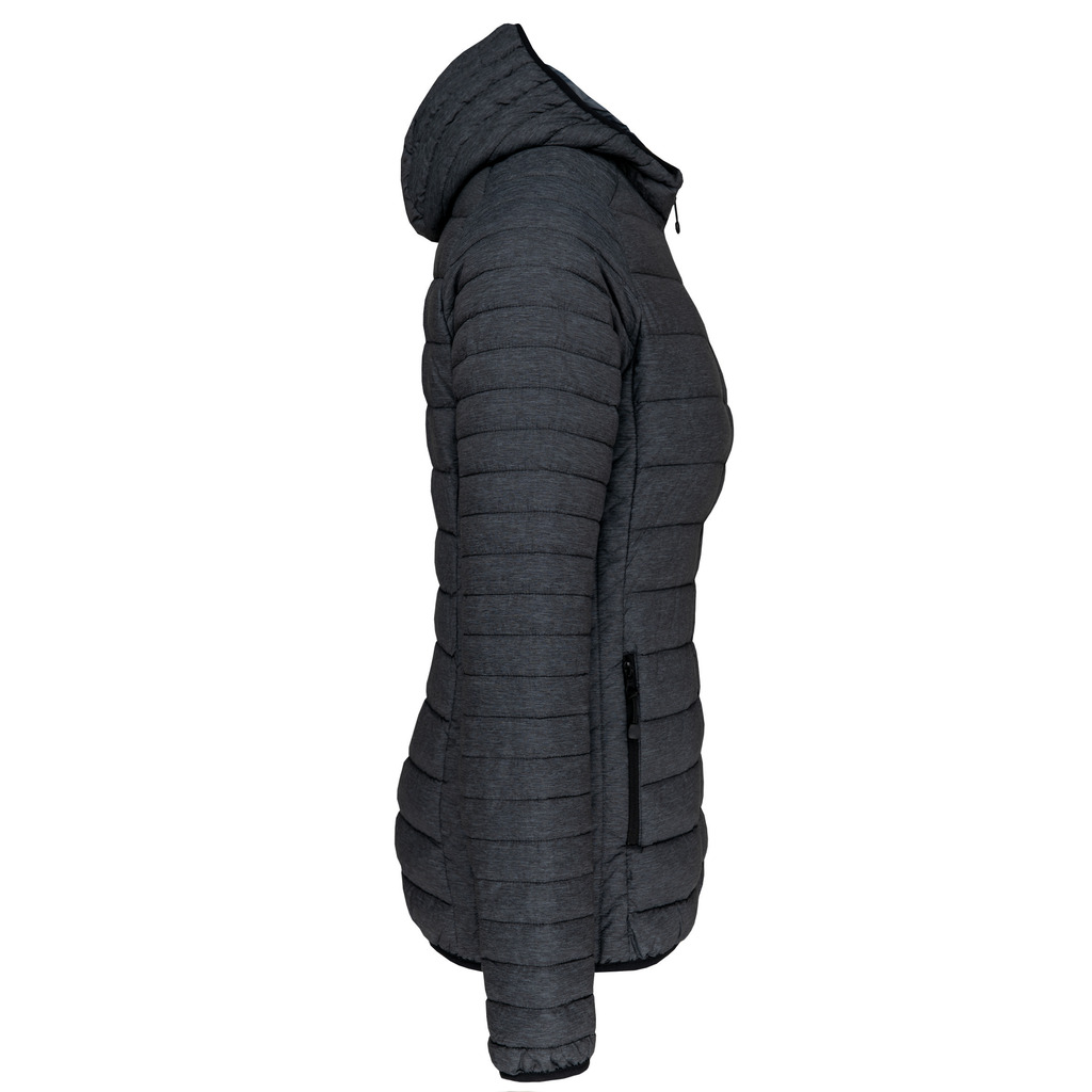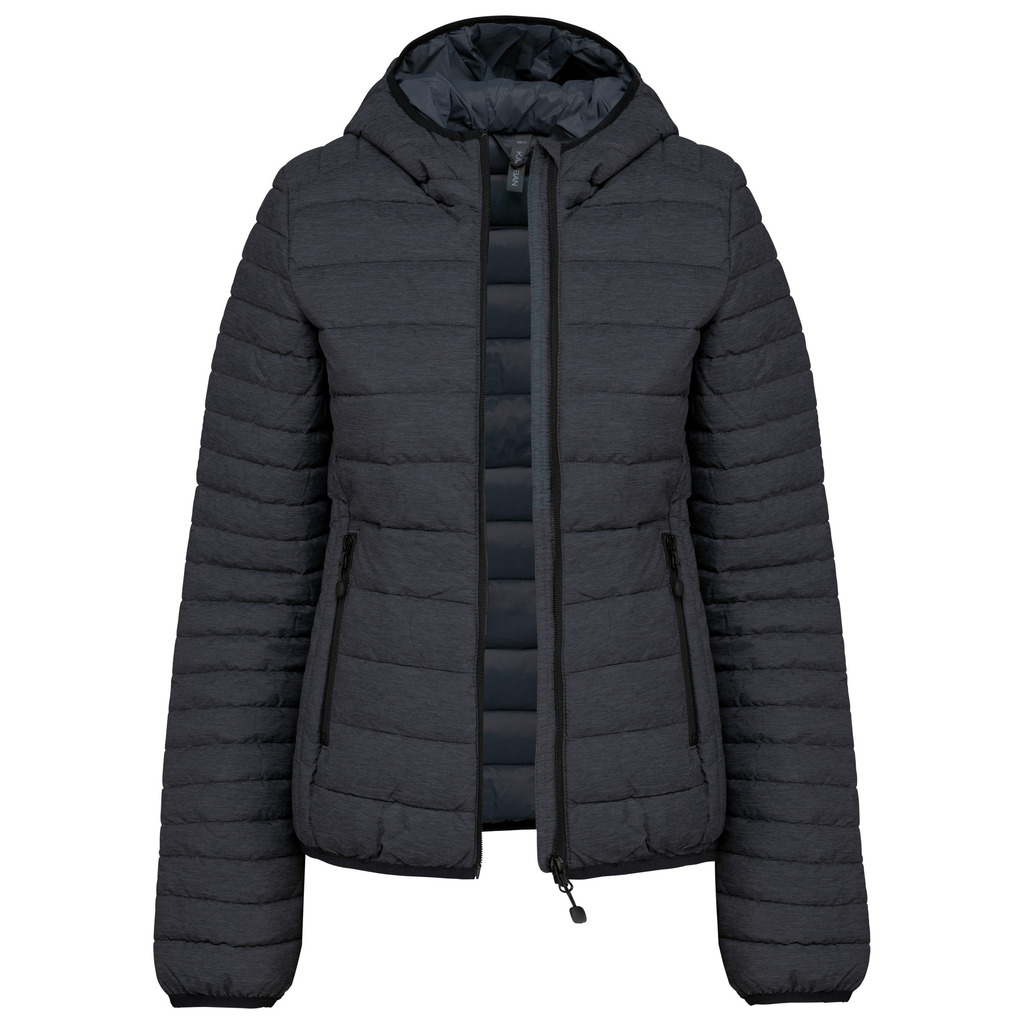 100% poliamida (Marl Silver 100% poliéster, Marl Dark Grey: 70% poliamida / 30% poliéster). Interior em poliéster. Quente e muito leve. Fácil arrumação dentro do saco de acondicionamento. 2 bolsos frontais com fecho. Interior em contraste: Convoy Grey para Black, Red, Marl Dark Grey e Marl Silver; Navy para Light Royal Blue; Black para Forest Green. Interior tom sobre tom: Navy para Navy; White para White.