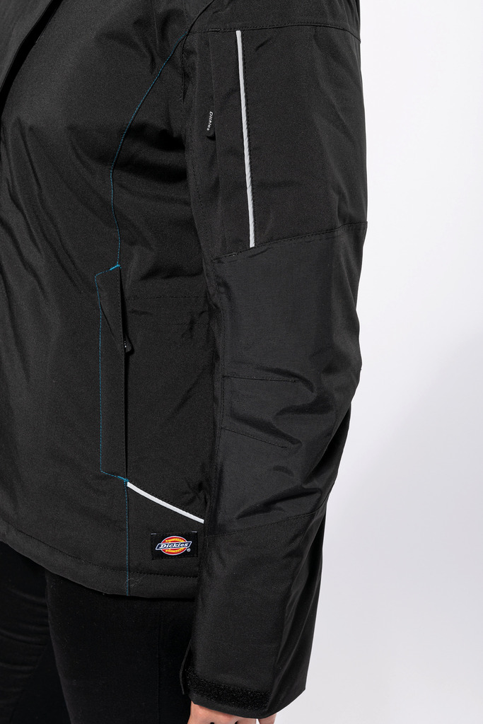 100% poliéster. Blusão forrado e acolchoado, respirável. Fecho. Patches/Reforços resistentes à abrasão nos cotovelos. Painéis articulados nos cotovelos. Punhos reguláveis. Detalhes retrorreflectores. Evasê na parte traseira. Protecção contra a chuva e o vento. Bolso na manga. Bolso interior. Pala contra o vento. Capuz. Acesso fácil para personalização.