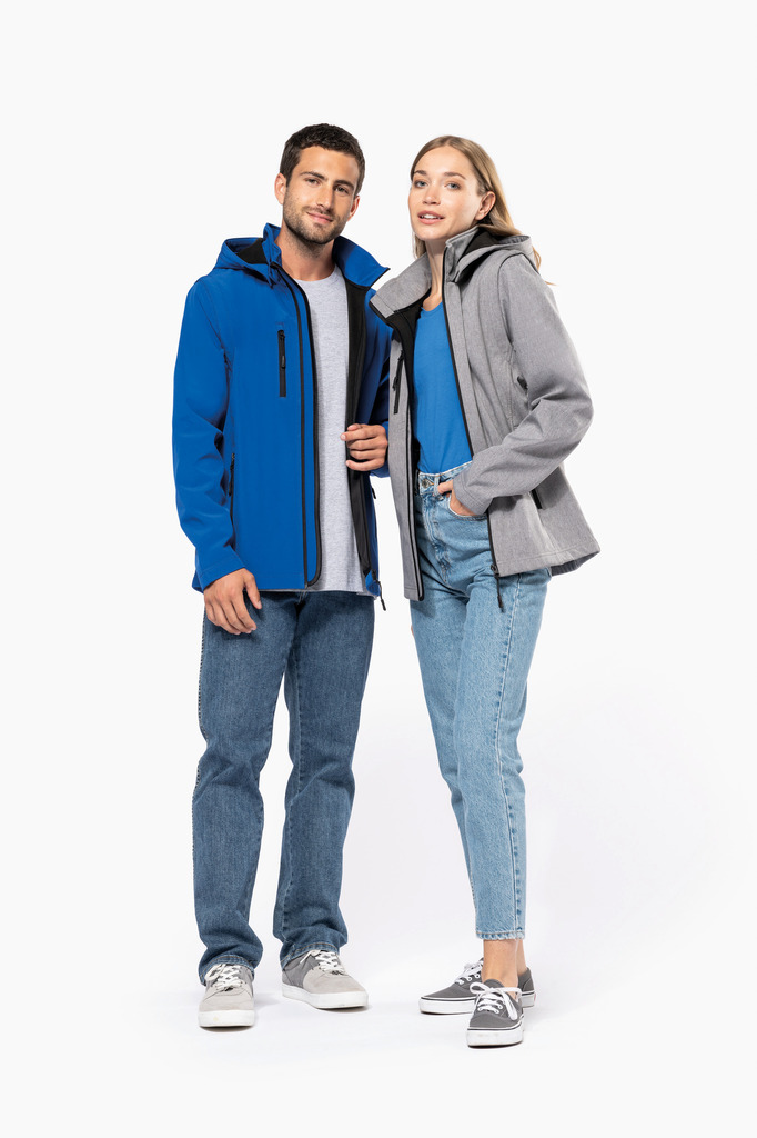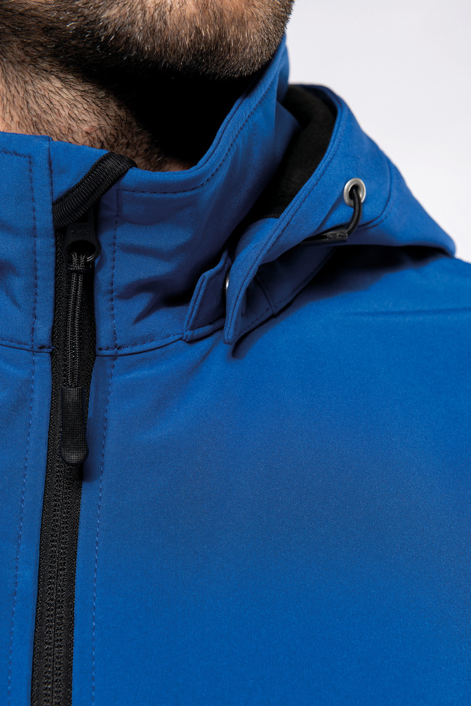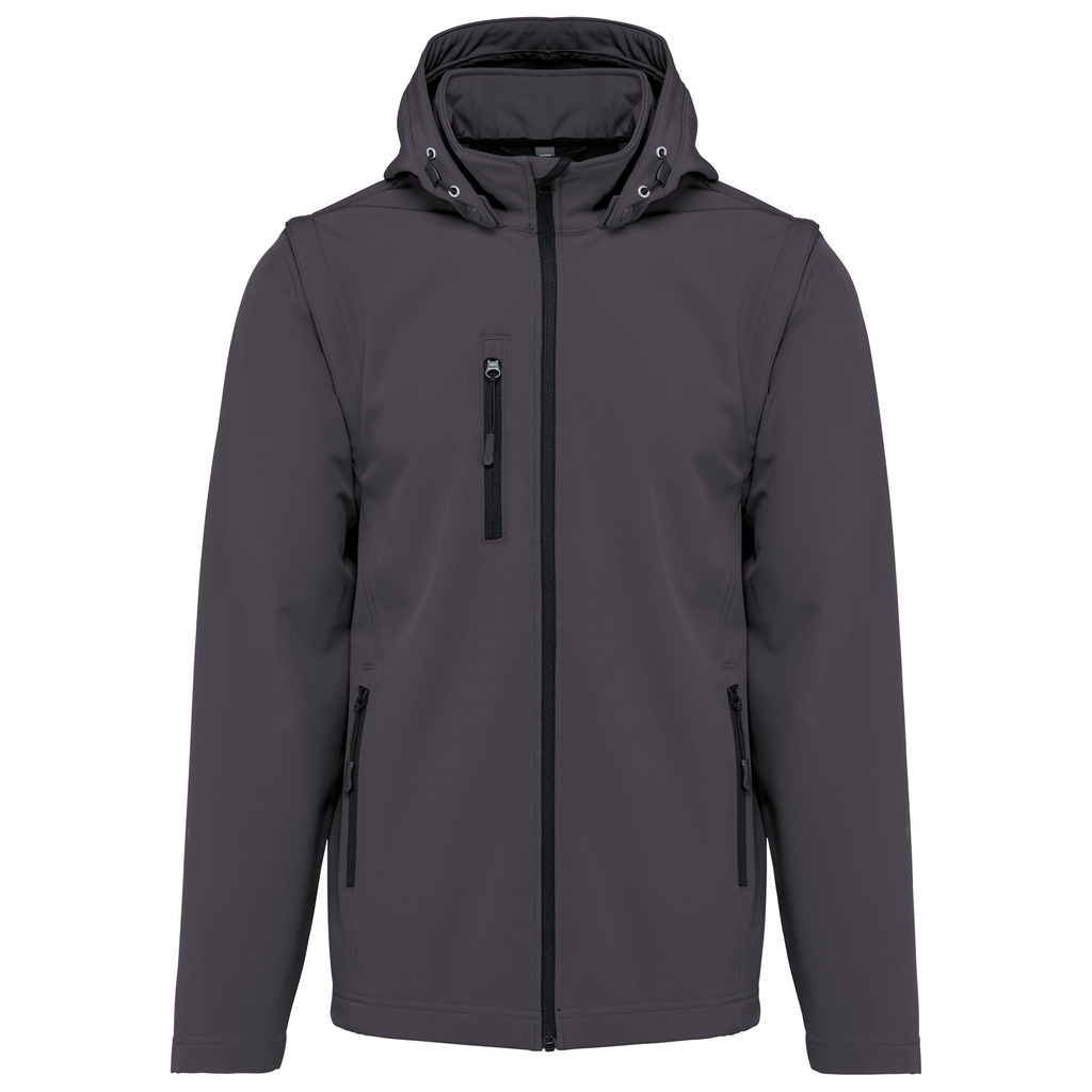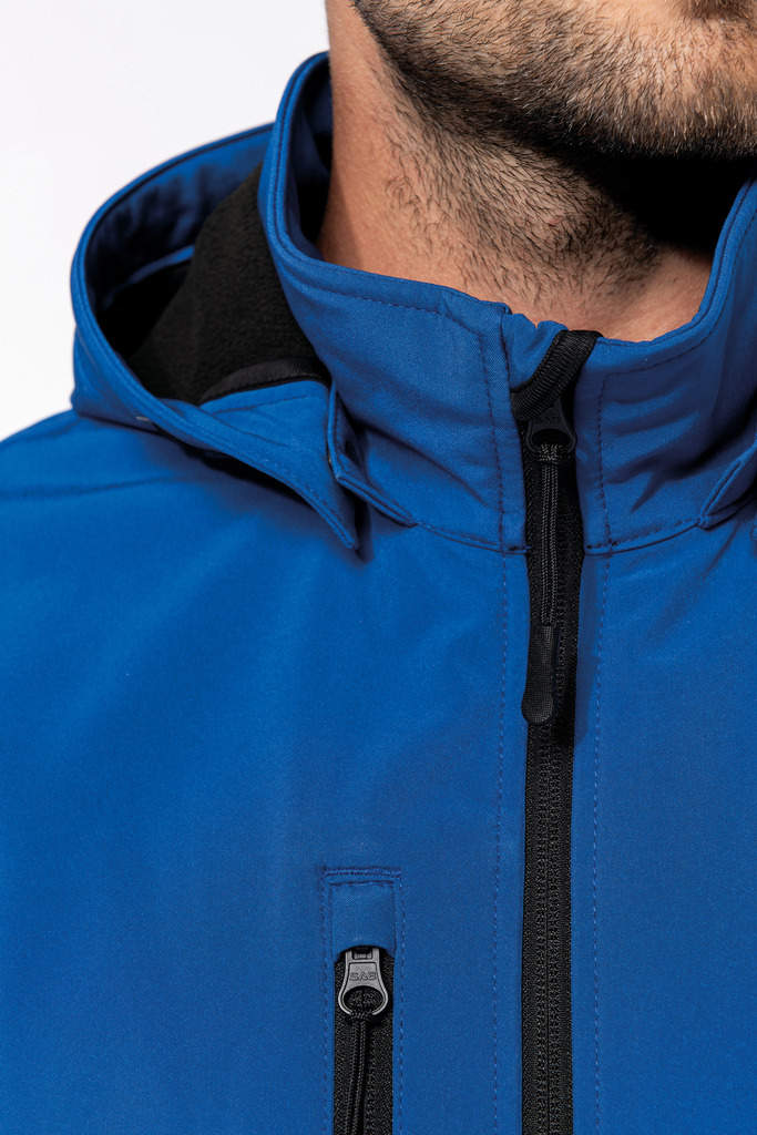 95% poliéster / 5% elastano. Tecido termocolado com 3 camadas respirável. 3000 g / m² / 24 horas e impermeável 8000 mm. Exterior: 95% poliéster / 5% elastano. Camada intermédia: membrana respirável. Camada interior: micropolar. Tecido que facilita a impressão. Corte justo. Com fecho. 2 bolsos frontais com fecho e um bolso com fecho no lado direito. Capuz amovÃvel graças a molas e cordão de ajuste. Mangas amovÃveis com fecho. Acabamento costura dupla nas mangas e no cós.