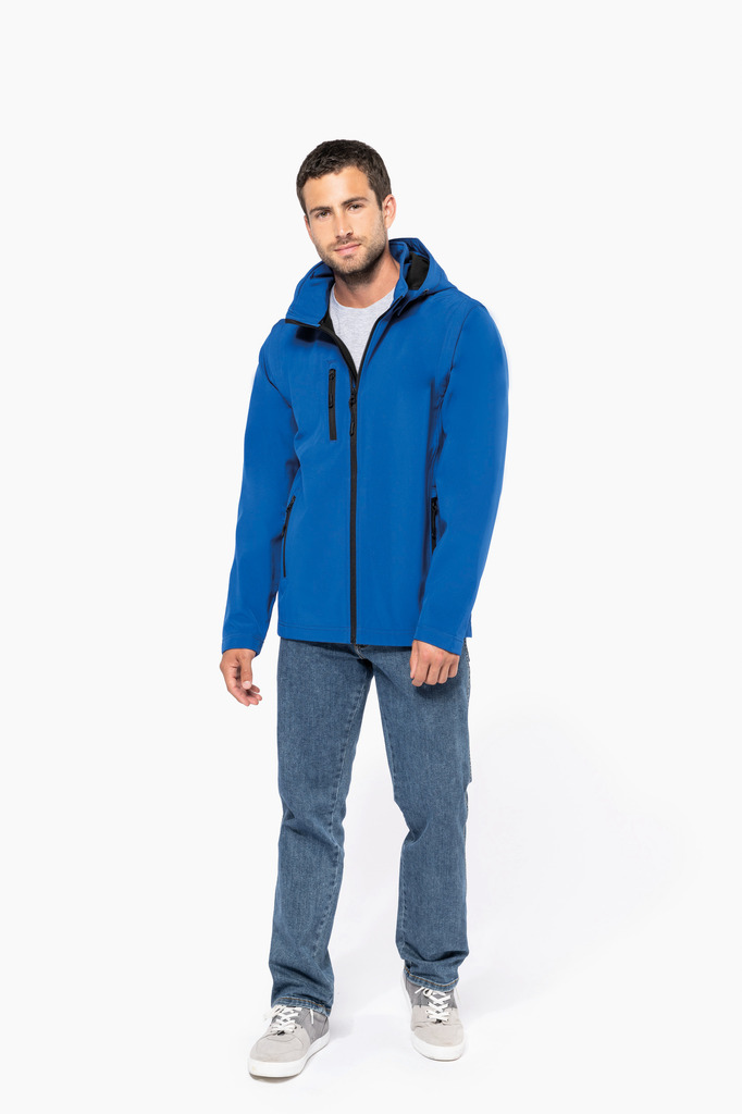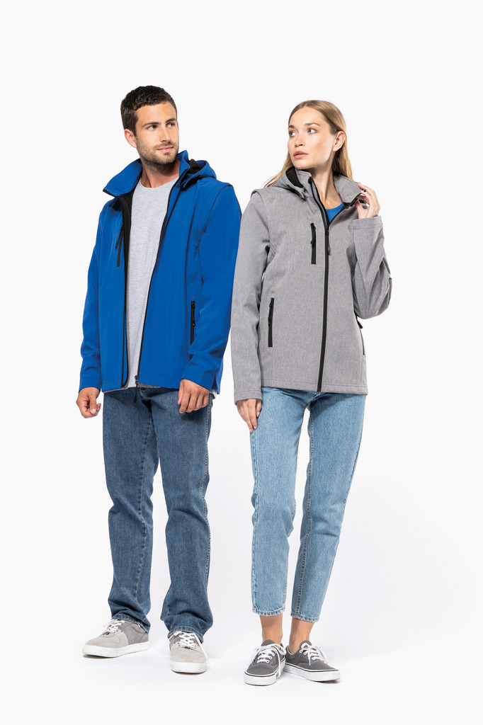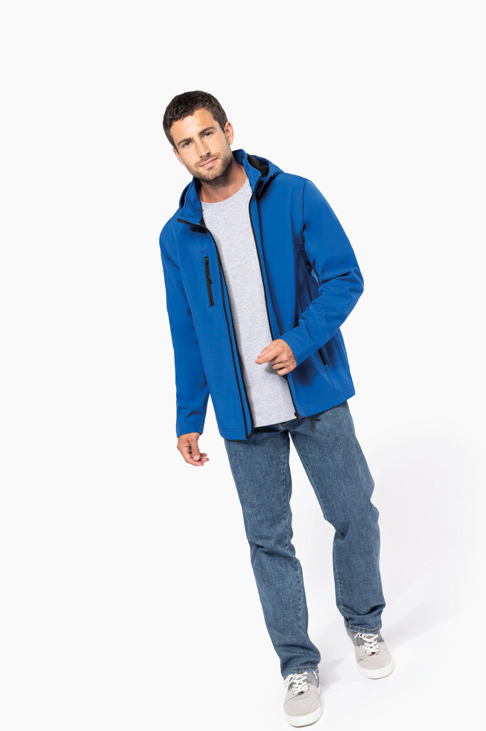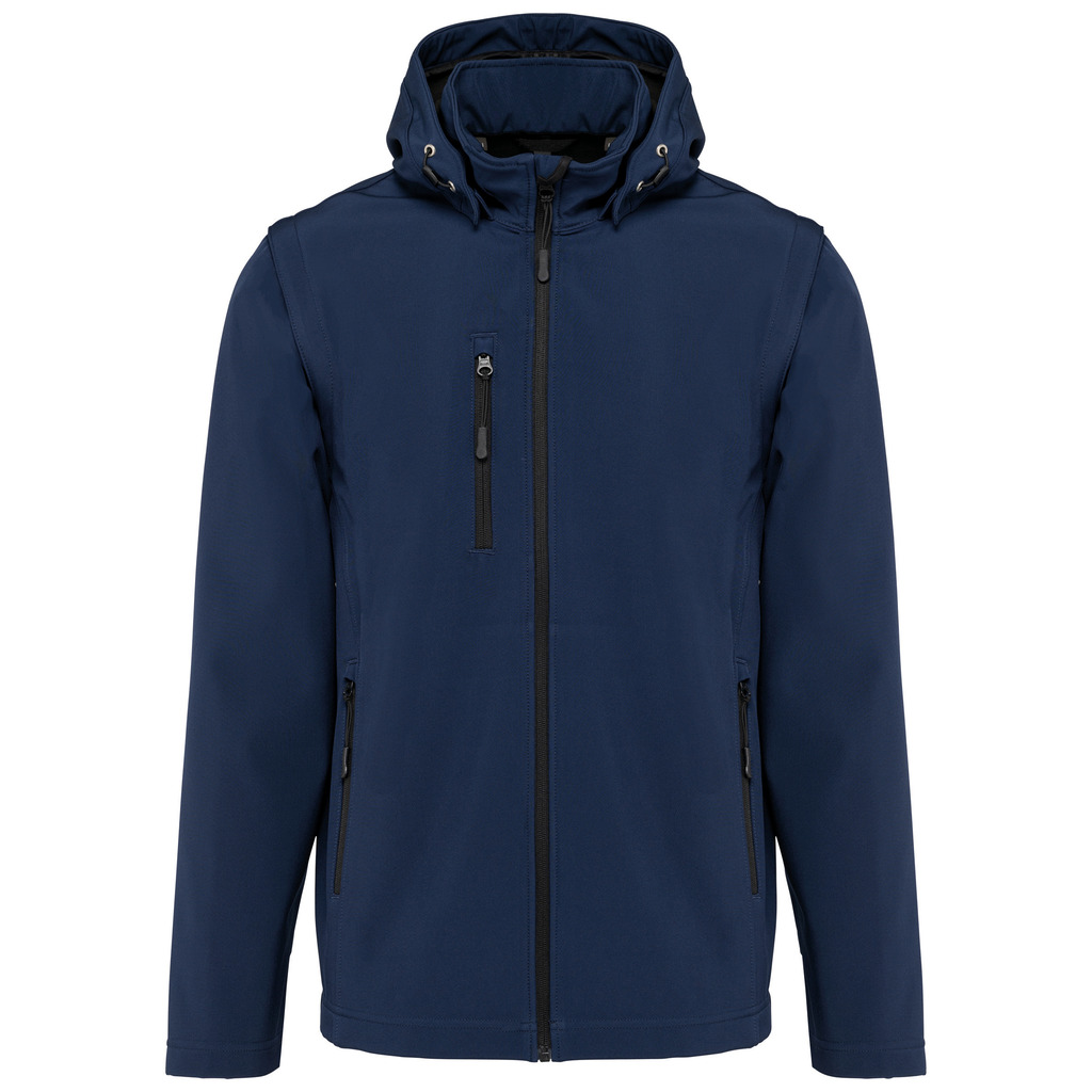 95% poliéster / 5% elastano. Tecido termocolado com 3 camadas respirável. 3000 g / m² / 24 horas e impermeável 8000 mm. Exterior: 95% poliéster / 5% elastano. Camada intermédia: membrana respirável. Camada interior: micropolar. Tecido que facilita a impressão. Corte justo. Com fecho. 2 bolsos frontais com fecho e um bolso com fecho no lado direito. Capuz amovÃvel graças a molas e cordão de ajuste. Mangas amovÃveis com fecho. Acabamento costura dupla nas mangas e no cós.
