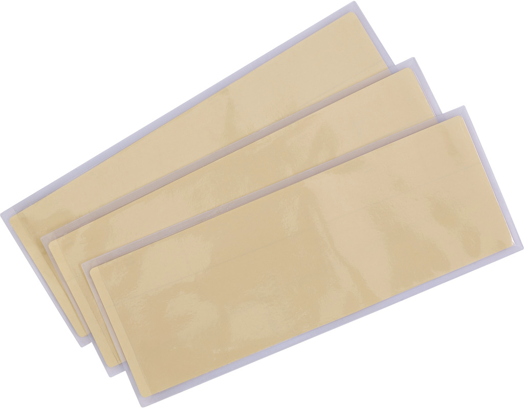 Porta-cartões termocolado resistente e impermeável. Aplicação através de uma simples operação termocolada (130 °C durante 10 segundos). De acordo com o tamanho, para cartões com, no máximo, 300 x 100 mm. Lavável a 60 °C.