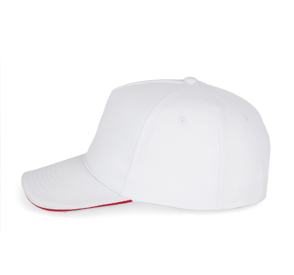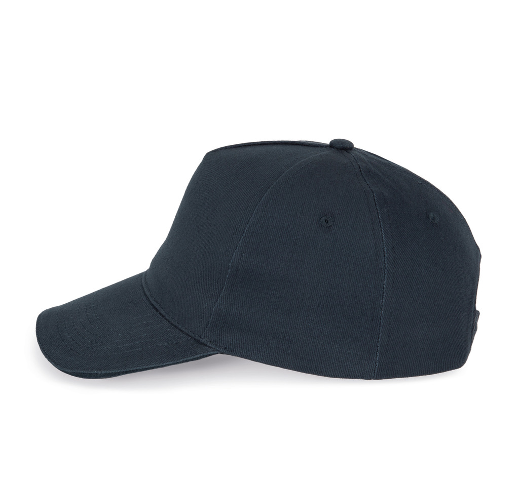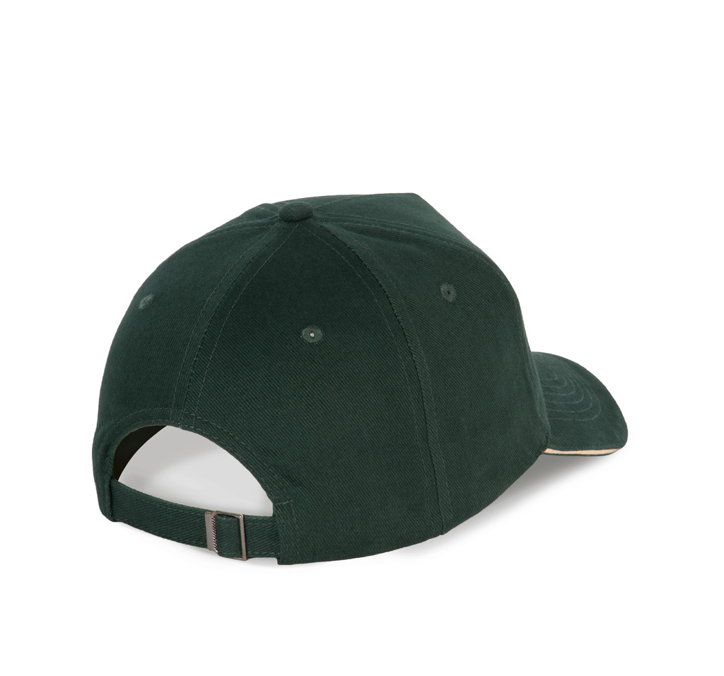 100% algodão. Boné com 5 painéis. Ajuste com fivela metálica e presilha de autobloqueio.
