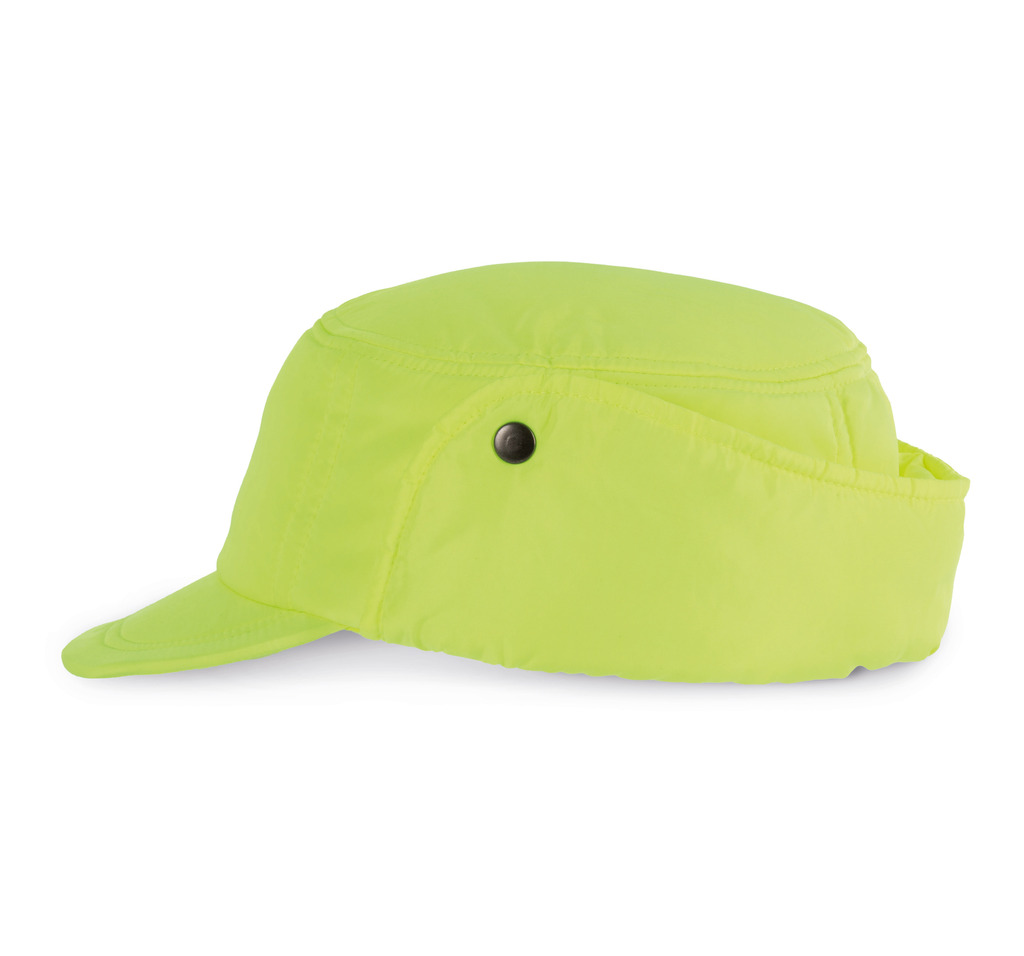 Boné de Inverno em poliéster com tapa-orelhas. Tecido suave, térmico e acolchoado. Etiqueta da marca Tear-away.