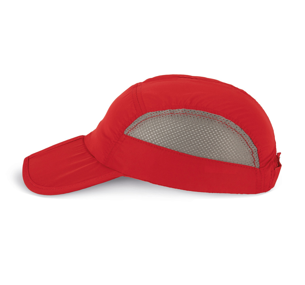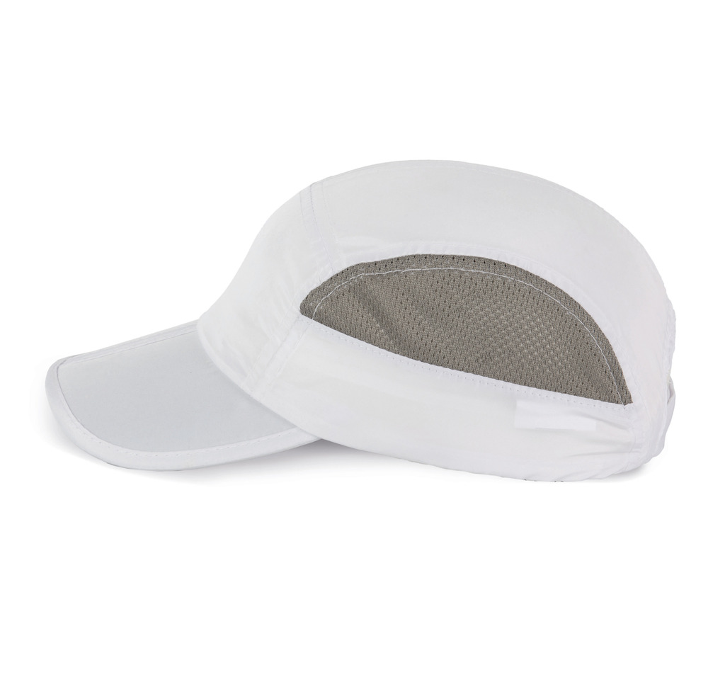 100% poliéster microfibra. Viseira dobrável. 7 painéis. Painéis com malha em contraste. Ajuste em velcro.