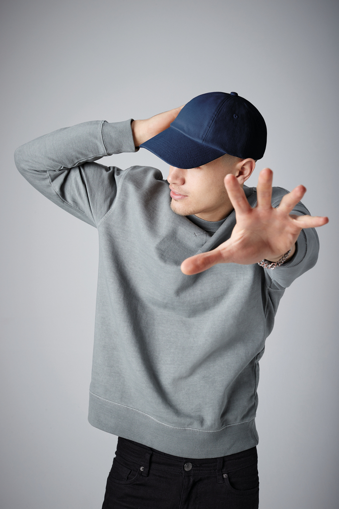 100% algodão drill escovado, modelo de 6 painéis, pala curva, presilha com fivela metálica e orifício, ilhós de ventilação.