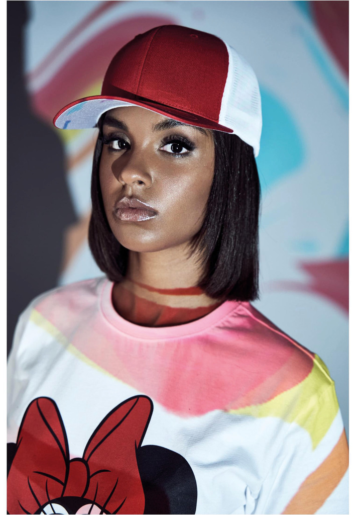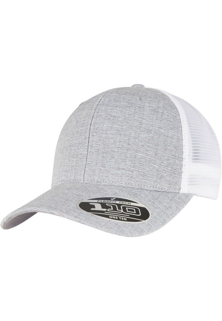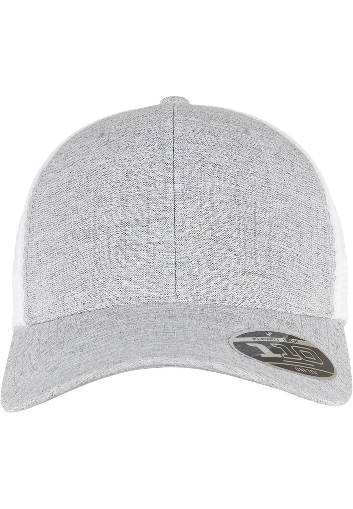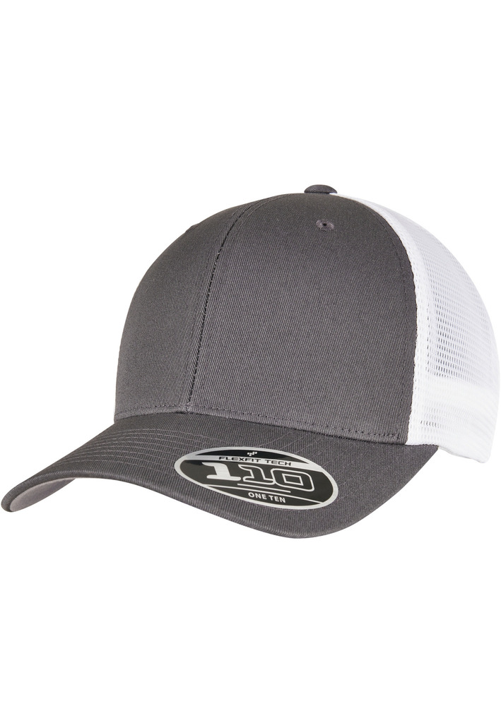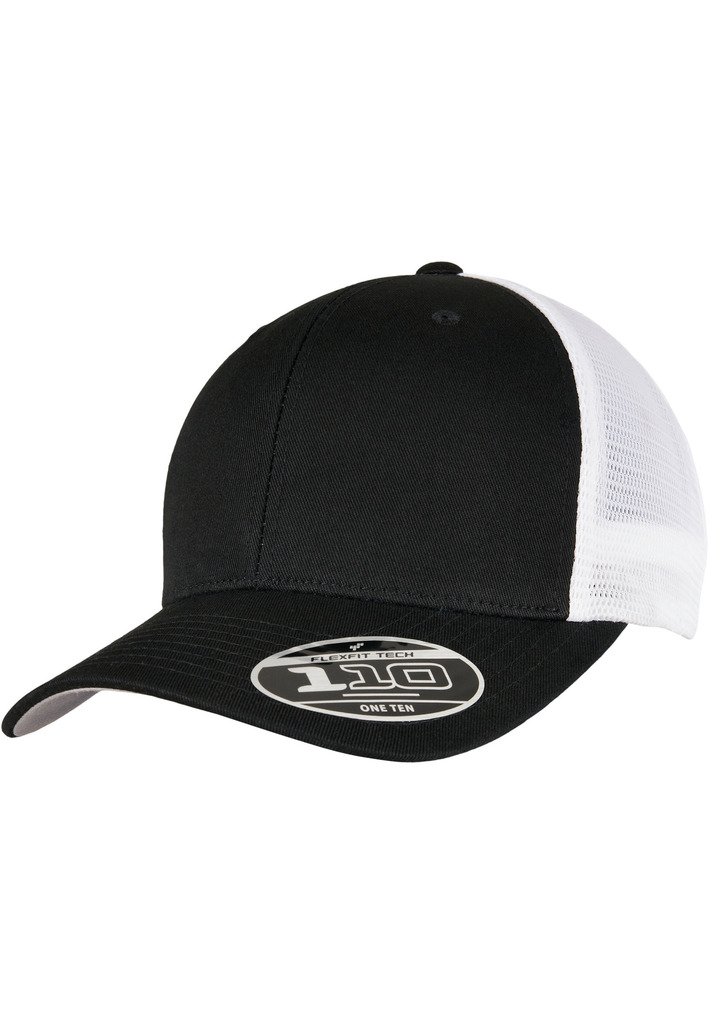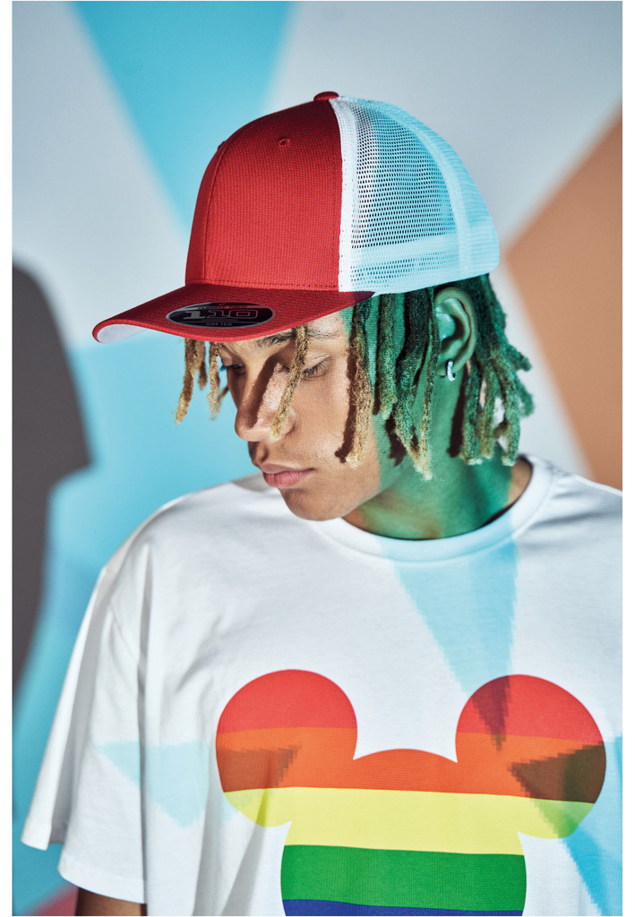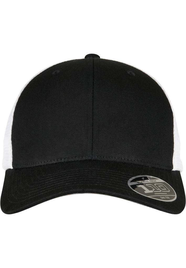 74% poliéster/26% algodão. Boné trucker bicolor com design intemporal. Parte da frente em algodão e parte de trás em malha de poliéster. Ajustável graças à tecnologia Flexfit e fecho snapback. Pala com 8 pespontos e a parte inferior da pala é Silver.