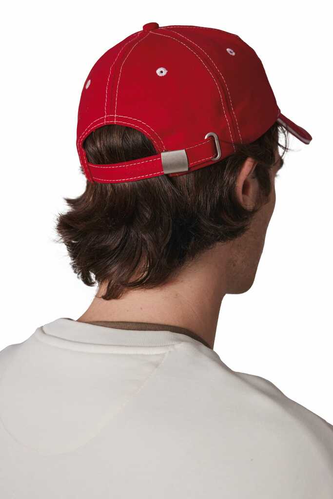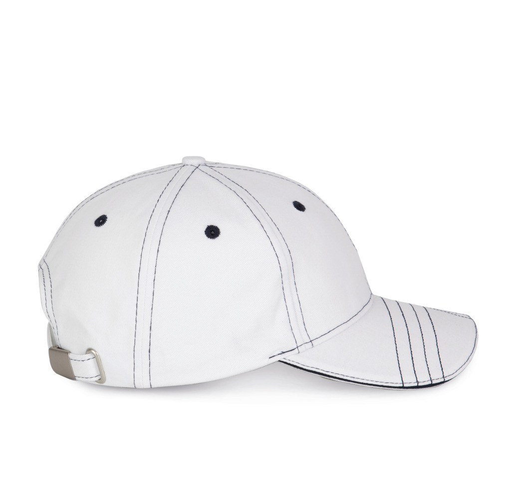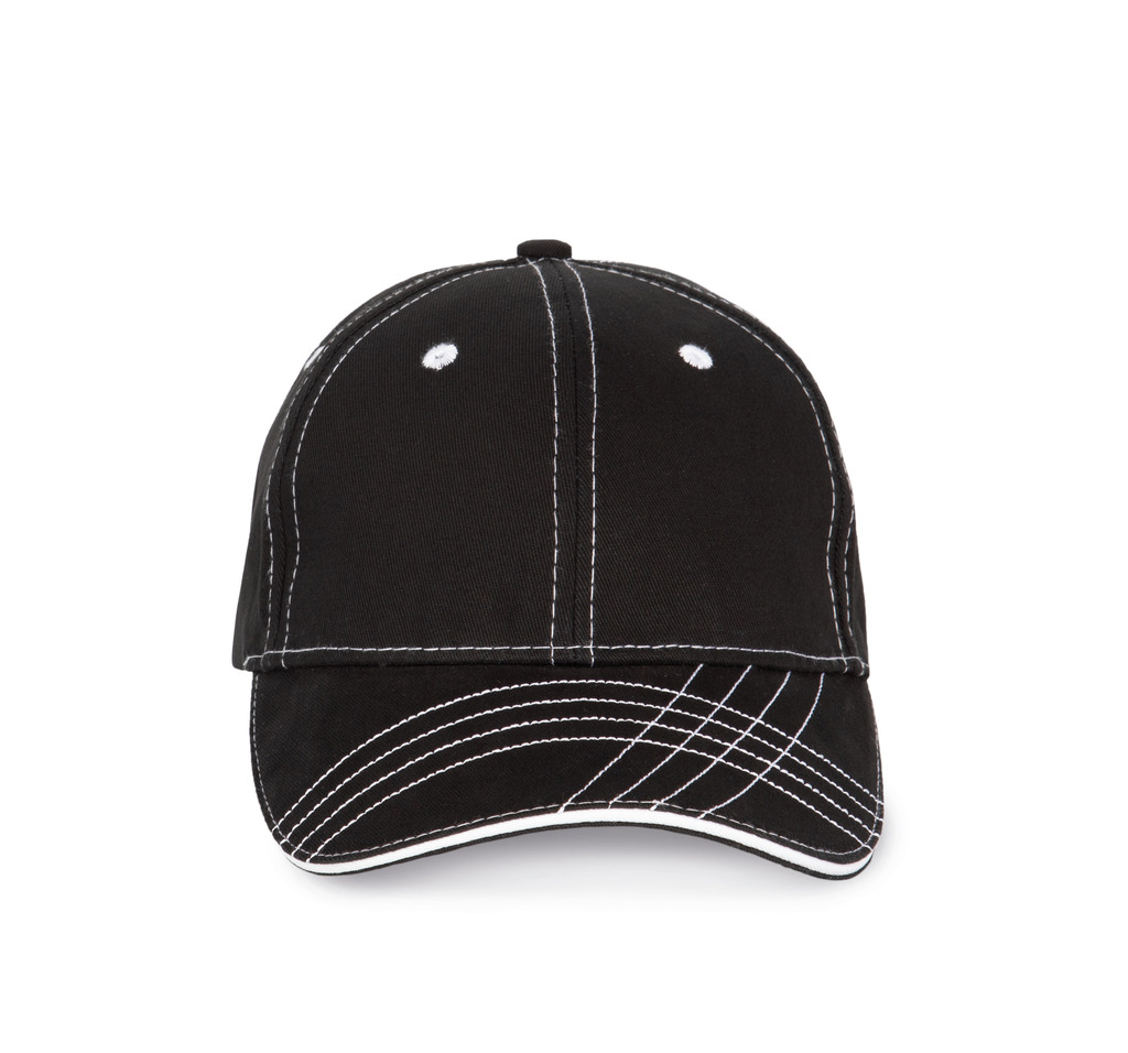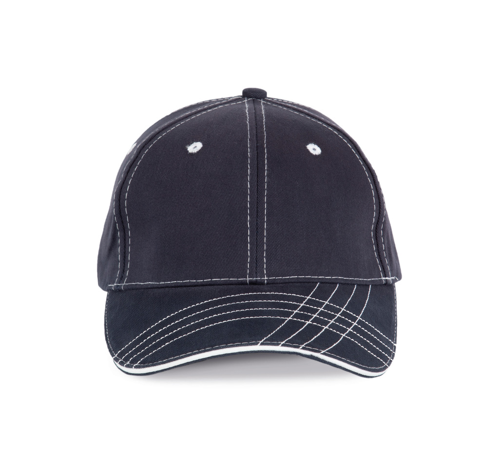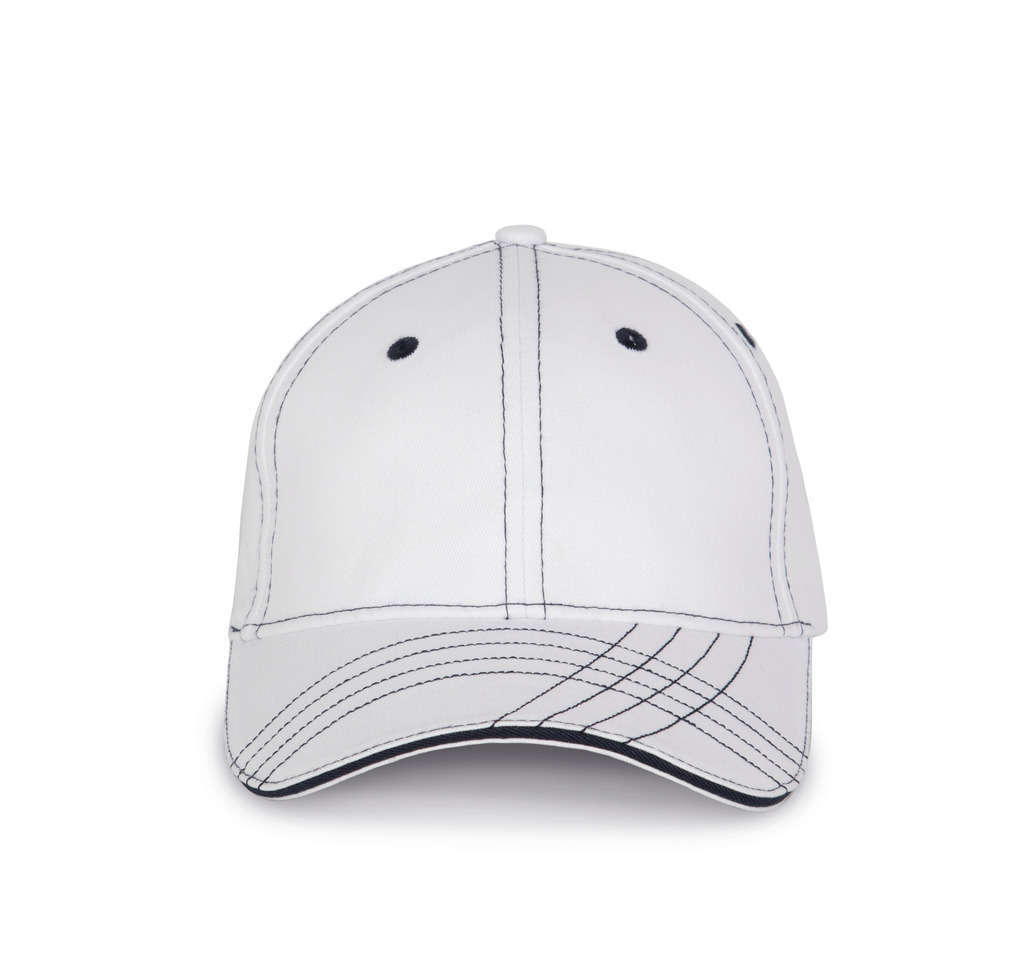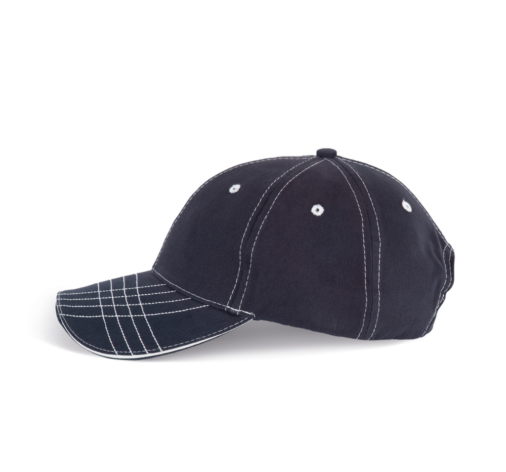 100% algodão aveludado. 6 painéis, painéis frontais laminados (reforçados). Costuras e orifÃcios em contraste. Banda em algodão para absorver o suor.