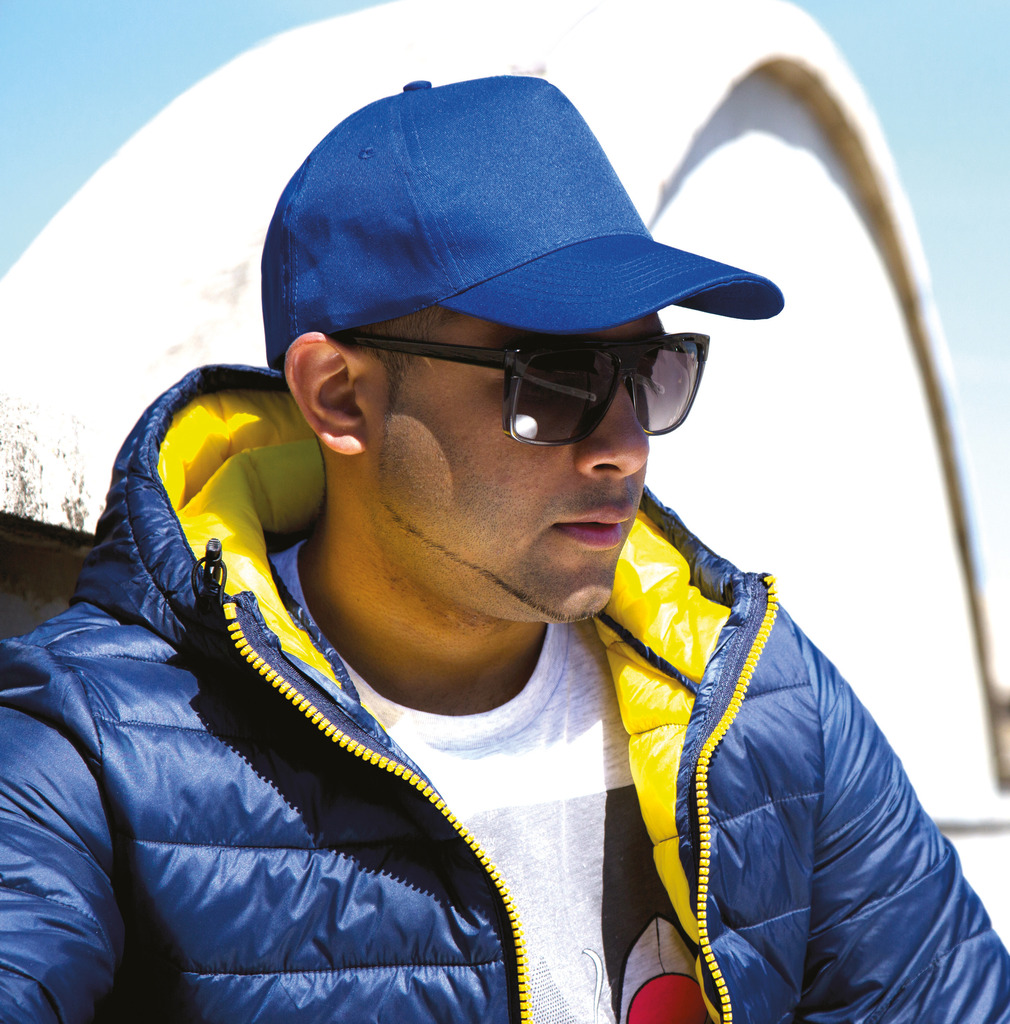 100% poliéster. Painel frontal sem costura com reforços amovÃveis. Viseira pré-formada com 6 pespontos. Ilhós de arejamento bordados. Ajuste em velcro. Viseira em PU reciclado. CompatÃvel com bordado ou transfer.