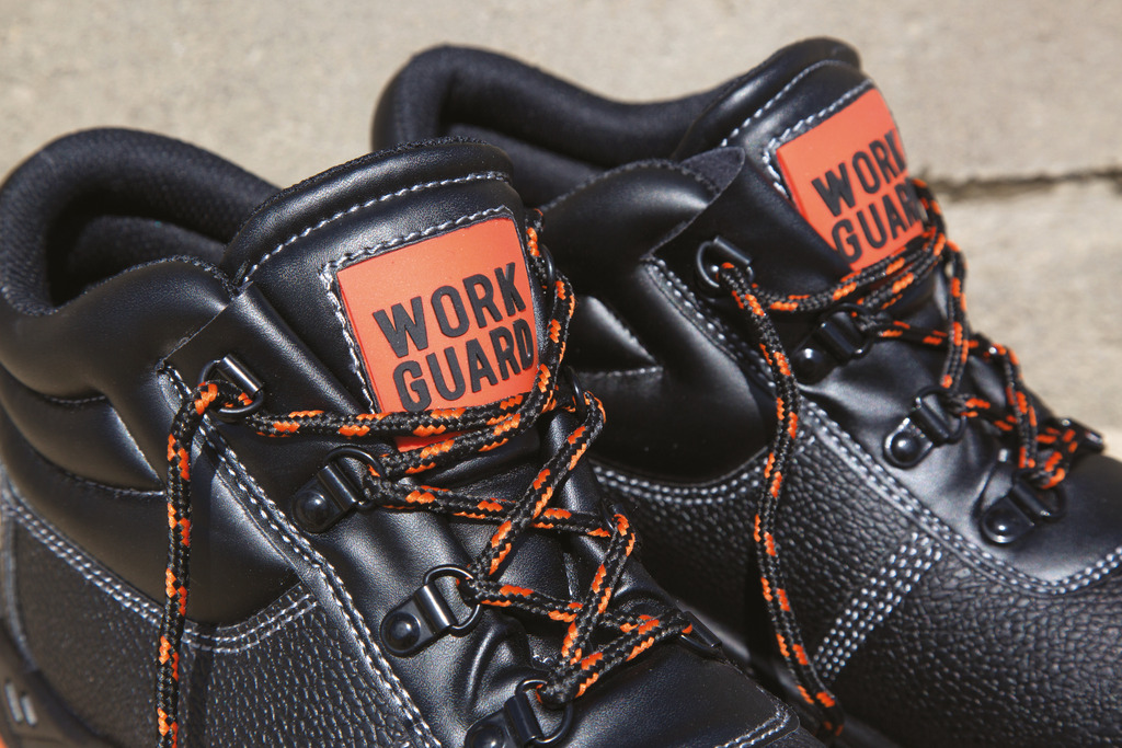 Botas de montanha com pala em couro estampado preto. Forro em rede preto e acolchoado à altura do maléolo. Ilhós pretos brilhantes e 3 conjuntos de atacadores fornecidos (laranja, preto e laranja/preto). Sola em PU dupla densidade, com biqueira e sola intermédia em aço. Tacão resistente a choques. Cano e pala forrados. Pele resistente à água. Sola resistente ao óleo. EN 20345:2011 S1P SRA.