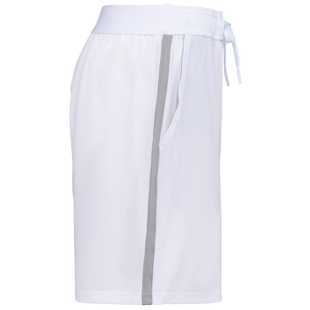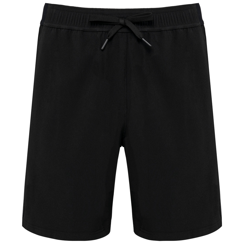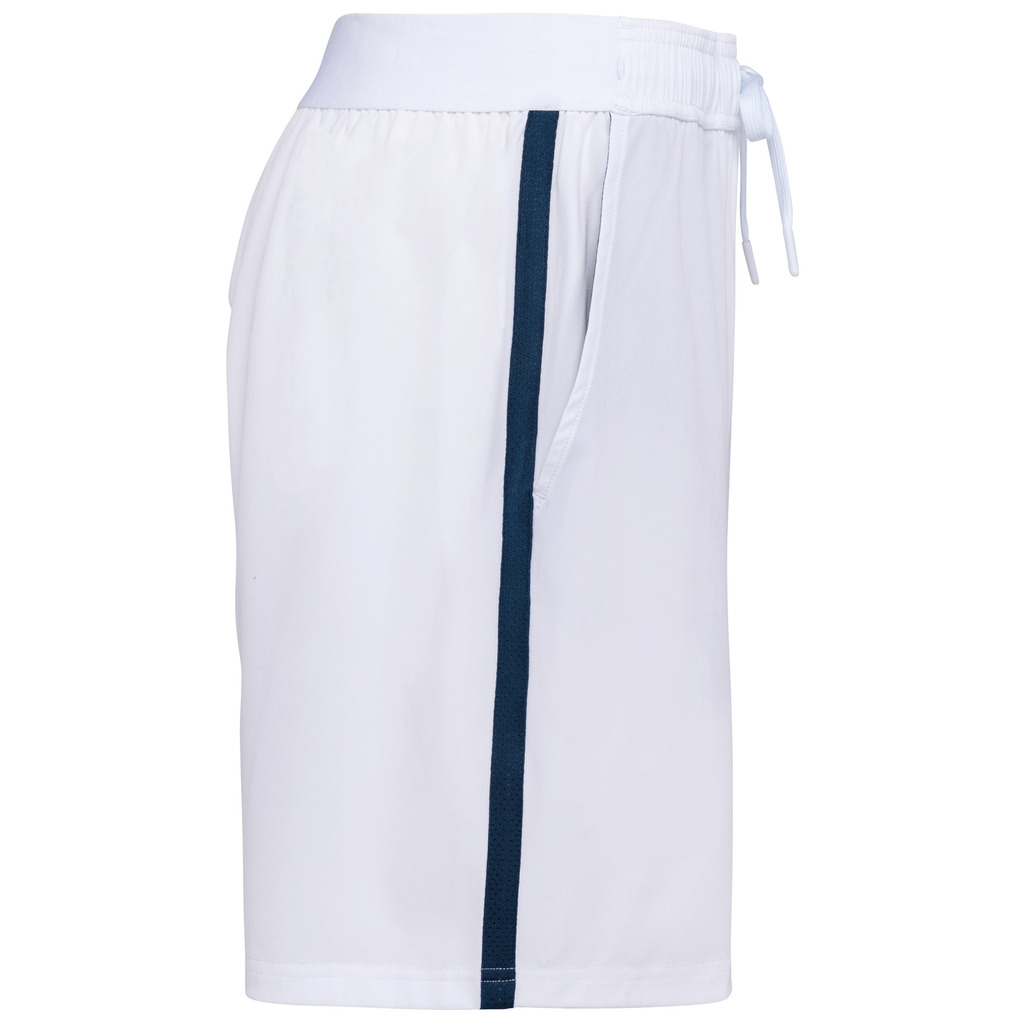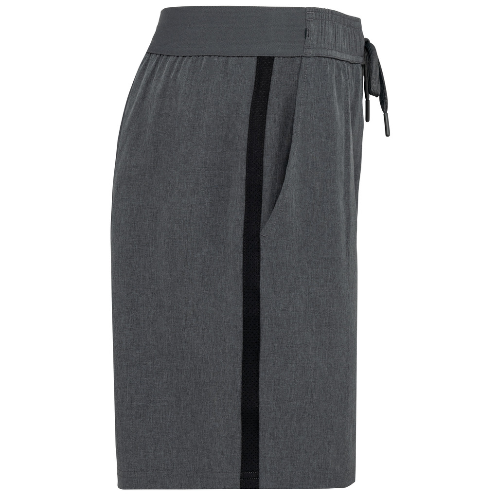 92% poliéster/8% elastano. Material ultraconfortável. 2 bolsos na frente. 2 bandas em rede em contraste aplicadas nas laterais. Cintura elástica com 2 partes com cordão de ajuste plano e ponta em plástico. Acabamento costura dupla na bainha. Etiqueta da marca Tear-away.