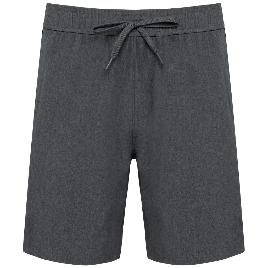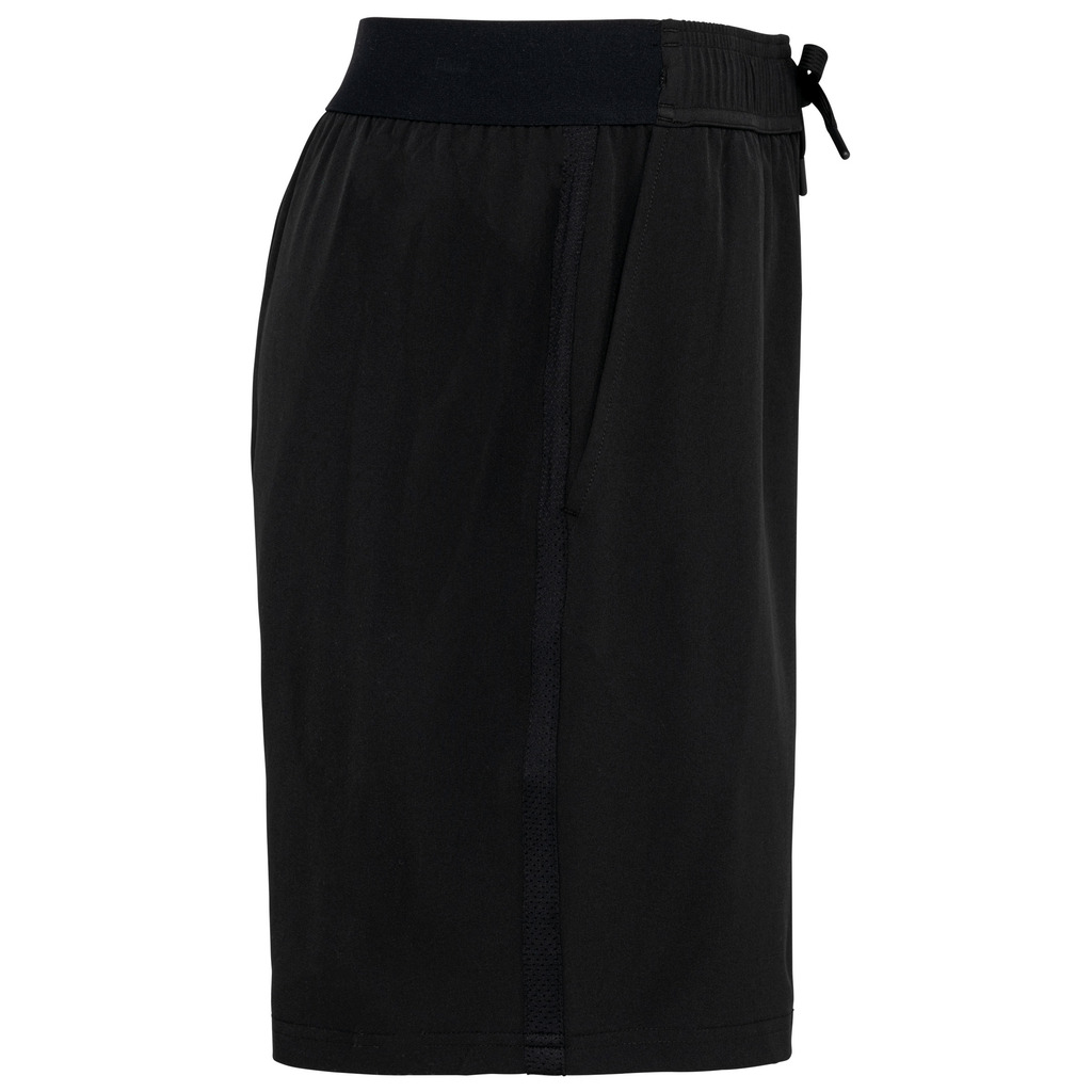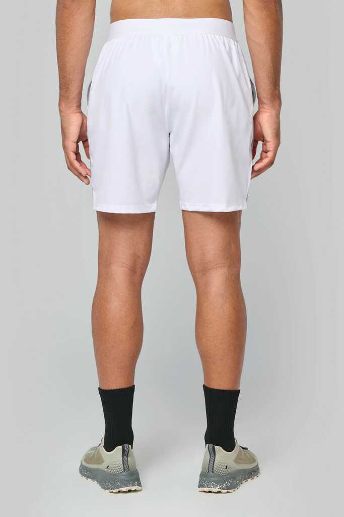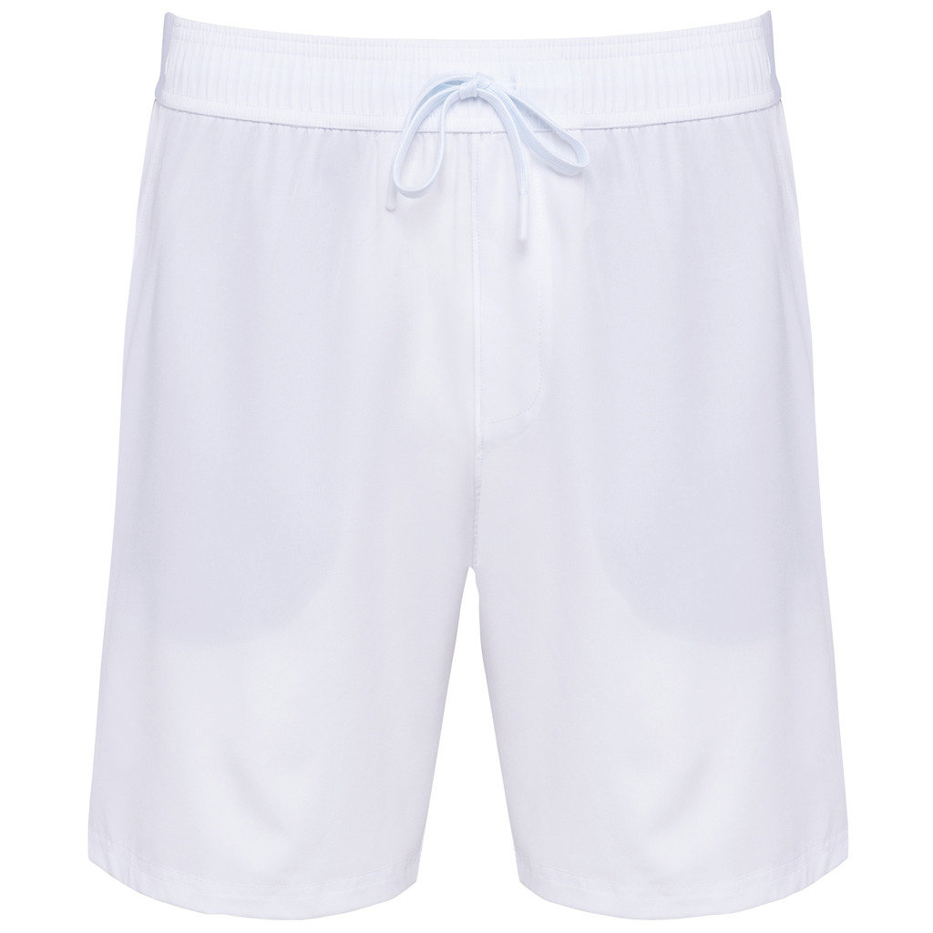 92% poliéster/8% elastano. Material ultraconfortável. 2 bolsos na frente. 2 bandas em rede em contraste aplicadas nas laterais. Cintura elástica com 2 partes com cordão de ajuste plano e ponta em plástico. Acabamento costura dupla na bainha. Etiqueta da marca Tear-away.