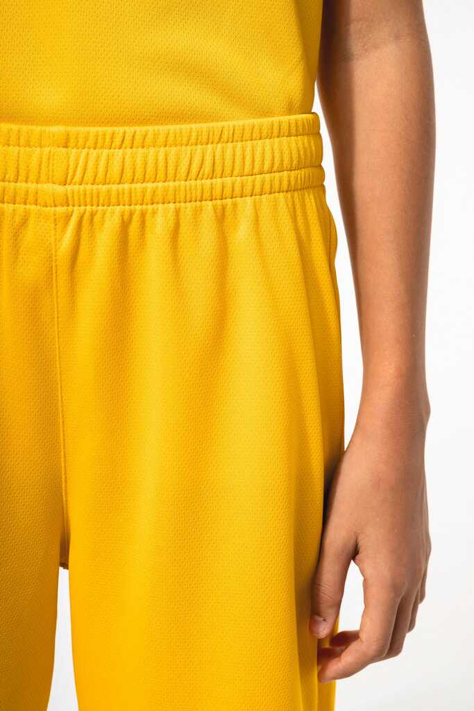 100% poliéster birdseye. Cintura elástica com cordão de ajuste plano. 2 aberturas laterais e rebordo tom sobre tom na bainha. Etiqueta de marca amovÃvel.