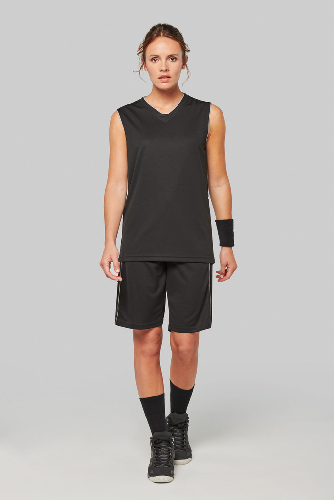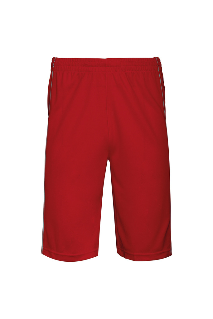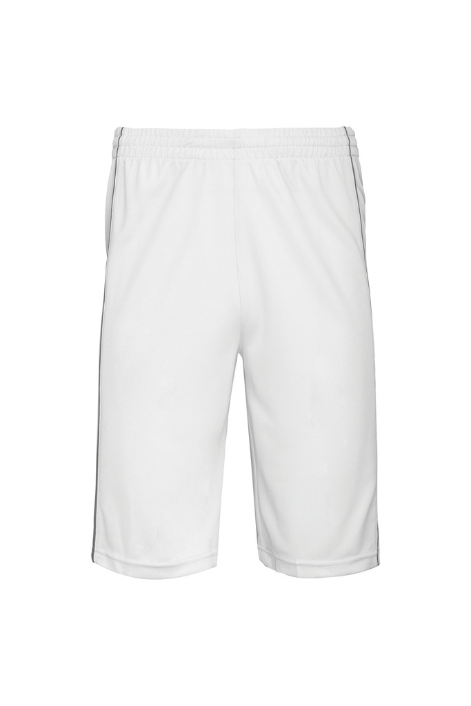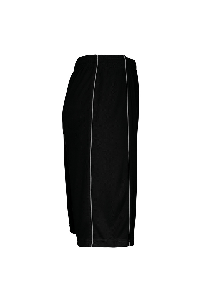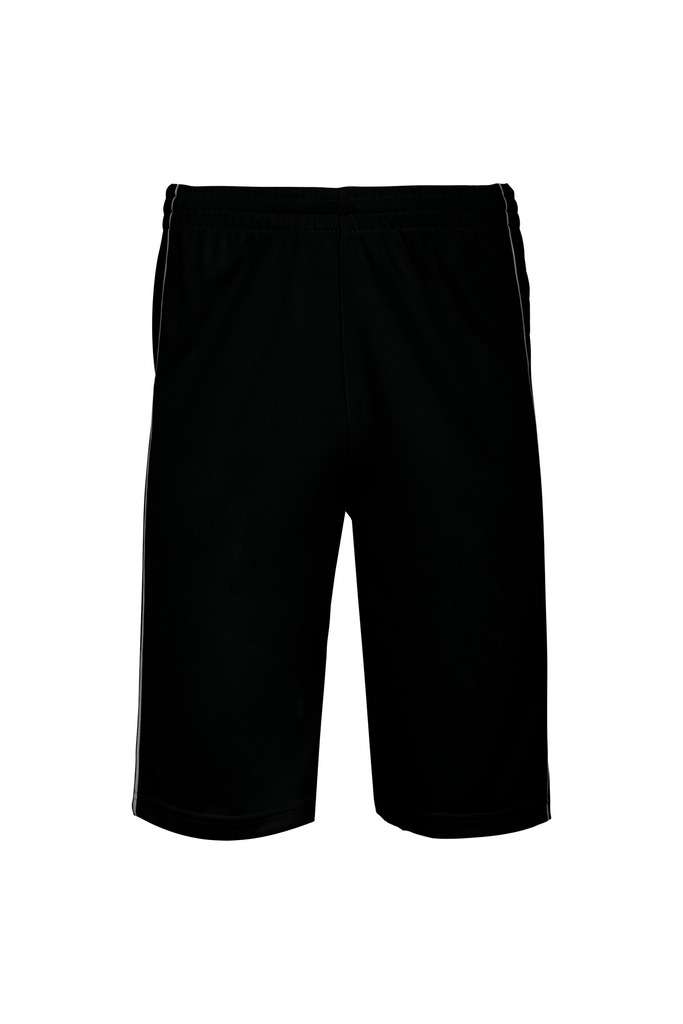 100% poliéster. Cintura elástica com cordão de ajuste. Recobrimento em contraste na lateral. Acabamento costura dupla na bainha.