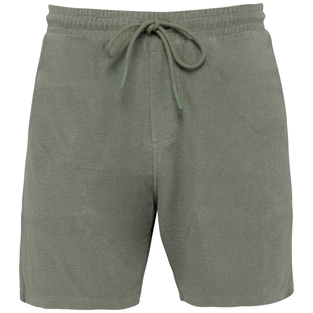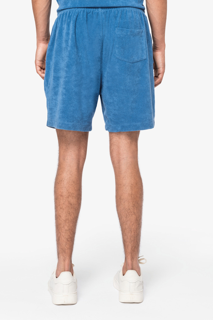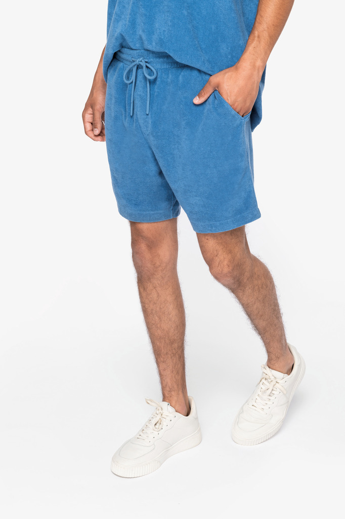 80% algodão biológico / 20% poliester reciclado pós-consumo. Fabricada em Portugal. Algodão penteado. Material turco. Banho de enzimas. Cintura elástica com cordões de ajuste. Falsa braguilha fantasia. Bolso traseiro.