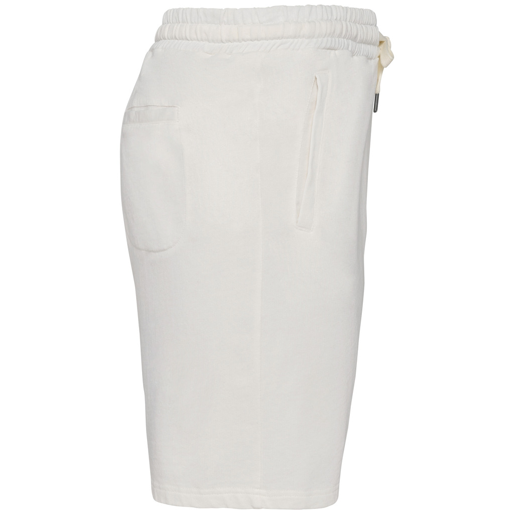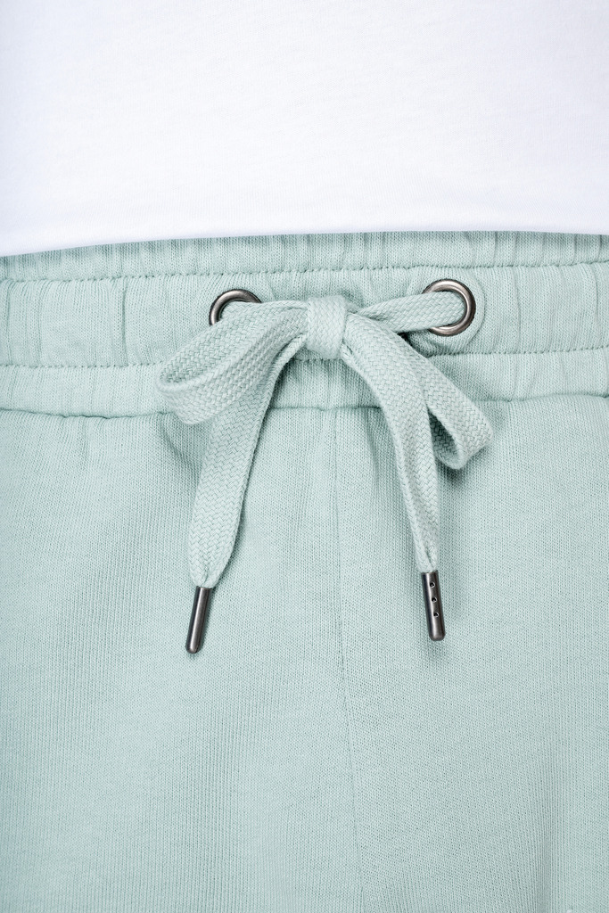 100% algodão biológico. Fabricado em Portugal. Algodão penteado ringspun. Interior não cardado (French Terry). Banho de enzimas. Dois bolsos laterais. Cintura elástica com cordão plano, ilhós e pontas em metal reciclado. Bolsos frontais e traseiros.