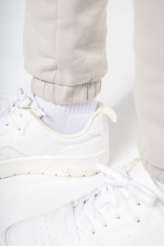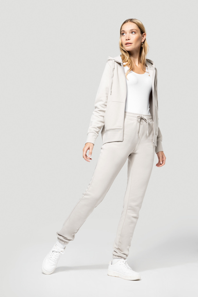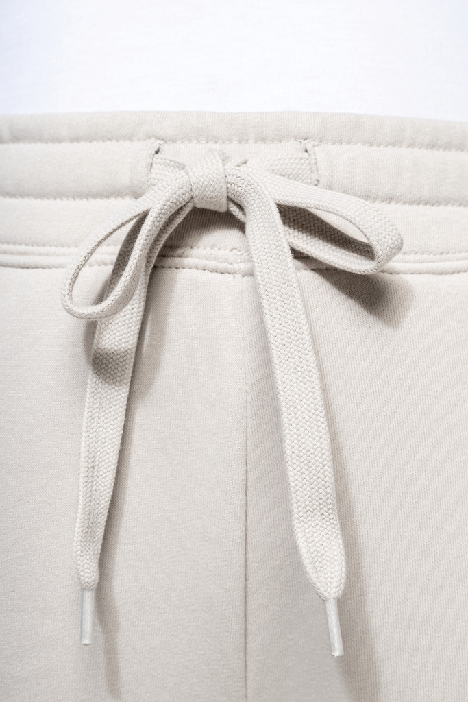 85% algodão biológico / 15% poliéster reciclado pós-consumo. Interior cardado com 3 camadas LSF (Low Shrinkage Fleece). Com banho de enzimas. Corte direito. 2 bolsos italianos nas laterais. Cintura elástica com cordão de ajuste plano. Acabamento da perna elástico. Sem etiqueta da marca, contendo apenas indicação do tamanho para facilitar a personalização.