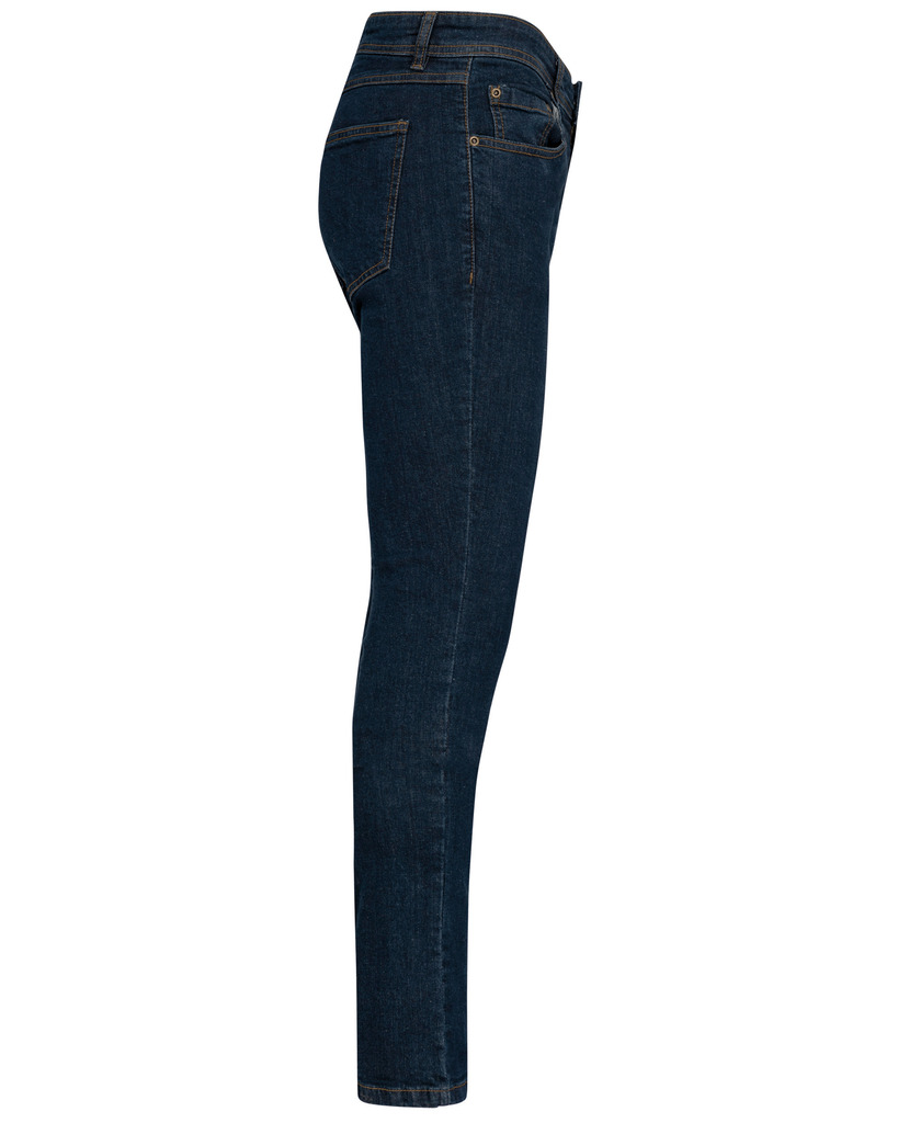 99% algodão denim / 1% elastano. 11,50 oz. Fecho com botão metálico. 2 bolsos frontais e um bolso para cartão. 2 bolsos traseiros planos. Costuras em contraste. Cintura com presilhas. Corte moderno confortável. Estas calças de ganga foram submetidas a um tratamento especial e apresentam um aspecto propositadamente envelhecido. Ao longo das lavagens, a cor vai-se alterando. Este processo de fabrico implica variações de cor de produto para produto e torna cada peça única. Sem etiqueta de marca, apenas com indicação de tamanho para facilitar a personalização.