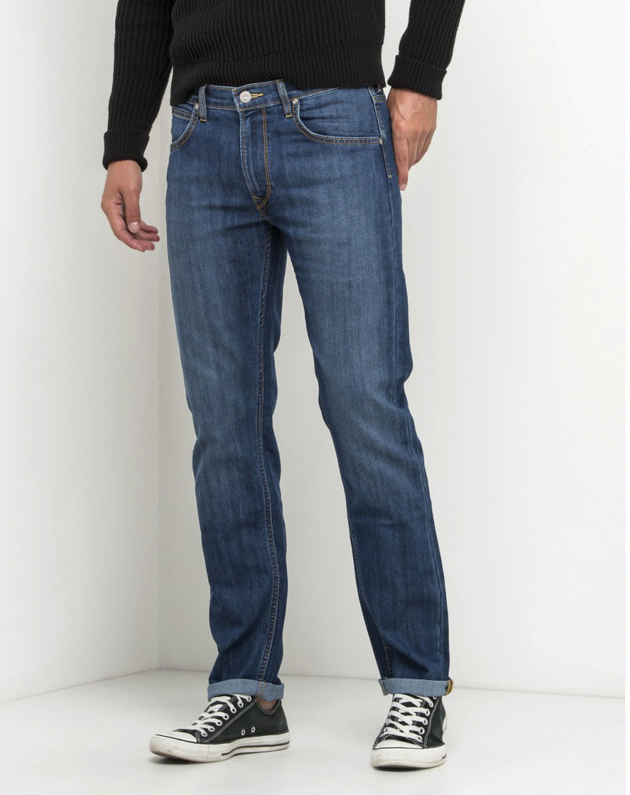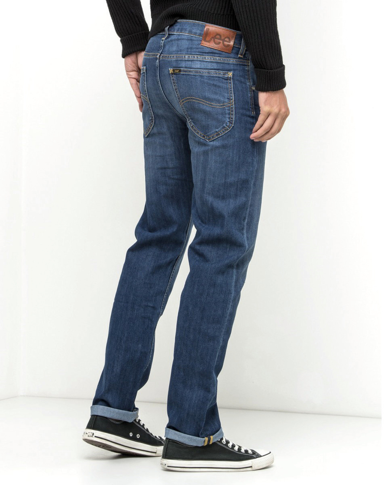 As calças de ganga Daren são o modelo Lee® mais apreciado de corte justo, cintura semibaixa, pernas slim e braguilha com fecho contemporâneo, perfeitas para todas as ocasiões. Cor True Blue 10 1/4 oz – 70% algodão/30% elastomultiéster: ganga de um azul vivo e intenso, trabalhada à mão para um acabamento listrado autêntico. Botão e ilhós de cor prateada envelhecida, pespontos Lee® de cor amarela (os autênticos), e etiqueta traseira com a marca Lee® em couro de cor conhaque.