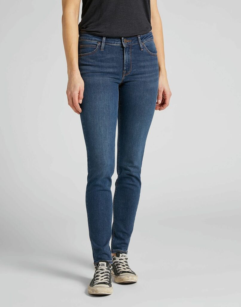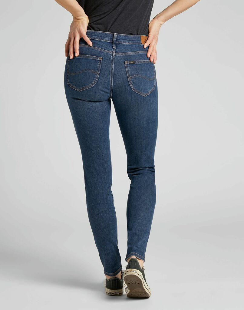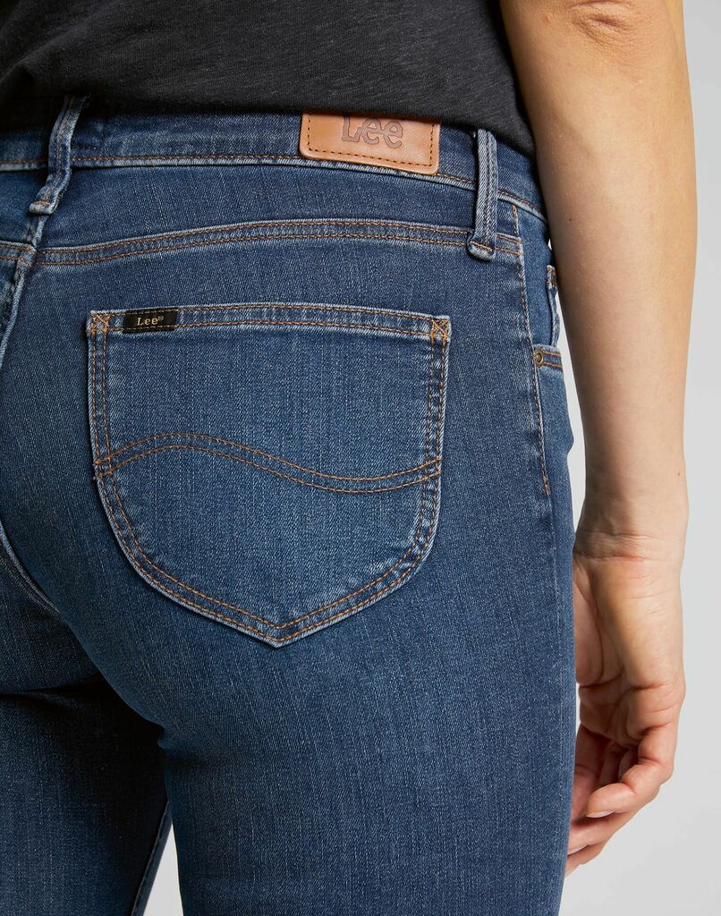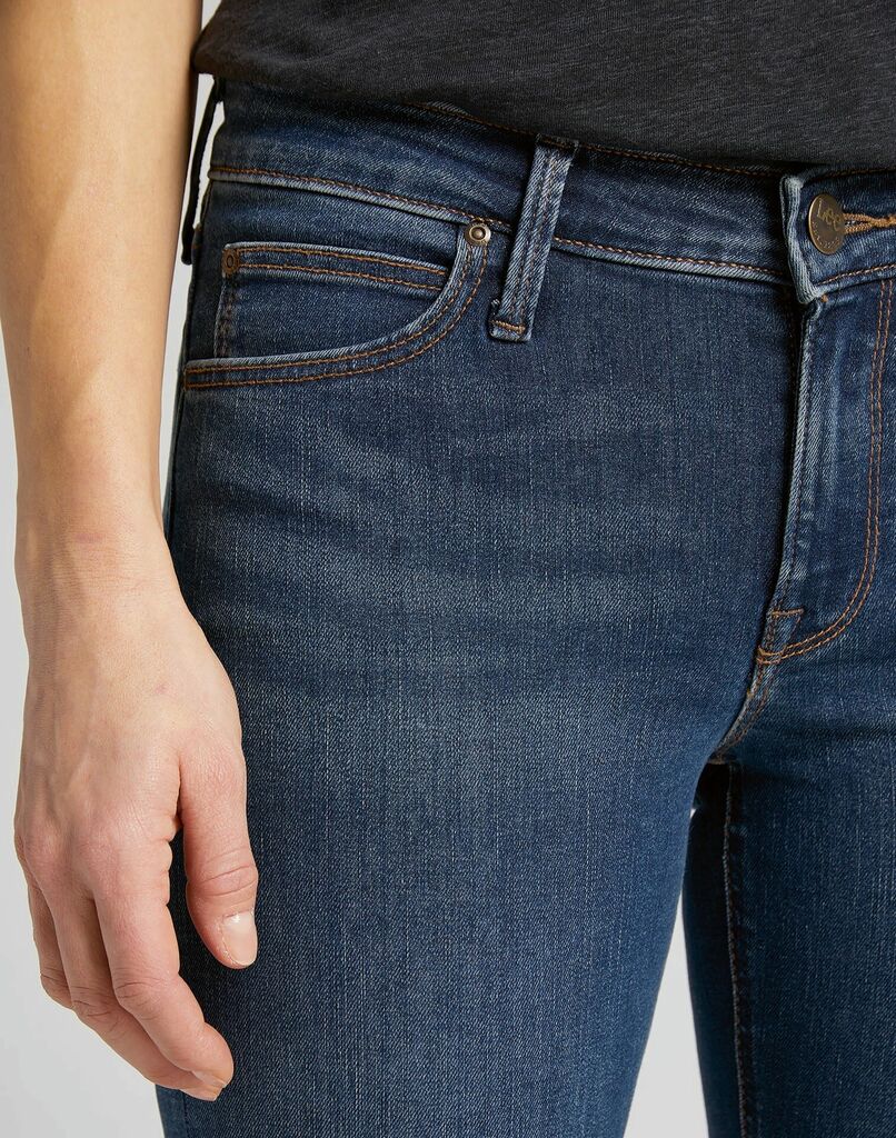 As calças de ganga Lee® Scarlett com 5 bolsos, skinny, de cintura regular, com corte justo. High Blue colourway 11 3/4 oz – 70.6% algodão/27.6% poliéster / 1.8% elastano: Ganga bastante leve e com stretch com efeitos pré lavados. Ilhós em latão envelhecido, patch em couro em castanho claro. Pespontos em contraste. Cor Rinse 11 1/2 oz – 76 % algodão / 22% poliéster / 2% elastano: a nova cor é incrivelmente “clean” e fica a matar na versão super stretch. Botões e ilhós em latão envelhecido, pespontos em contraste, patch em pele (estilo vintage com logo Lee 90’s). Contém partes não têxteis de origem animal.