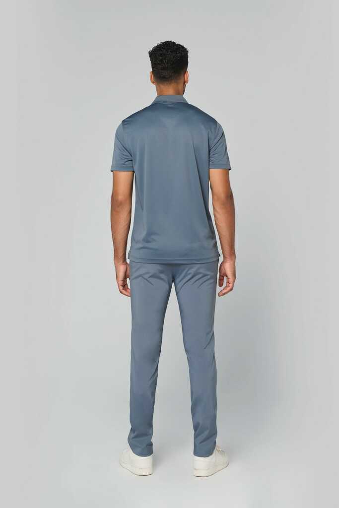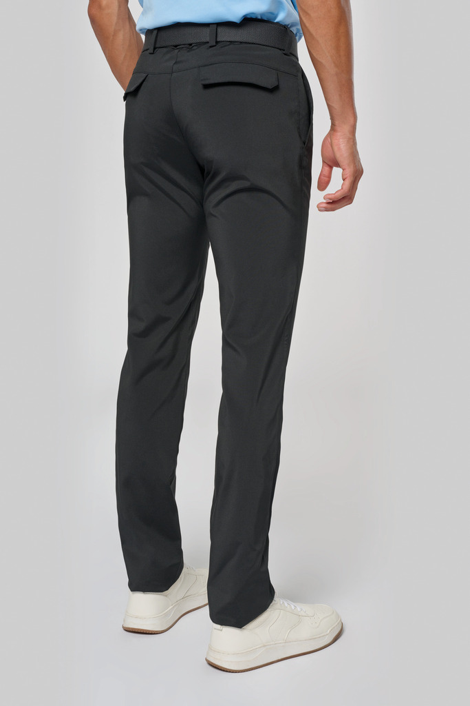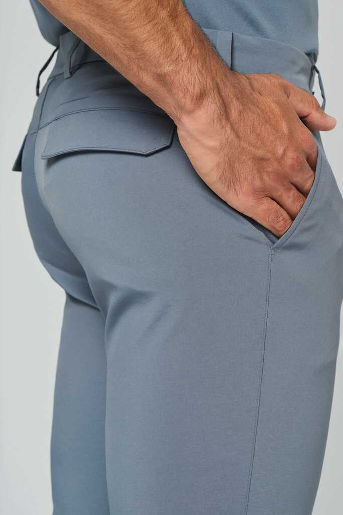 96% poliéster/4% elastano. Tecido macio e repelente à água para conforto extra. Corte justo. Presilhas para cinto. 2 bolsos laterias e 2 bolsos traseiros com pala.