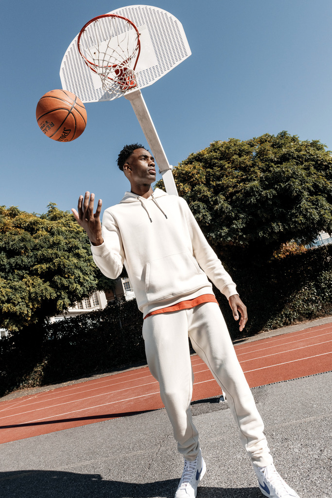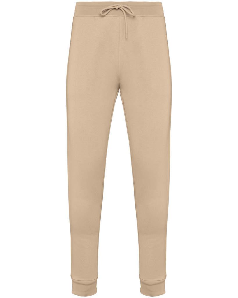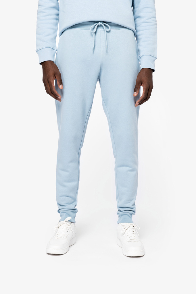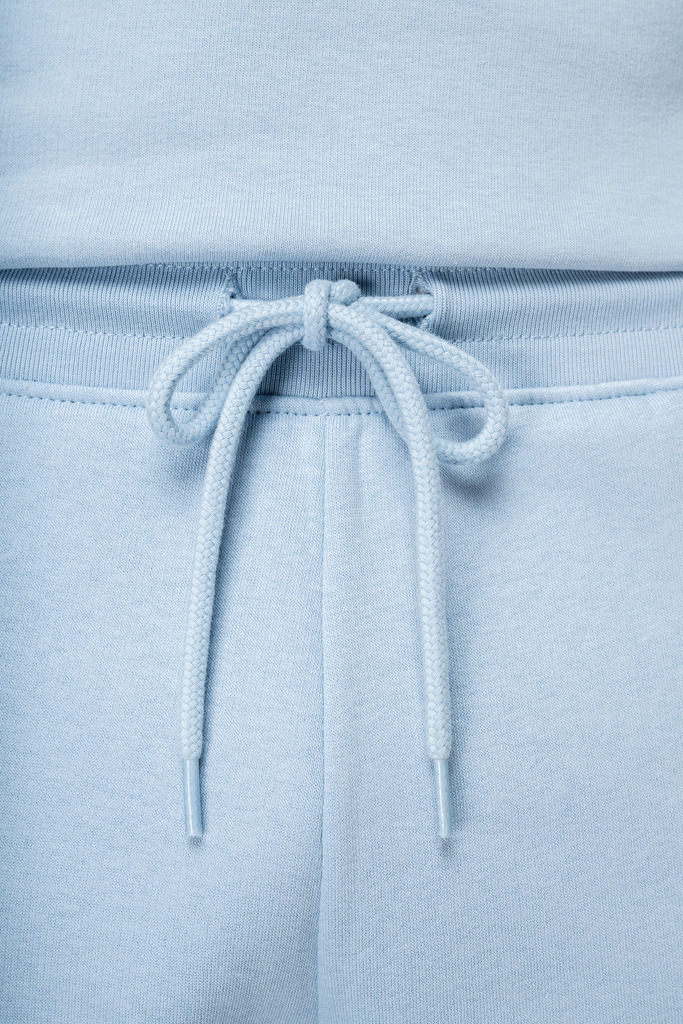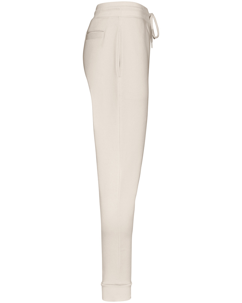 85% algodão biológico / 15% poliéster reciclado pós-consumo. Algodão penteado ringspun. Banho de enzimas. Interior cardado 3 fios LSF (Low Shrinkage Fleece). Cintura em malha rib 1 x 1 com cordão de ajuste e ilhó para passar o cordão. Bolsos laterais e um bolso traseiro. Malha rib 1 x 1 no acabamento da perna. A cor Raw Natural distingue-se pelo seu aspecto bruto visualmente texturado, salpicada de partÃculas finas visÃveis a olho nu.