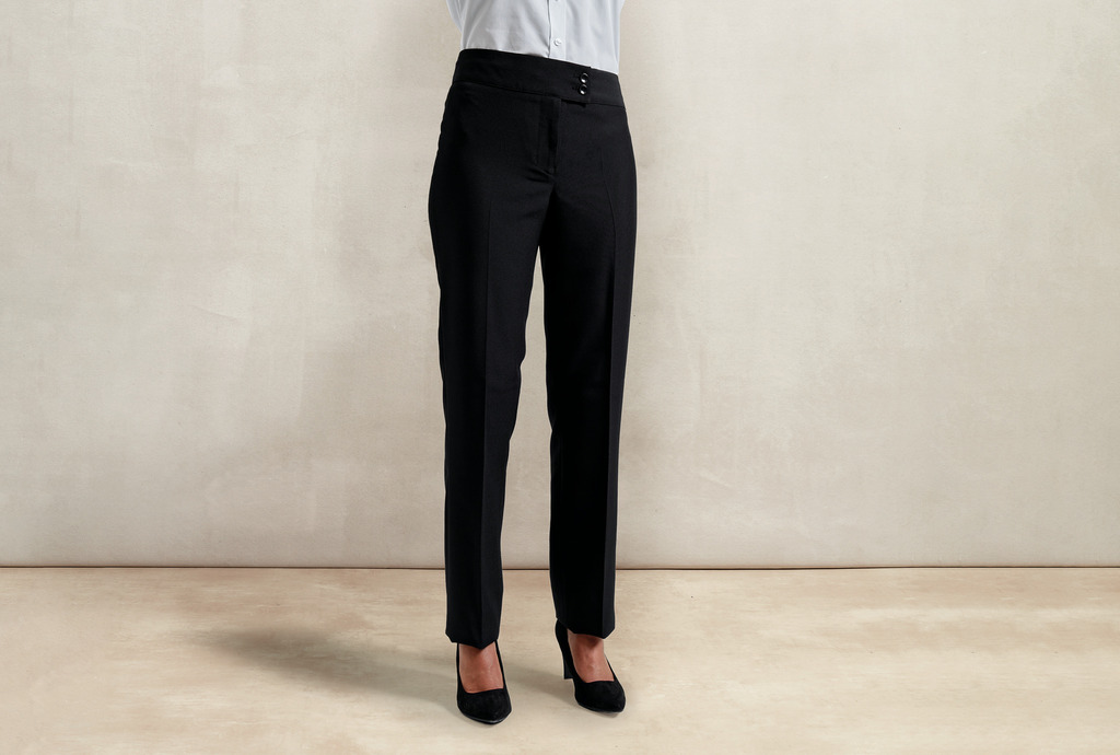 100% poliéster. Calças direitas ideais para salões de estética ou spa sem bolsos para um corte prático. Com fecho. Faixa larga na cintura e 2 botões. Corte direito.