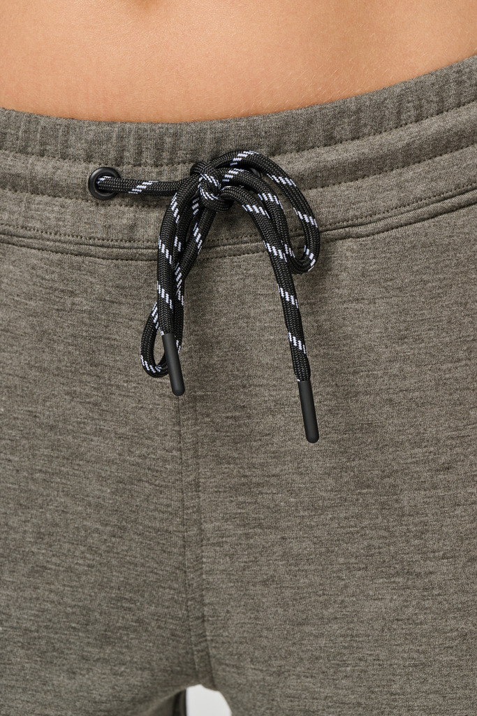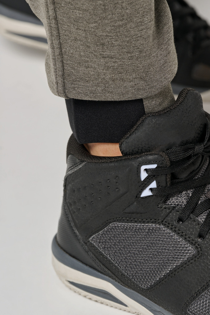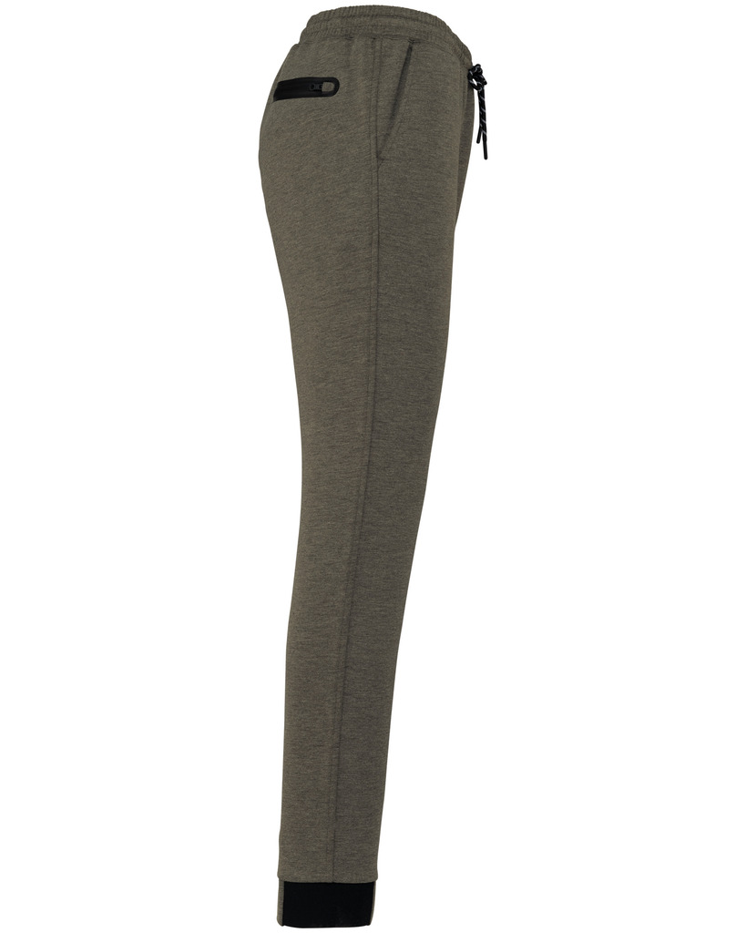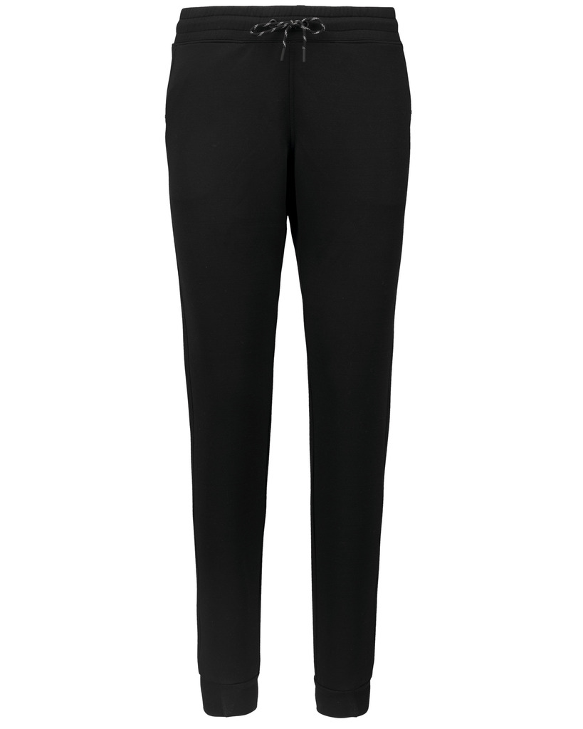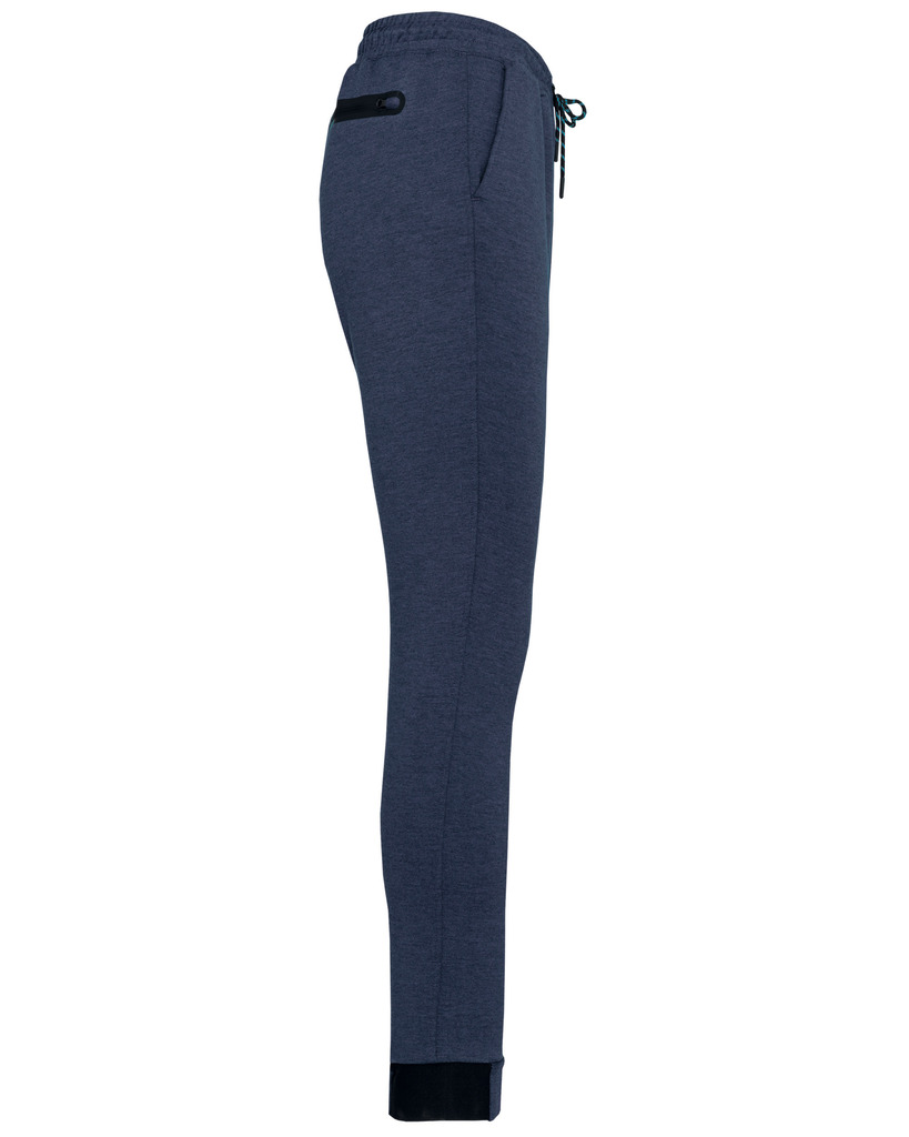 94% poliéster/6% elastano (79% poliéster/15% viscose/6% elastano nas cores mescladas). Material ultraconfortável. Cós elástico com cordão de ajuste bicolor e acabamento em plástico. 2 bolsos com forro em malha jersey 65% poliéster/35% viscose e 1 bolso traseiro com fecho e acabamento termocolado. Corte moderno e ajustado. Acabamento justo na zona dos tornozelos com detalhe elástico em contraste Black em todas as cores e Dark Grey na Ash Heather.