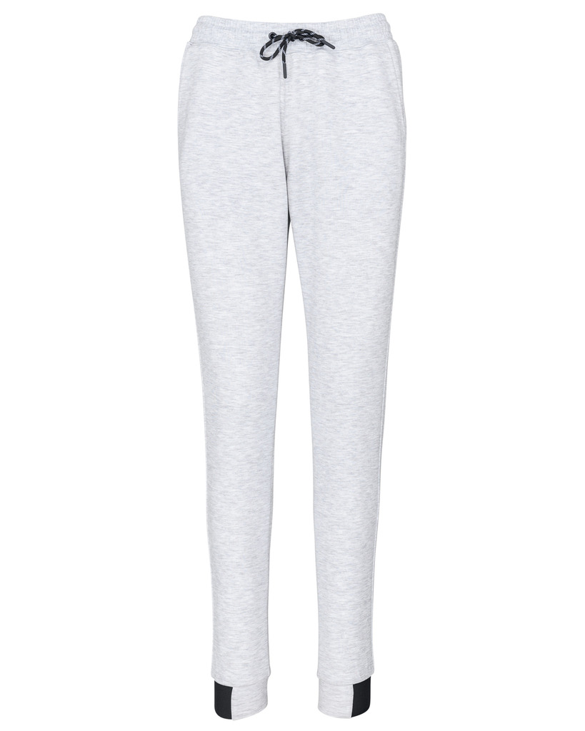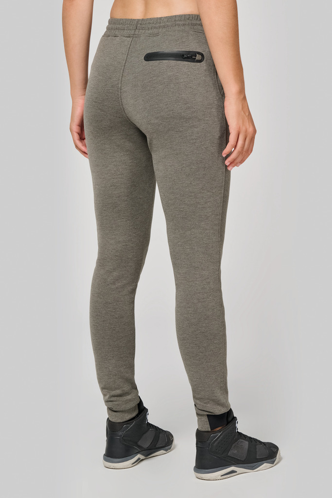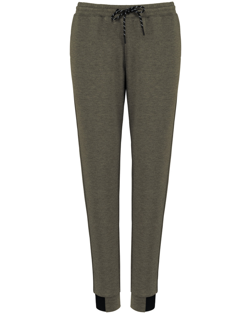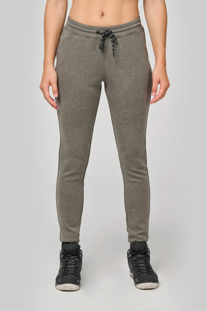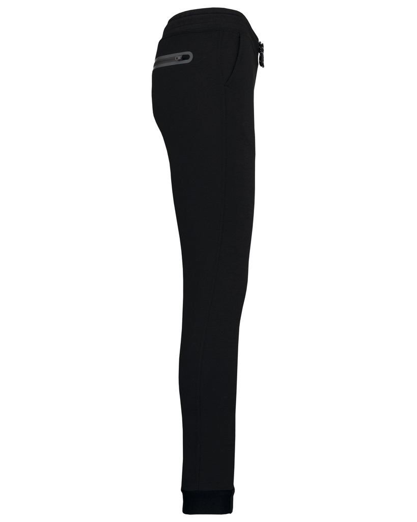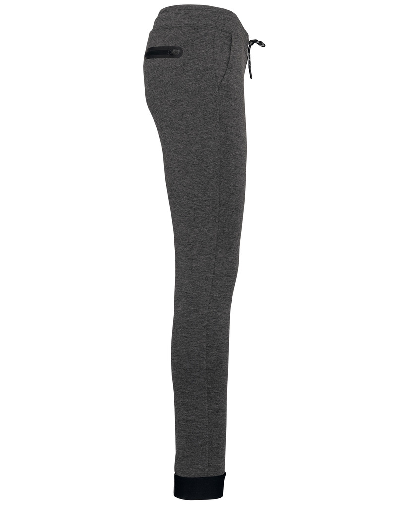 94% poliéster/6% elastano (79% poliéster/15% viscose/6% elastano nas cores mescladas). Material ultraconfortável. Cós elástico com cordão de ajuste bicolor e acabamento em plástico. 2 bolsos com forro em malha jersey 65% poliéster/35% viscose e 1 bolso traseiro com fecho e acabamento termocolado. Corte moderno e ajustado. Acabamento justo na zona dos tornozelos com detalhe elástico em contraste Black em todas as cores e Dark Grey na Ash Heather.