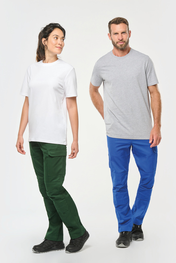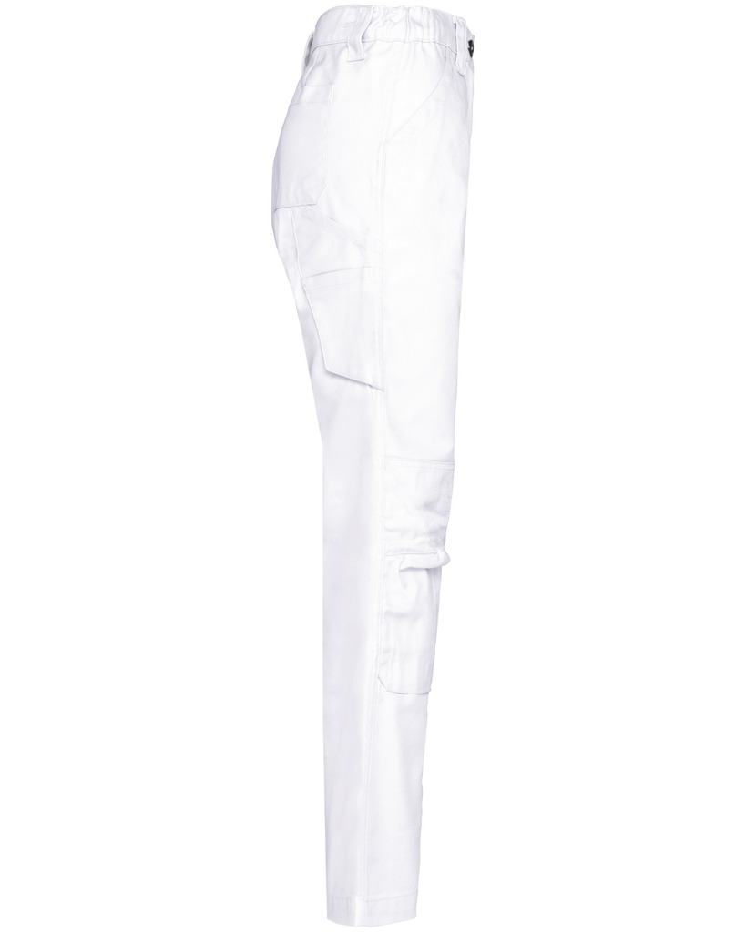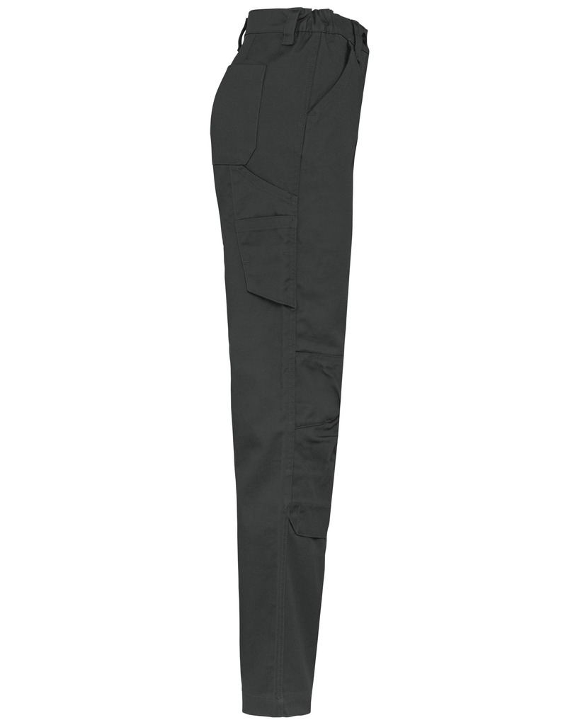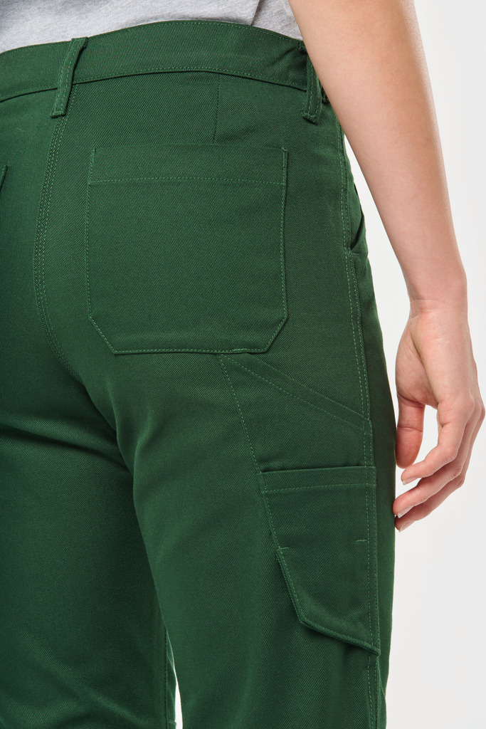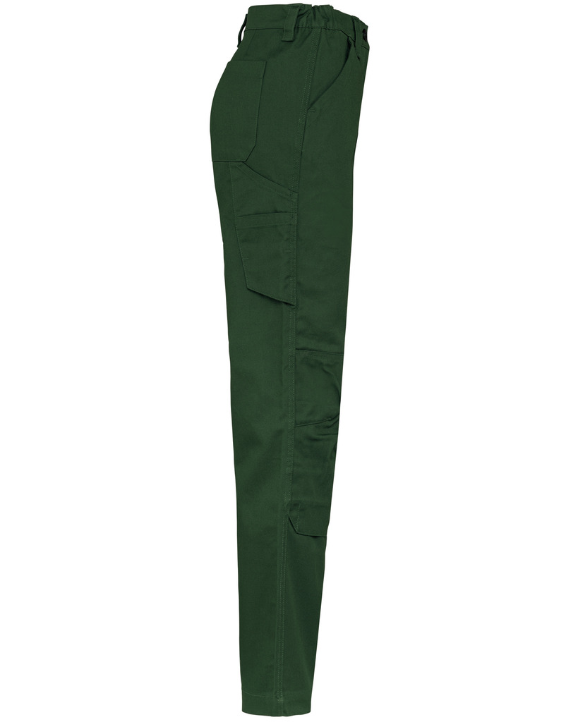 60% algodão/40% poliéster. Tecido sarja. Lavagem a 60 °C. Corte direito. 2 bolsos frontais (forro no tecido principal). 1 bolso no lado esquerdo com pala com velcro, 1 bolso no lado direito para ferramentas aberto, 2 bolsos traseiros planos, 2 bolsos joelheiras tom sobre tom com velcro e pala para segurar e adaptar as joelheiras. Cintura parcialmente elástica com presilhas. Fecho e botão. Botão plástico. Fole entrepernas para mais resistência e perfeita liberdade de movimentos. Pesponto duplo nas costuras laterais, costura tripla na traseira e na frente. Joelheiras não incluÃdas. Pesponto entrepernas. Acabamento da perna com bainha. Etiqueta de marca amovÃvel.