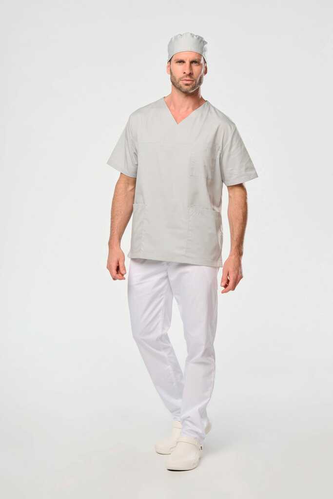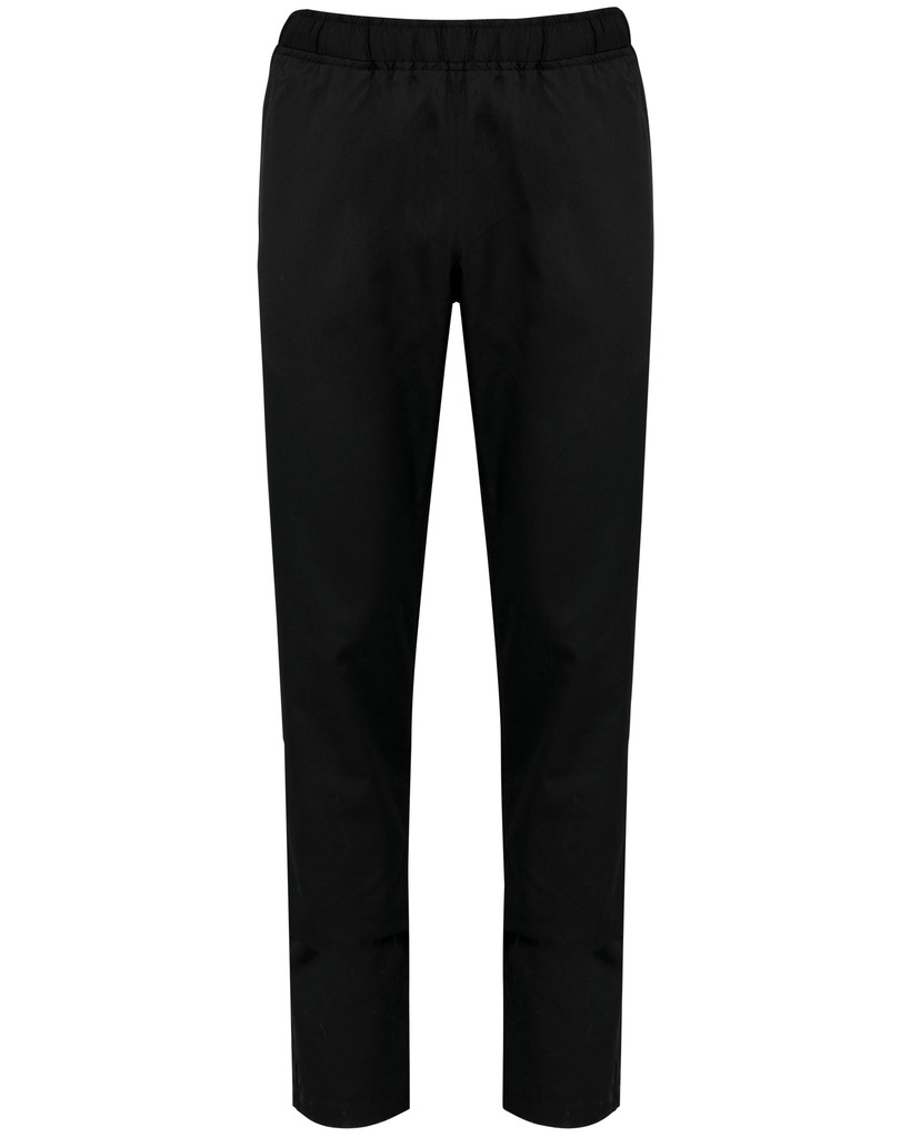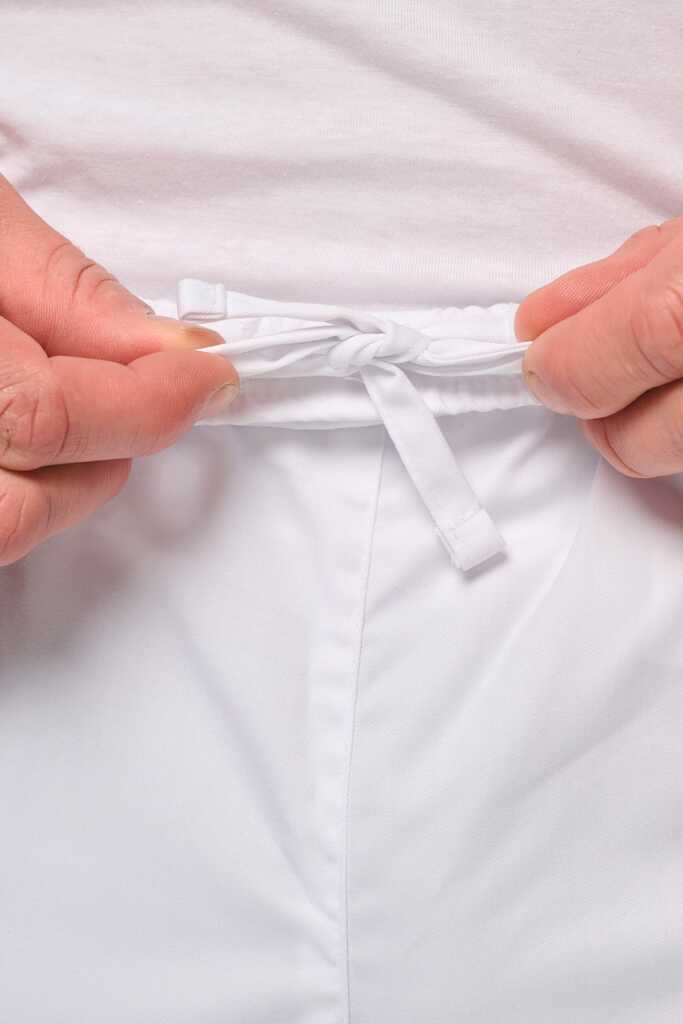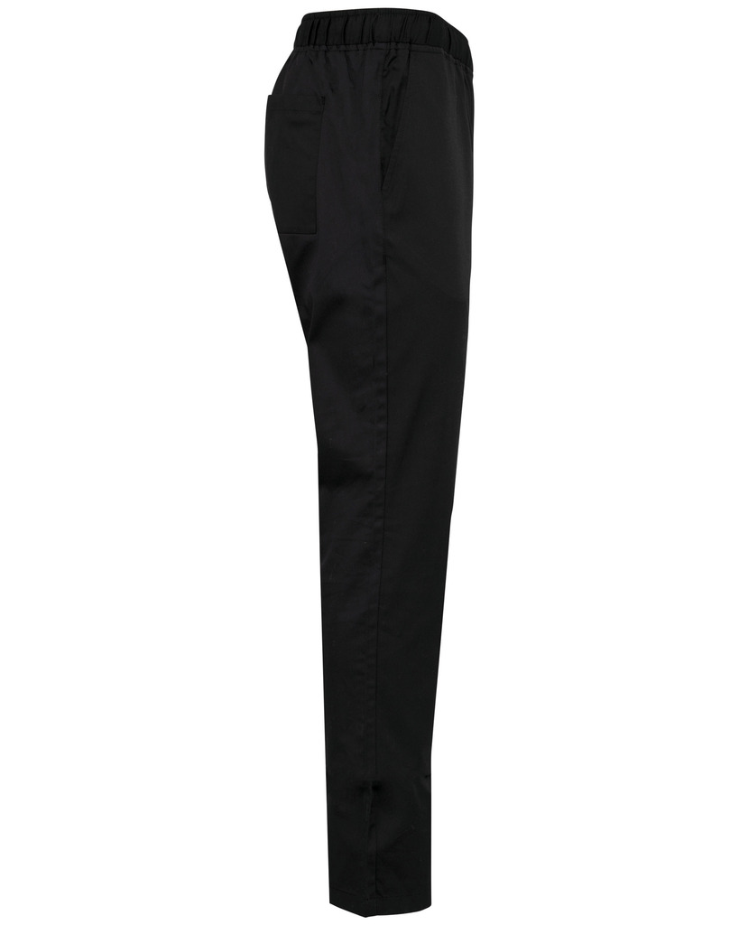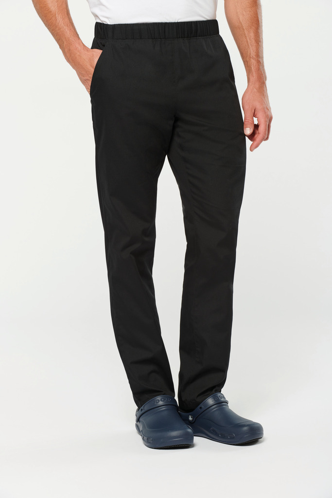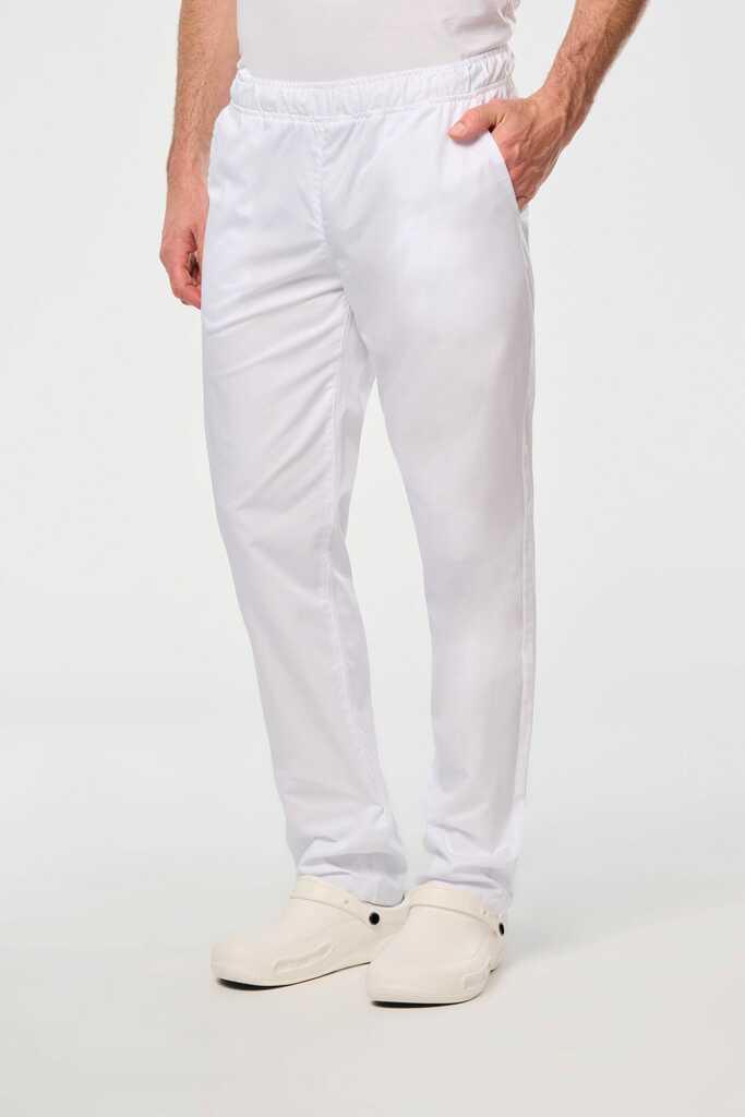 65% poliéster/35% algodão. Tecido sarja de poliéster e algodão. Lavagem a 60°C. 2 bolsos italianos nas laterais + 1 bolso traseiro com reforços. Cintura elástica com cordão de ajuste no interior. Etiqueta da marca Tear-away.