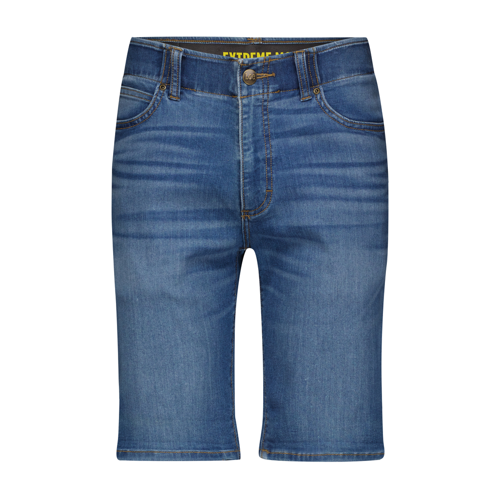 53% algodão/23% poliéster/23% viscose/1% elastano. Calções de ganga confeccionados com o tecido Extreme Motion para leveza, conforto e elasticidade. Acabamento com efeito natural de pré lavado. Pespontos em contraste e botão em bronze.
