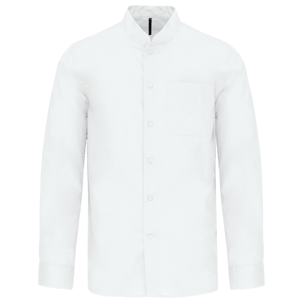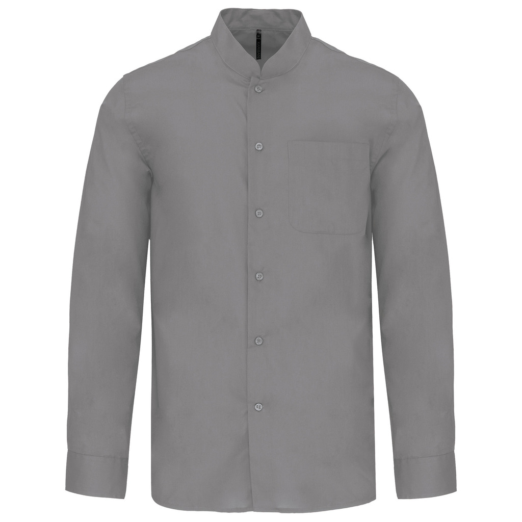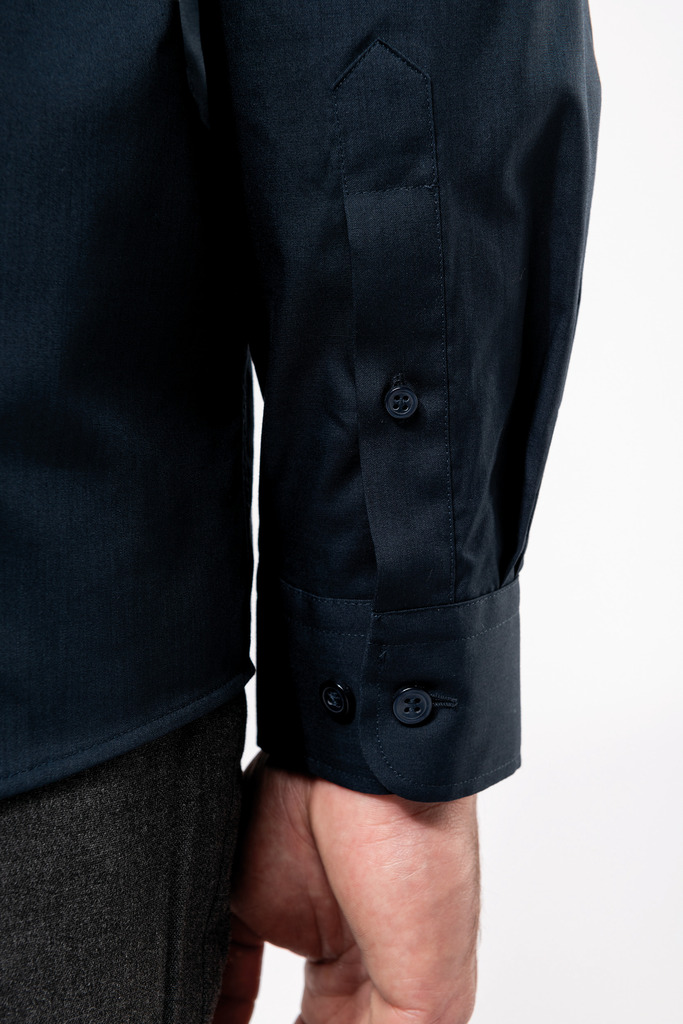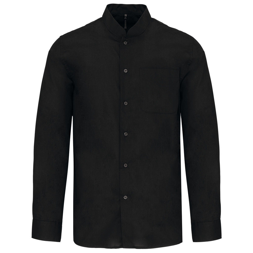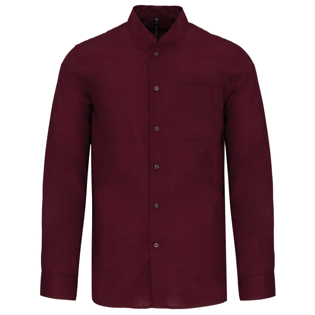 65% Poliéster / 35% Algodão Popeline. Tecido tratamento fácil. Colarinho tipo padre. Botões à cor. Bolso peito esquerdo com cantos arredondados. Punhos ajustáveis. 2 botões extra. Corte justo.