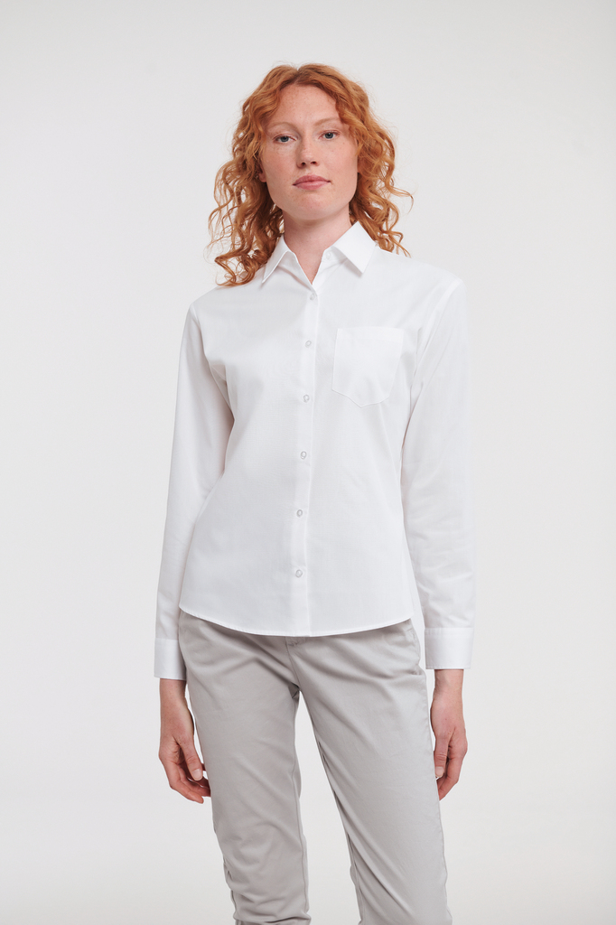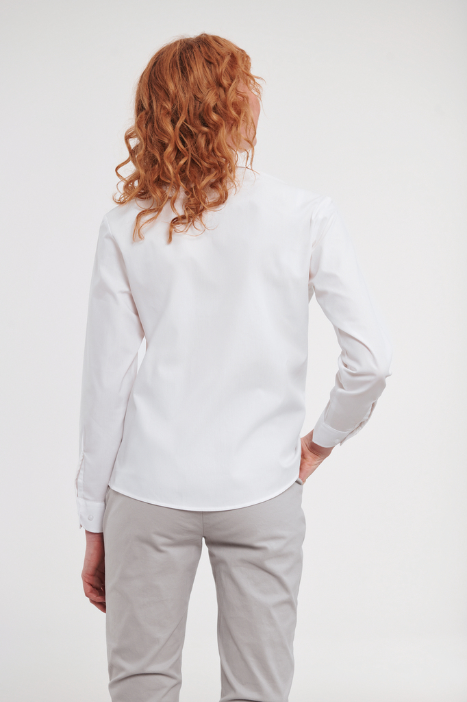 Camisa em 100% algodão popeline. Tratamento fácil. Carcela com 7 botões à cor. Bolso no peito esquerdo com acabamento em V. Colarinho clássico com um único botão. Punhos ajustáveis arredondados com 2 botões.