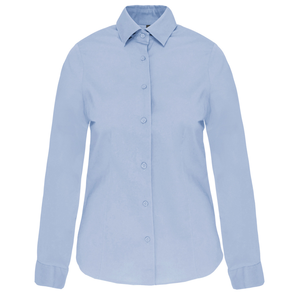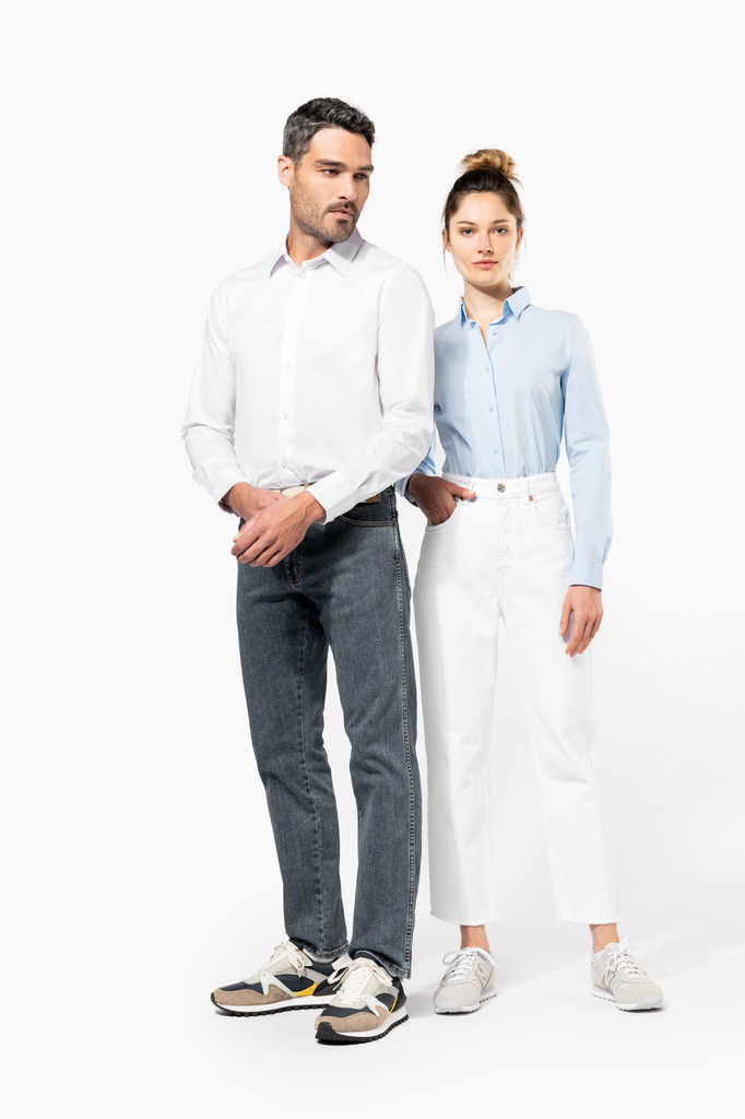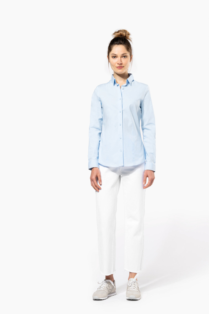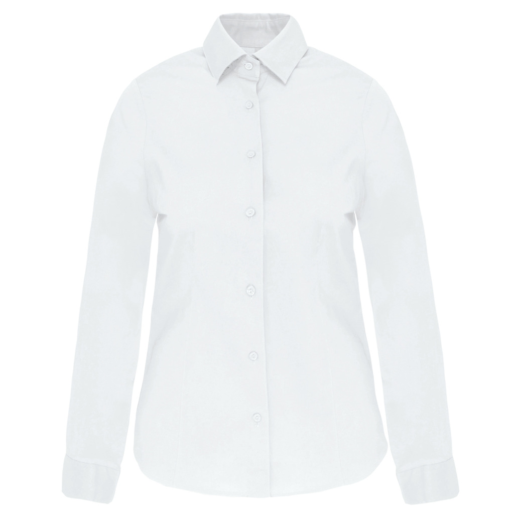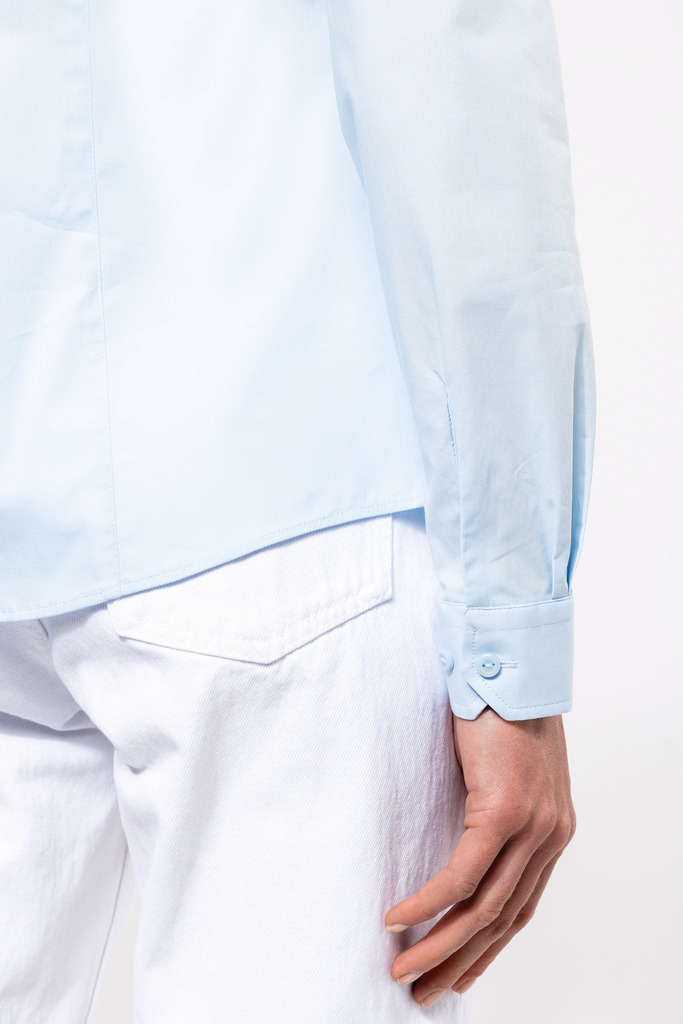 97% Algodão / 3% Elastano. Corte cintado. Colarinho pequeno. Botões à cor. Botão extra. Bainha arredondada.