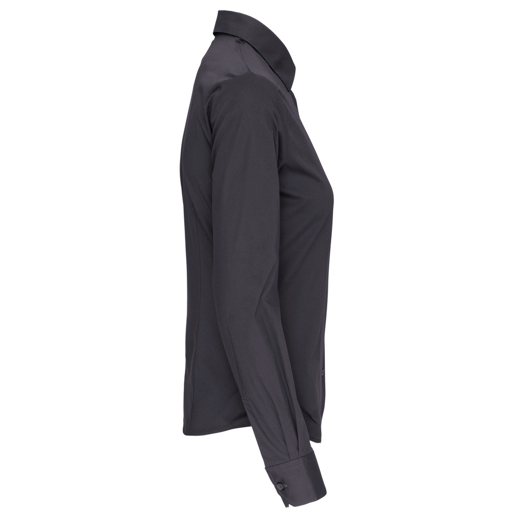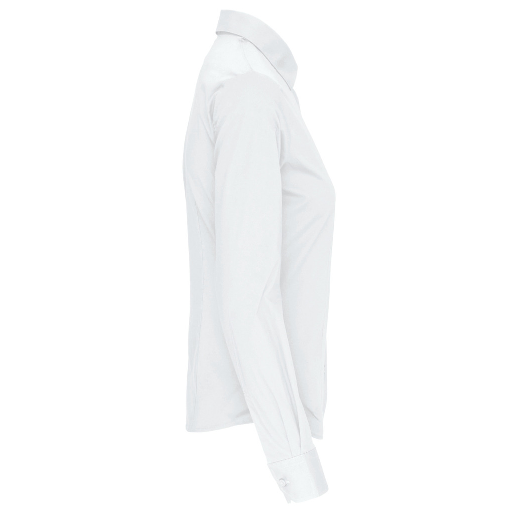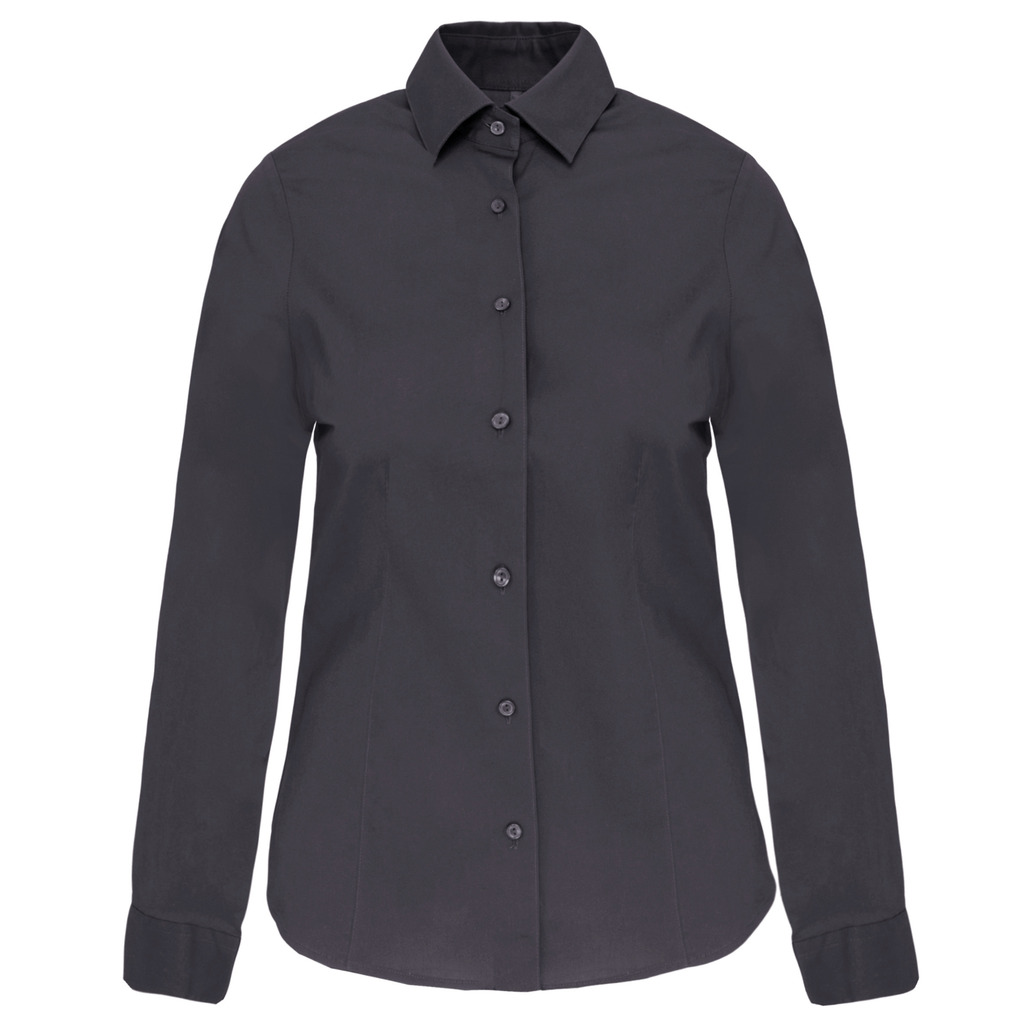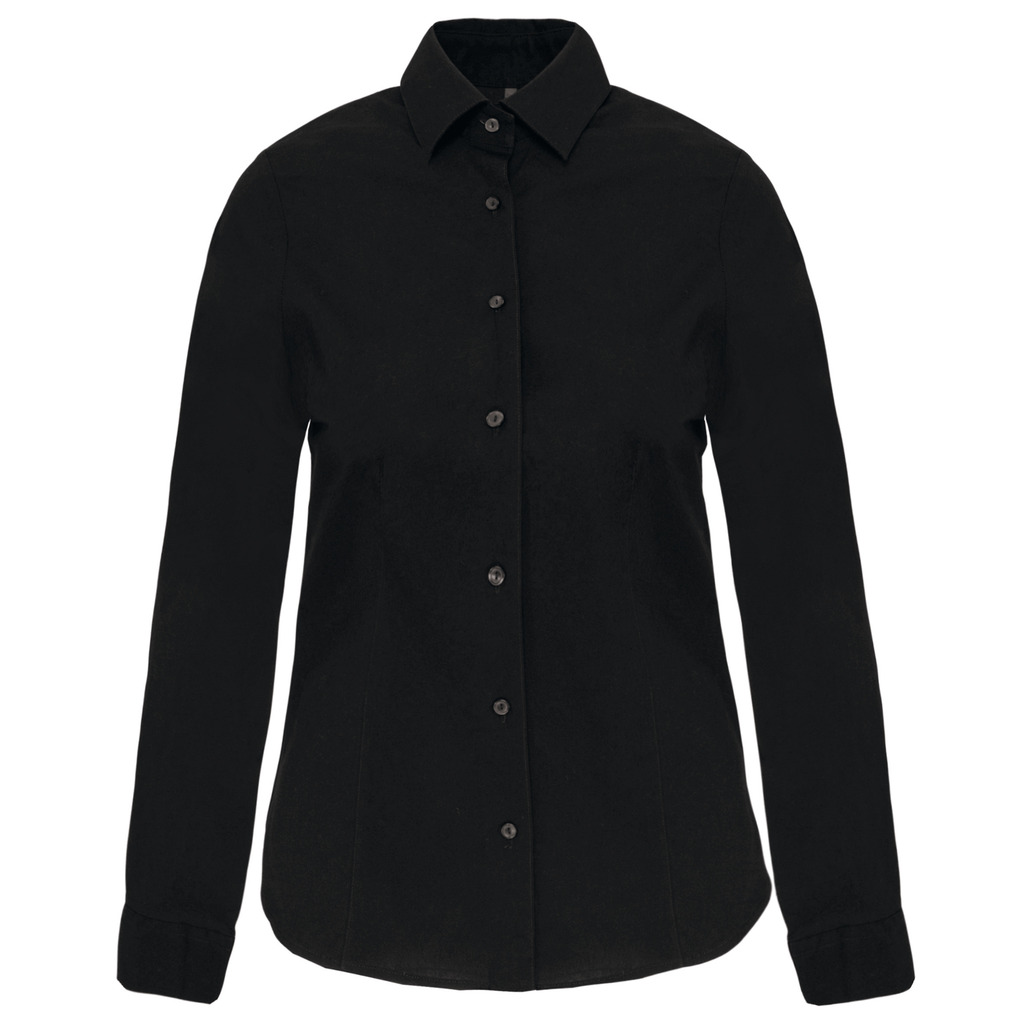 97% Algodão / 3% Elastano. Corte cintado. Colarinho pequeno. Botões à cor. Botão extra. Bainha arredondada.