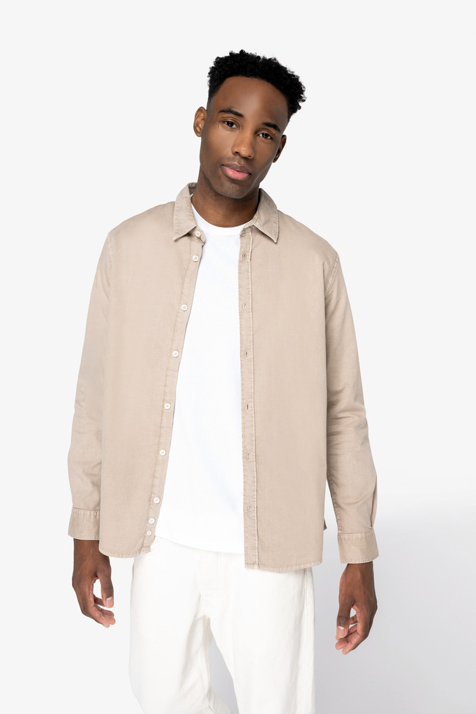 100% algodão biológico. Algodão penteado. Corte justo. Carcela clássica com botões com efeito nacarado. Pinça nas costas para look descontraÃdo. Carcela nos punhos com botão. Peça tingida após produção: as cores podem variar ligeiramente. Este produto é susceptÃvel de tingir em contacto com superfÃcies ou peças de roupa claras.